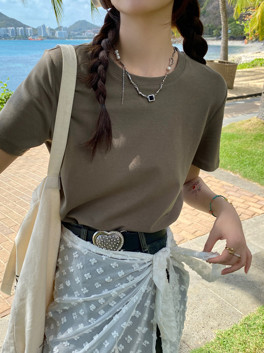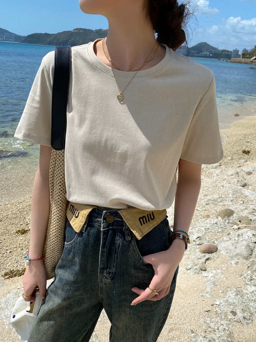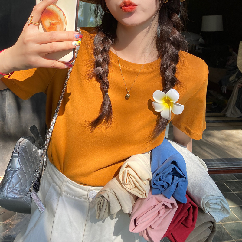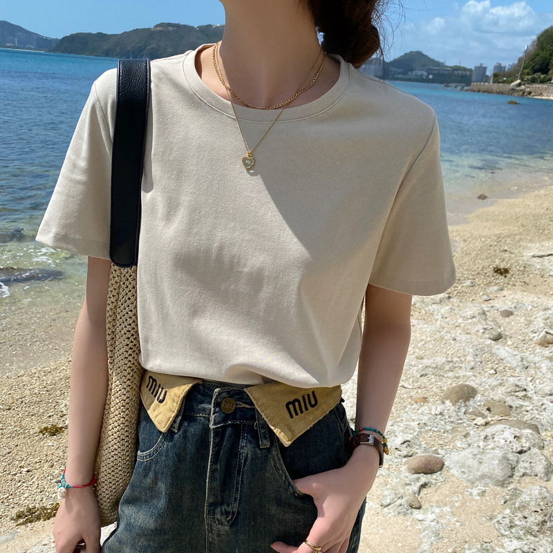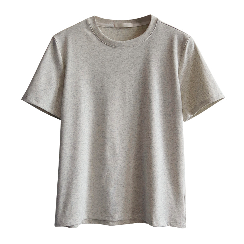 圆领短袖女t恤夏宽松新款灰色半袖体恤纯色纯棉正肩打底上衣