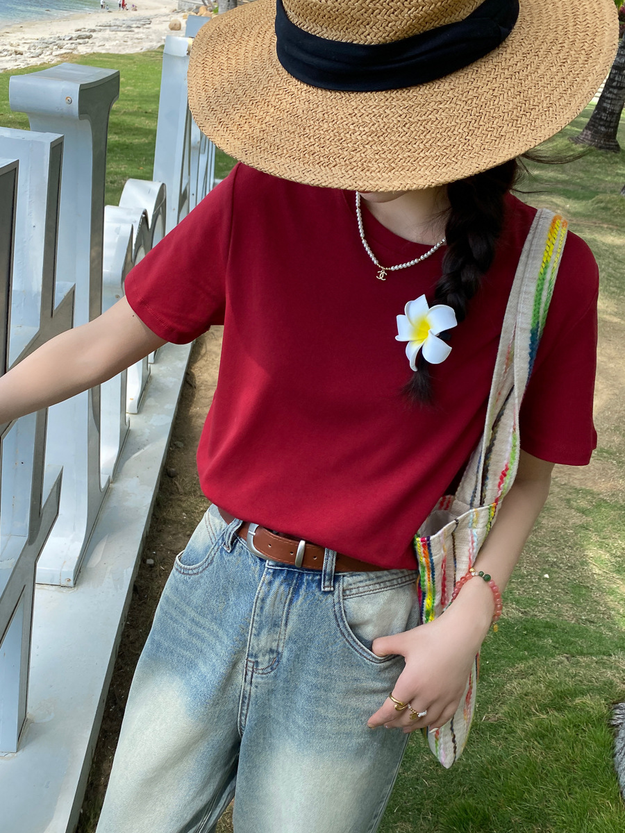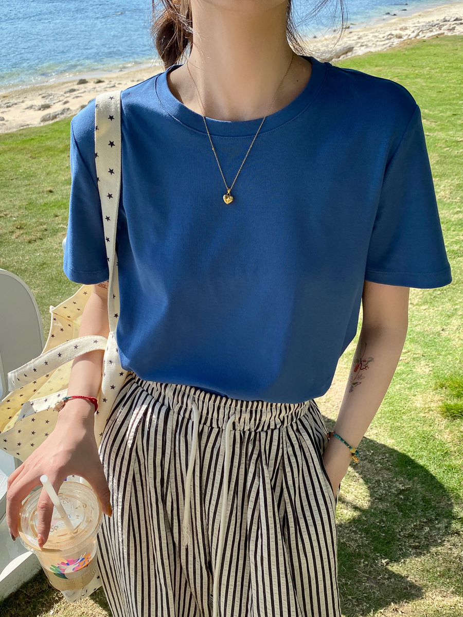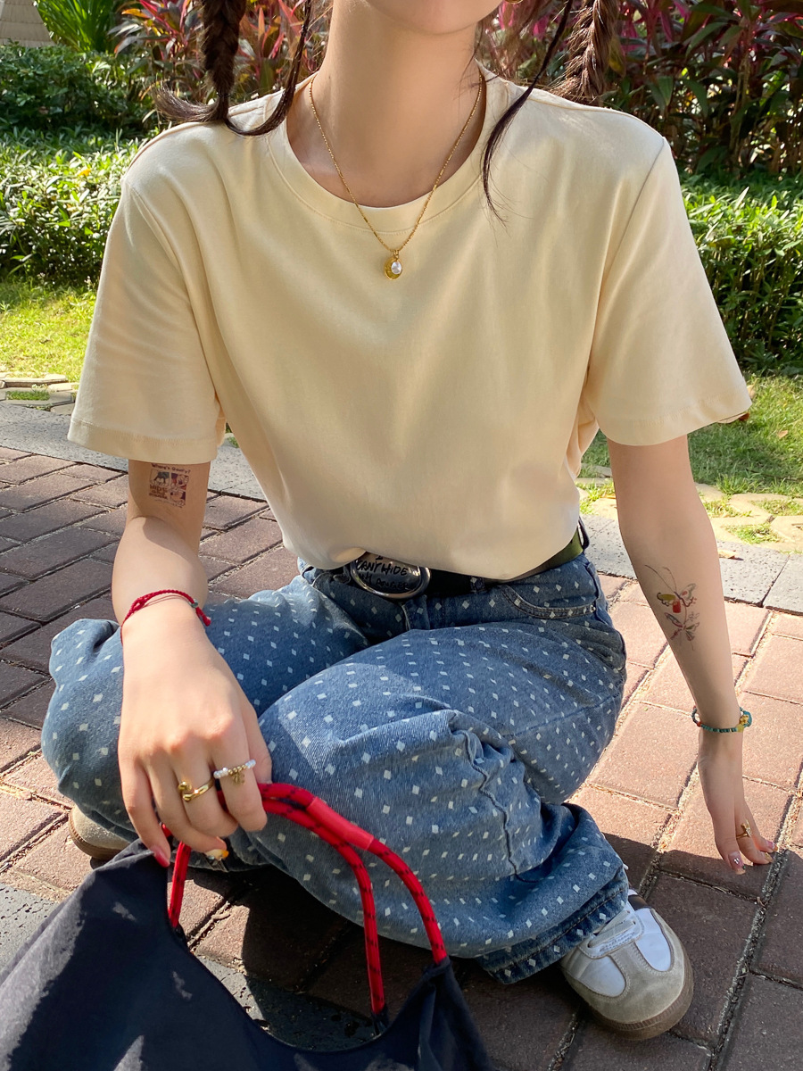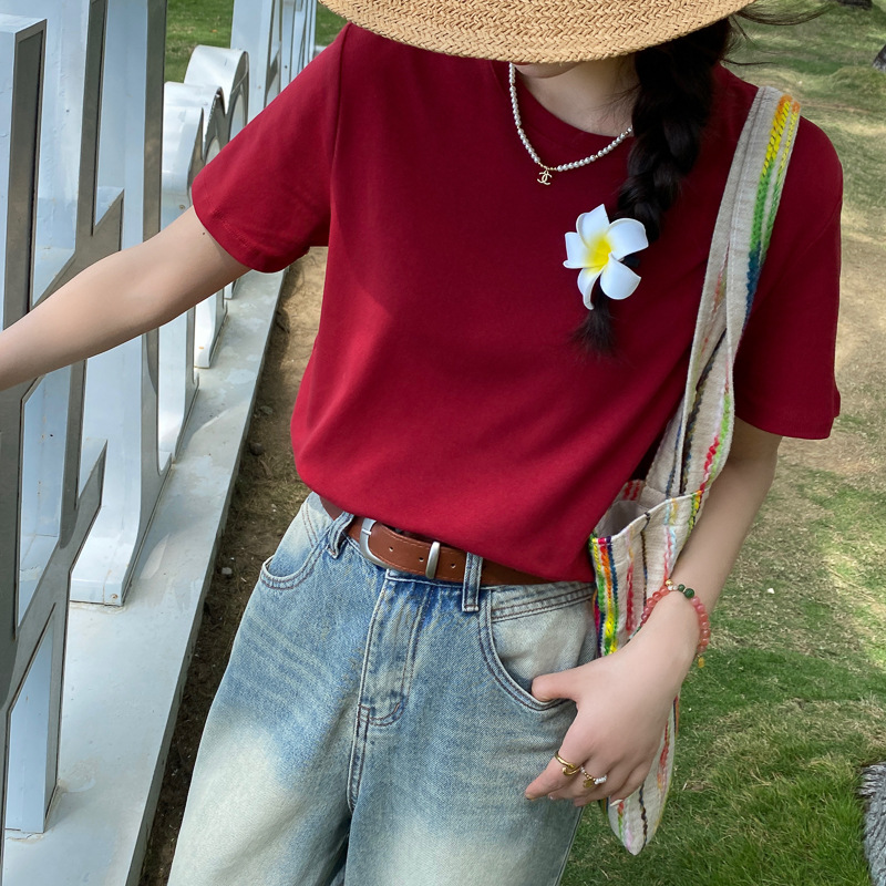 圆领短袖女t恤夏宽松新款灰色半袖体恤纯色纯棉正肩打底上衣