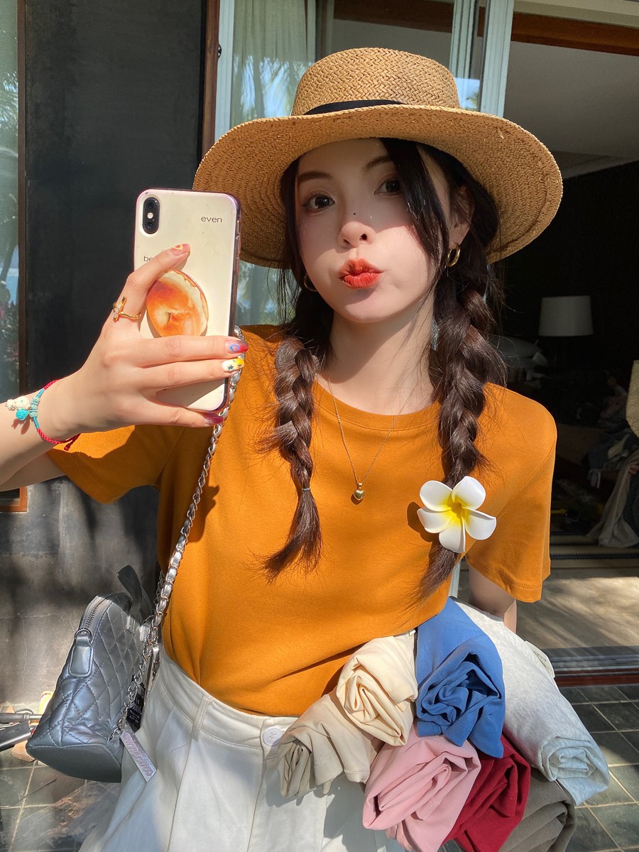 糖果彩色t恤夏季纯棉短袖小众设计感闺蜜装体恤大码宽松半袖上衣