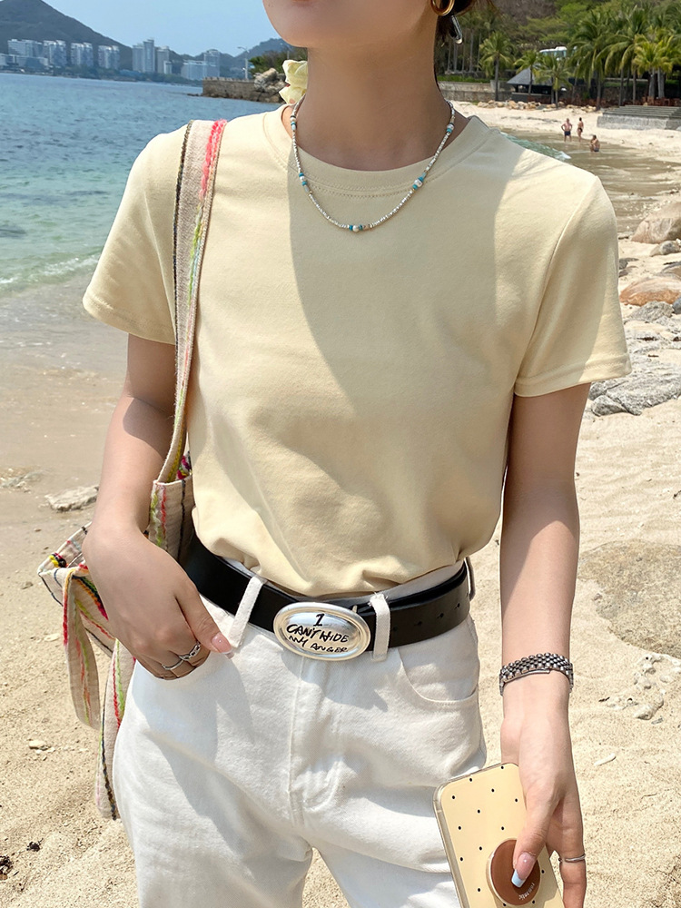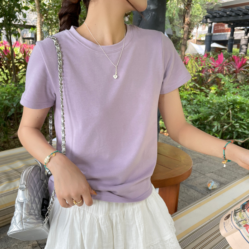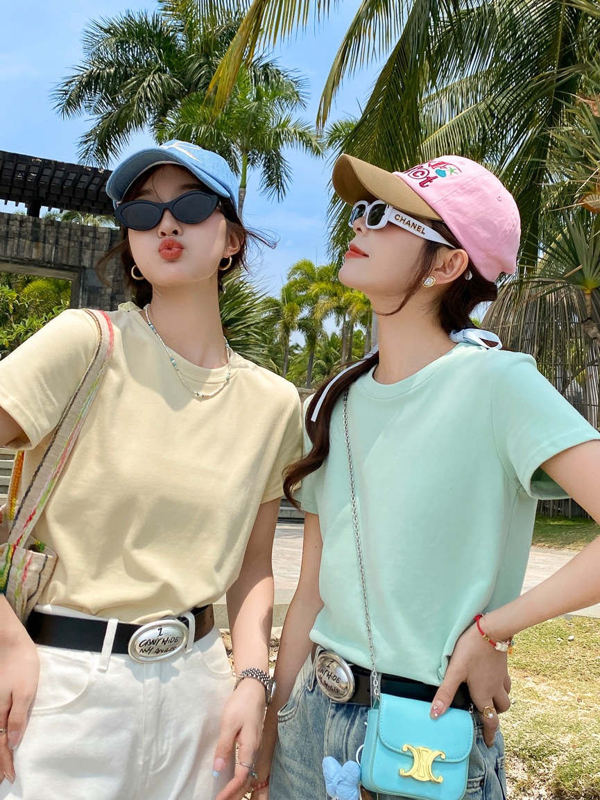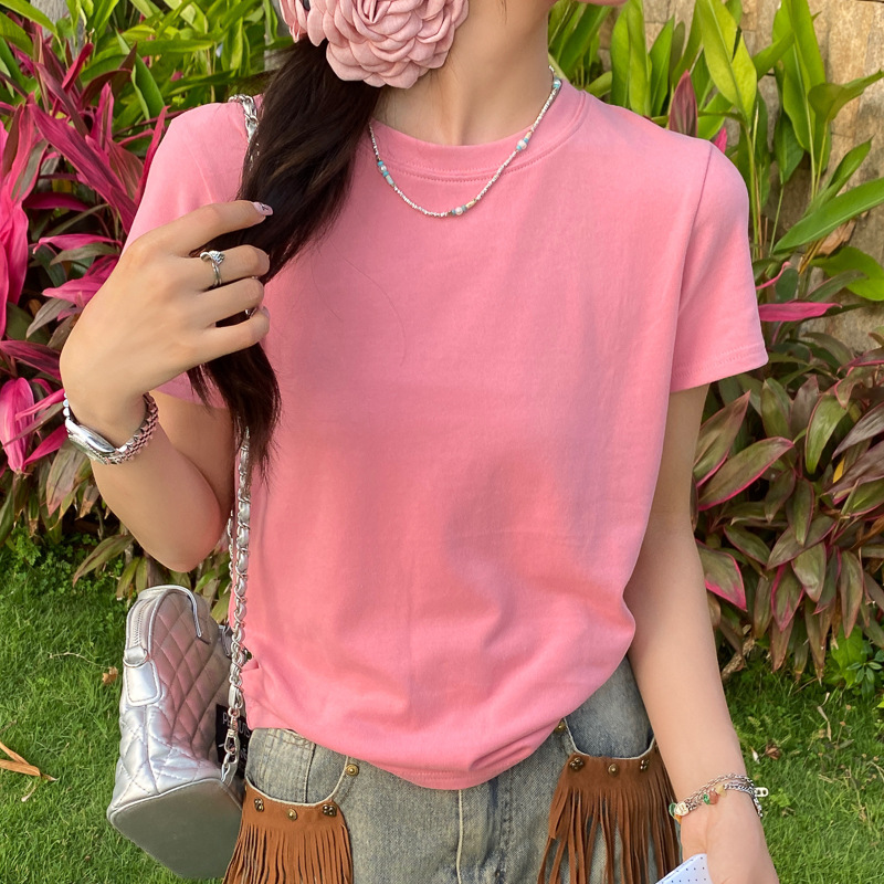 圆领短袖t恤女韩系宽松夏季新款纯色打底衫内搭体恤正肩上衣