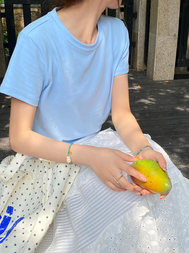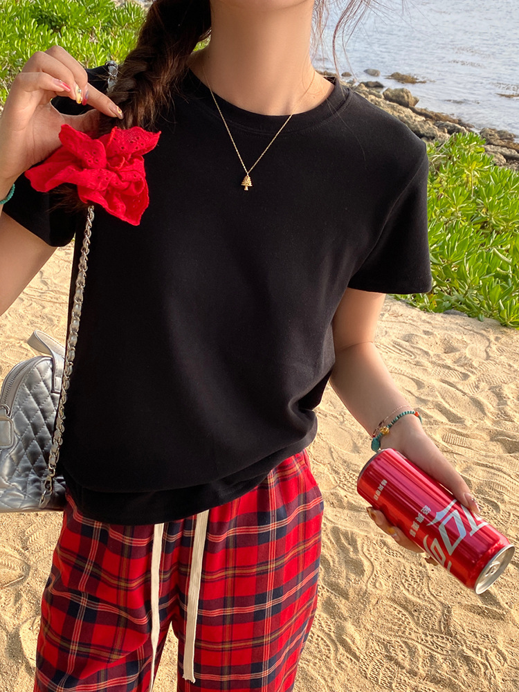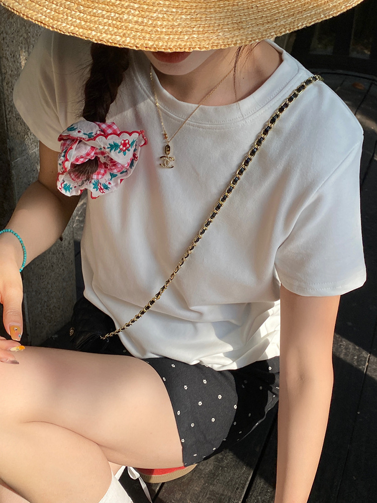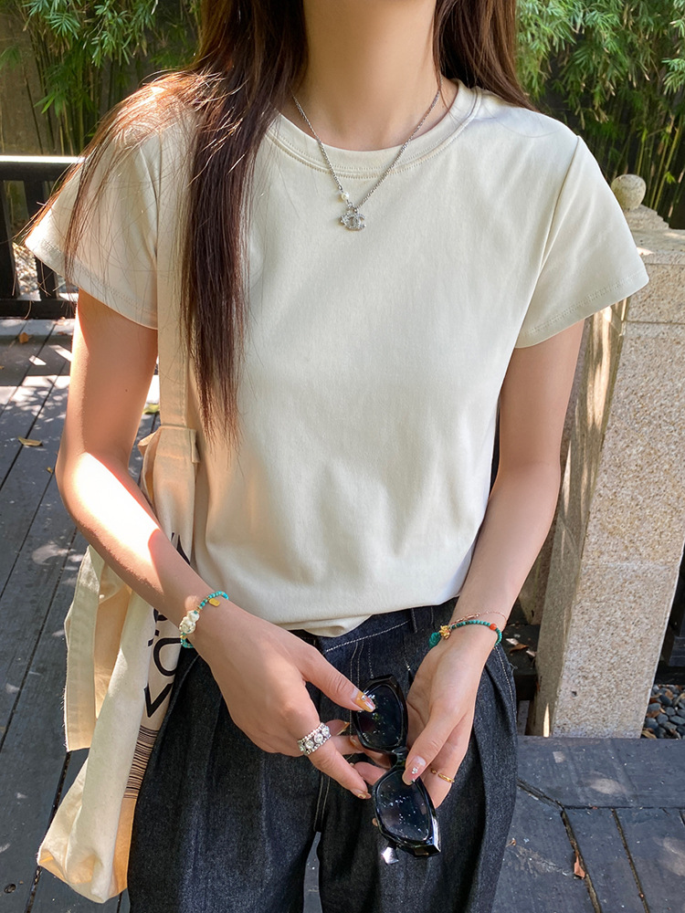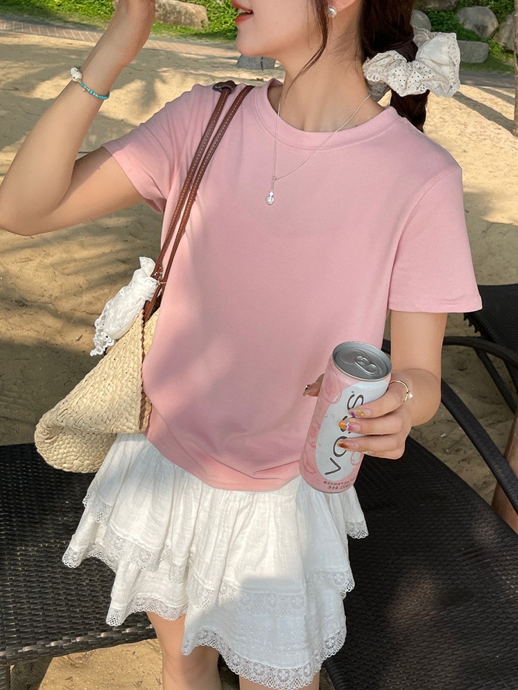 圆领短袖t恤女韩系宽松夏季新款纯色打底衫内搭体恤正肩上衣