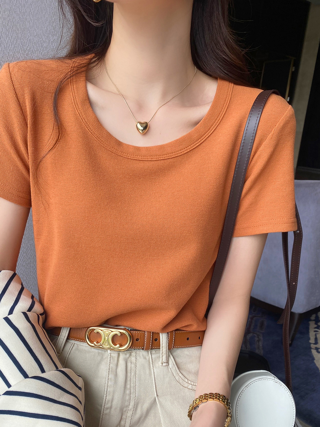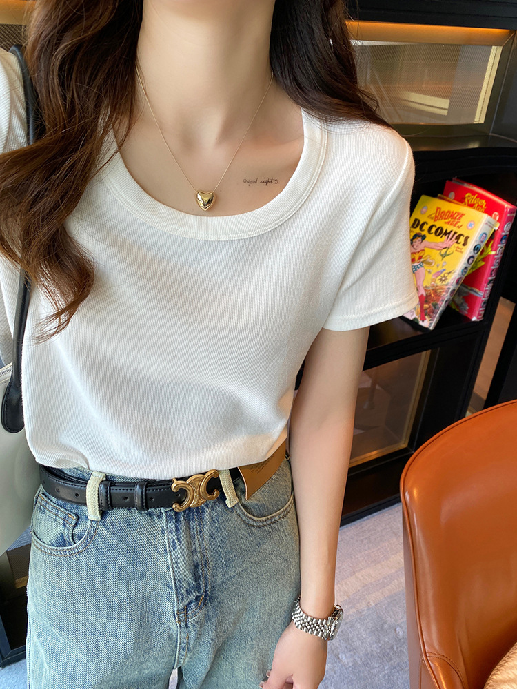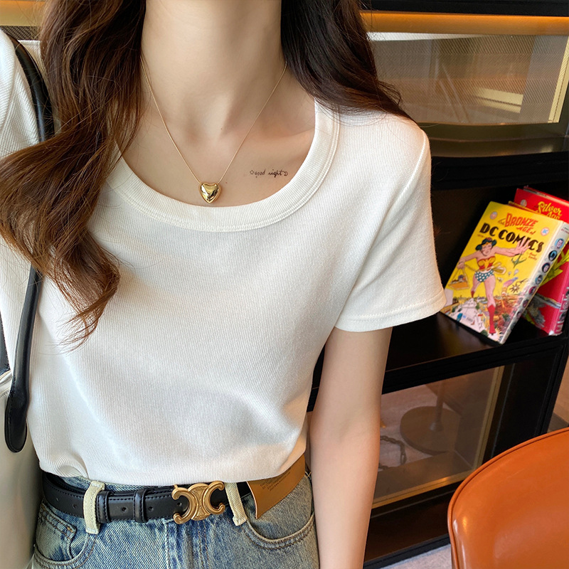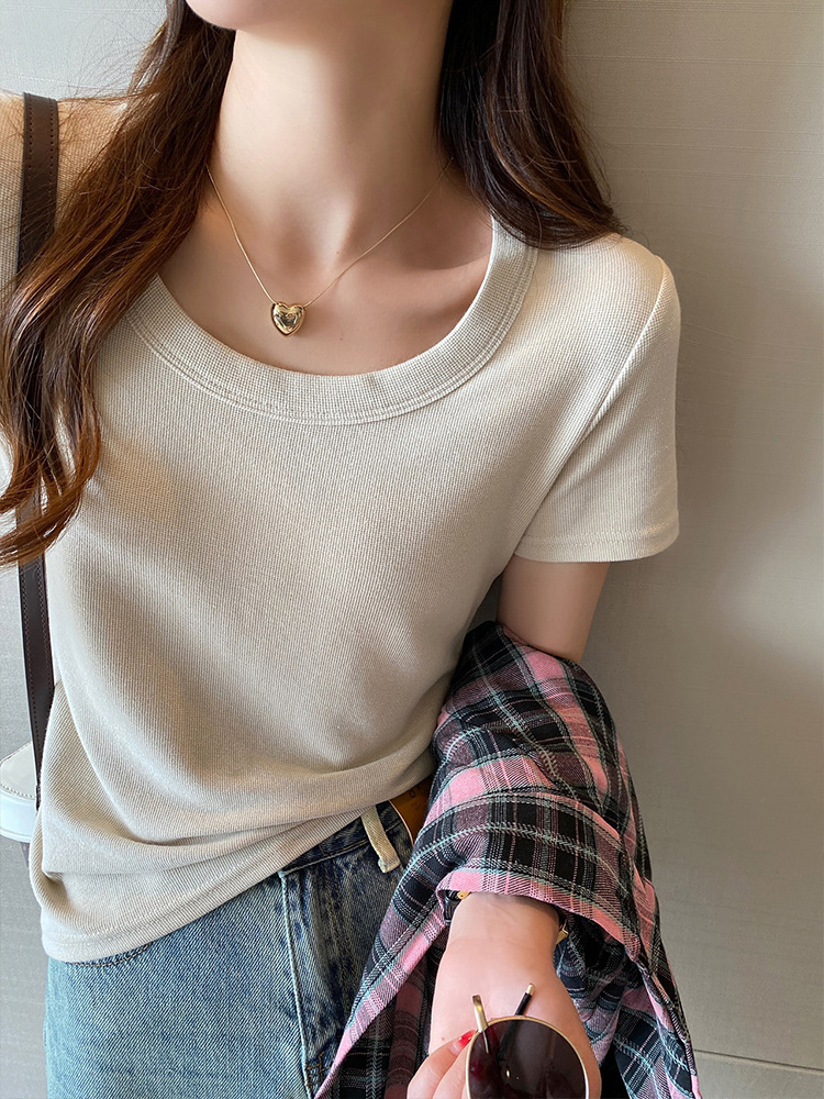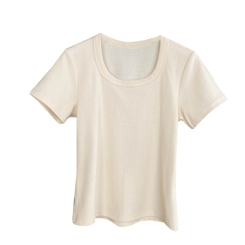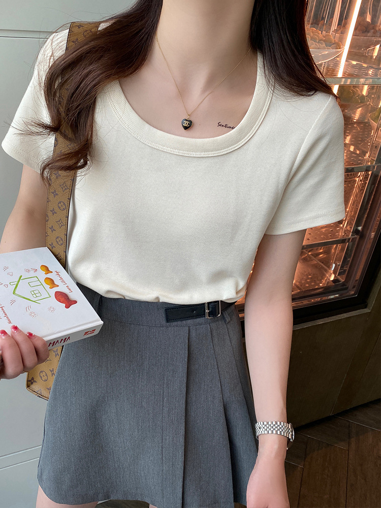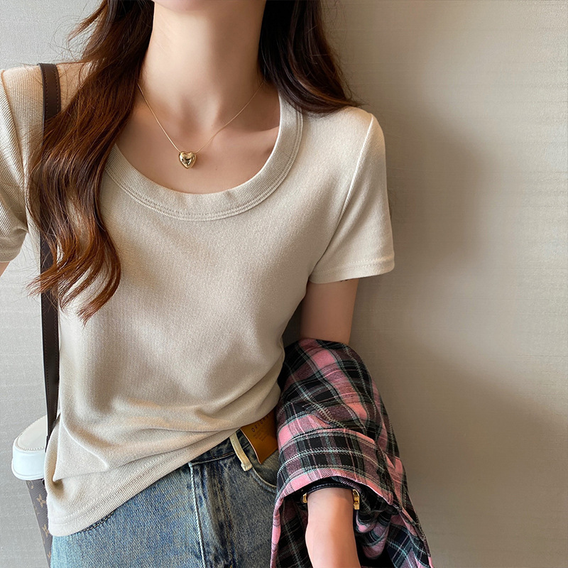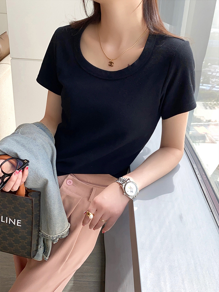 短袖t恤女夏季年新款u领正肩纯色设计感小众修身辣妹短款上衣