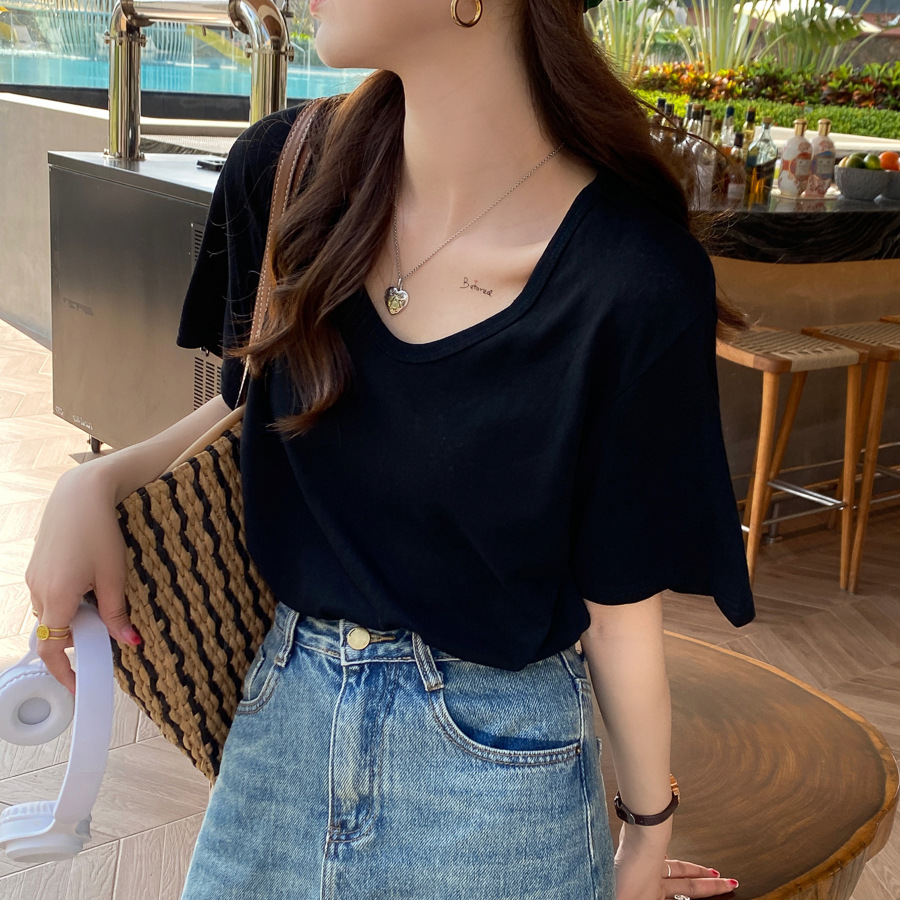 夏季新款露脐短袖t恤女高腰紧身性感百搭纯色显瘦短款上衣潮