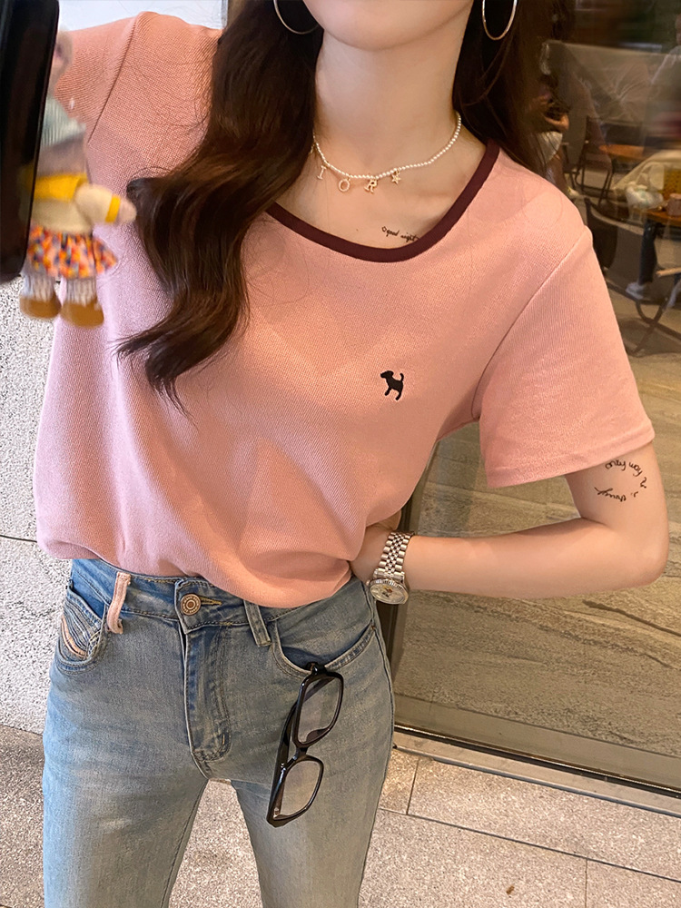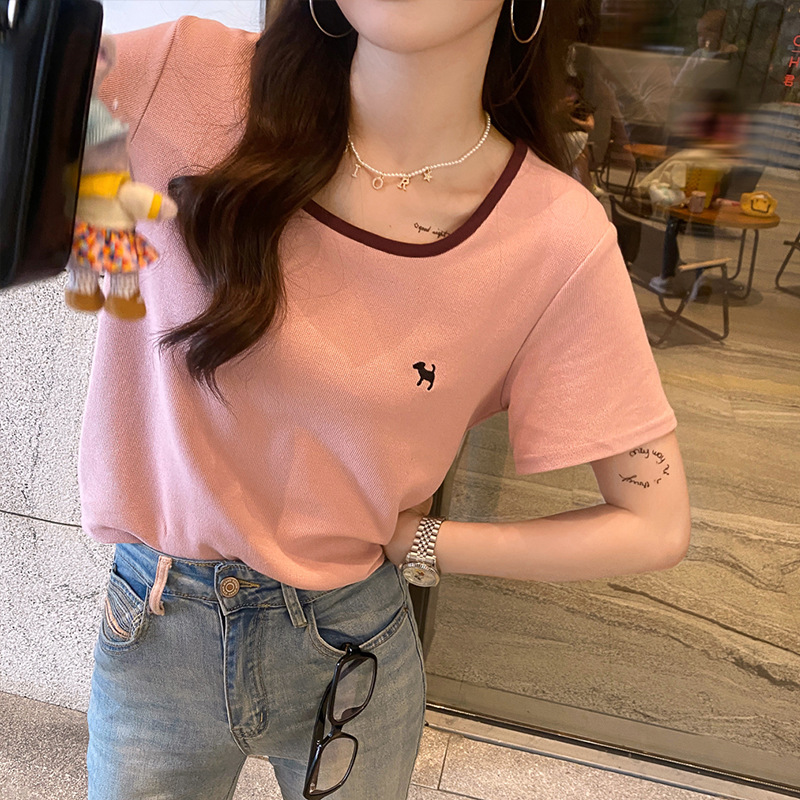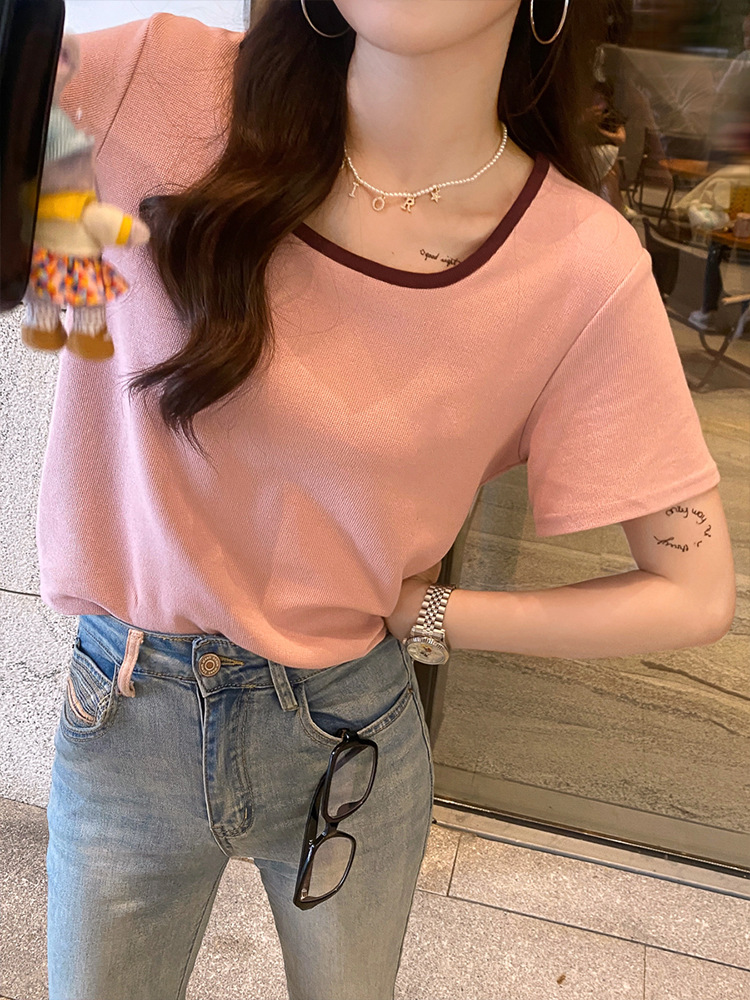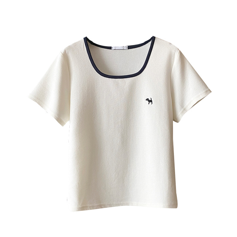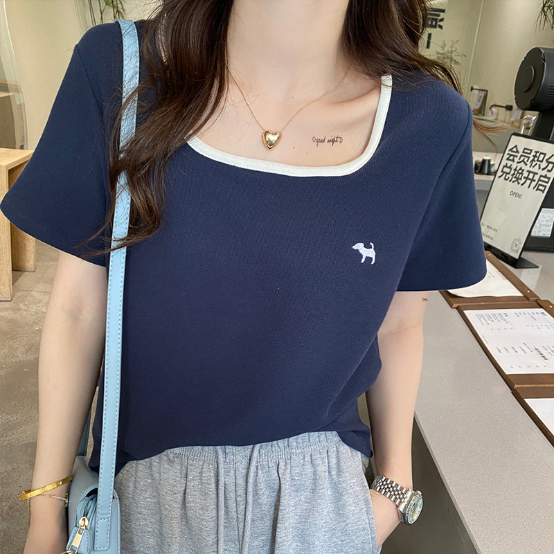 方领正肩短袖T恤女夏季打底衫纯色短款半袖显瘦纯棉上衣新款