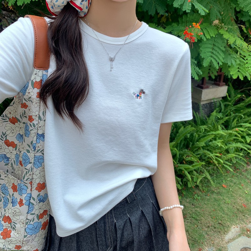 字母印花纯棉短袖T恤女ins潮夏季小众百搭宽松显瘦体恤上衣