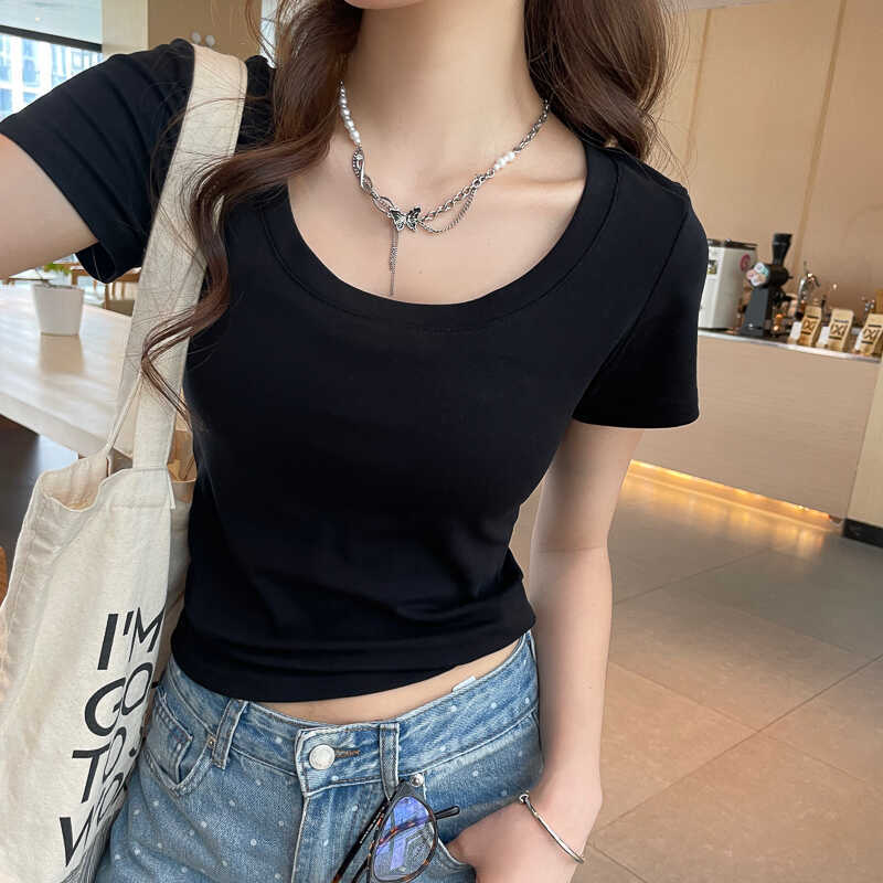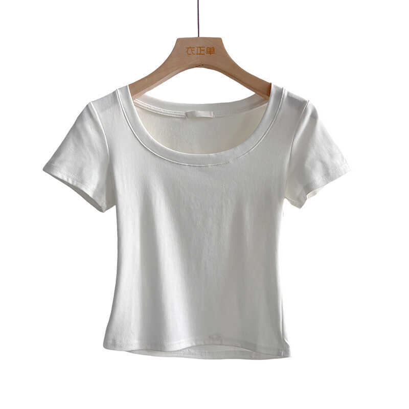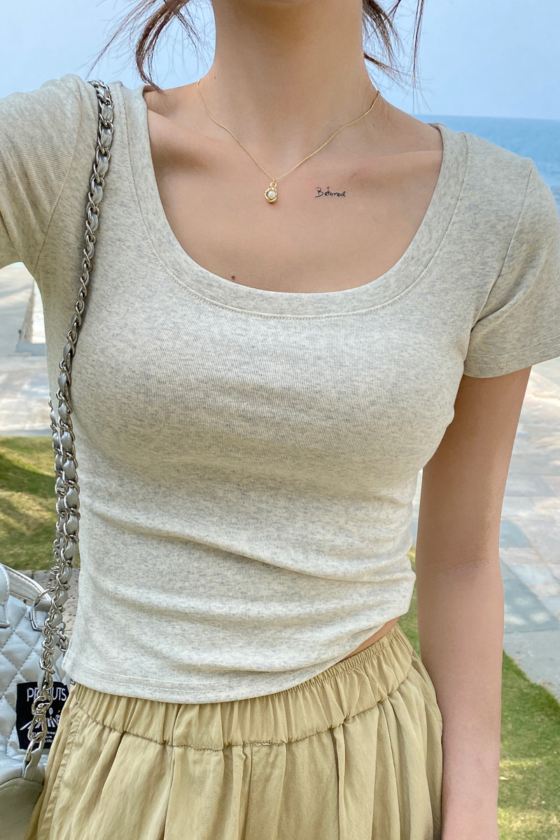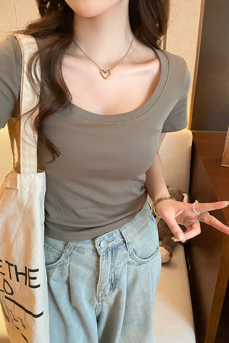 纯棉百搭修身短袖T恤女夏季短款纯色新款圆领修身灰色小上衣