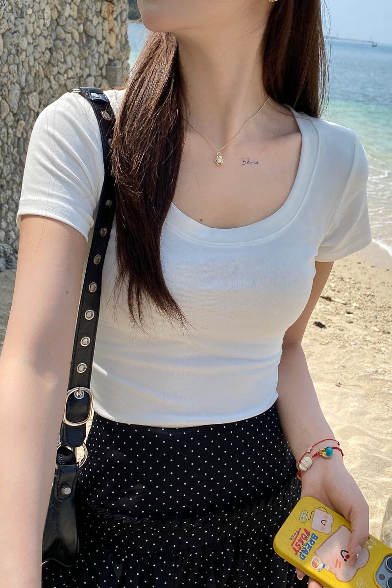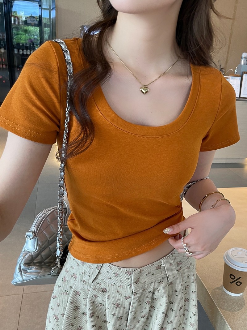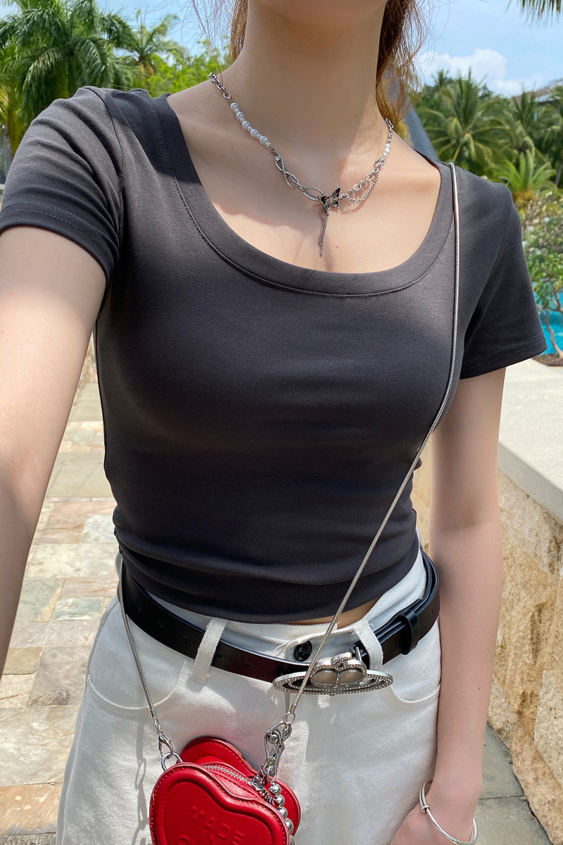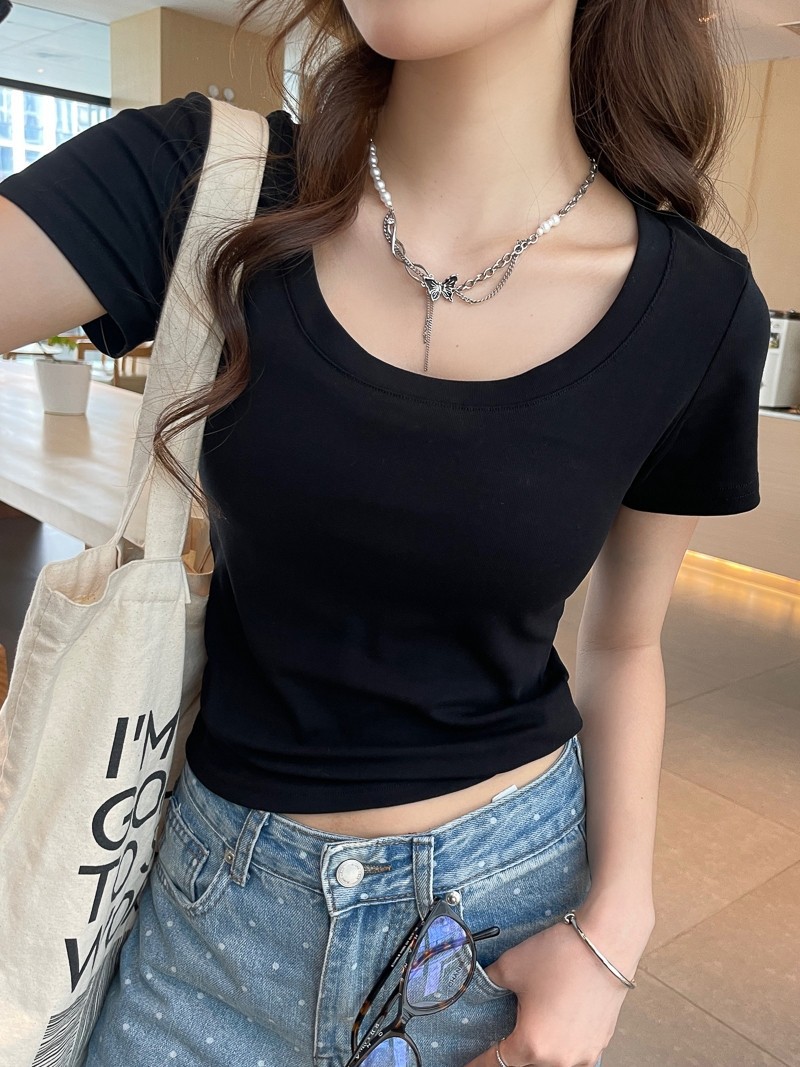 纯棉百搭修身短袖T恤女夏季短款纯色新款圆领修身灰色小上衣