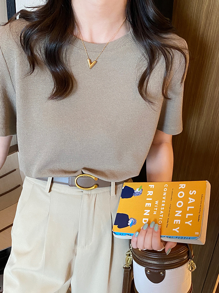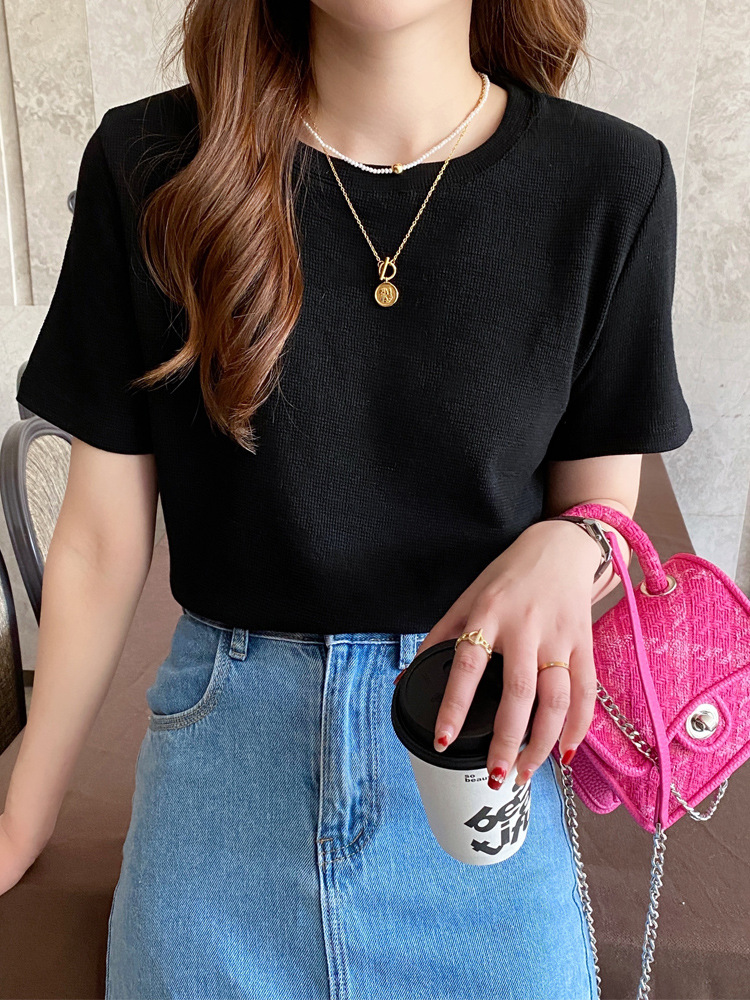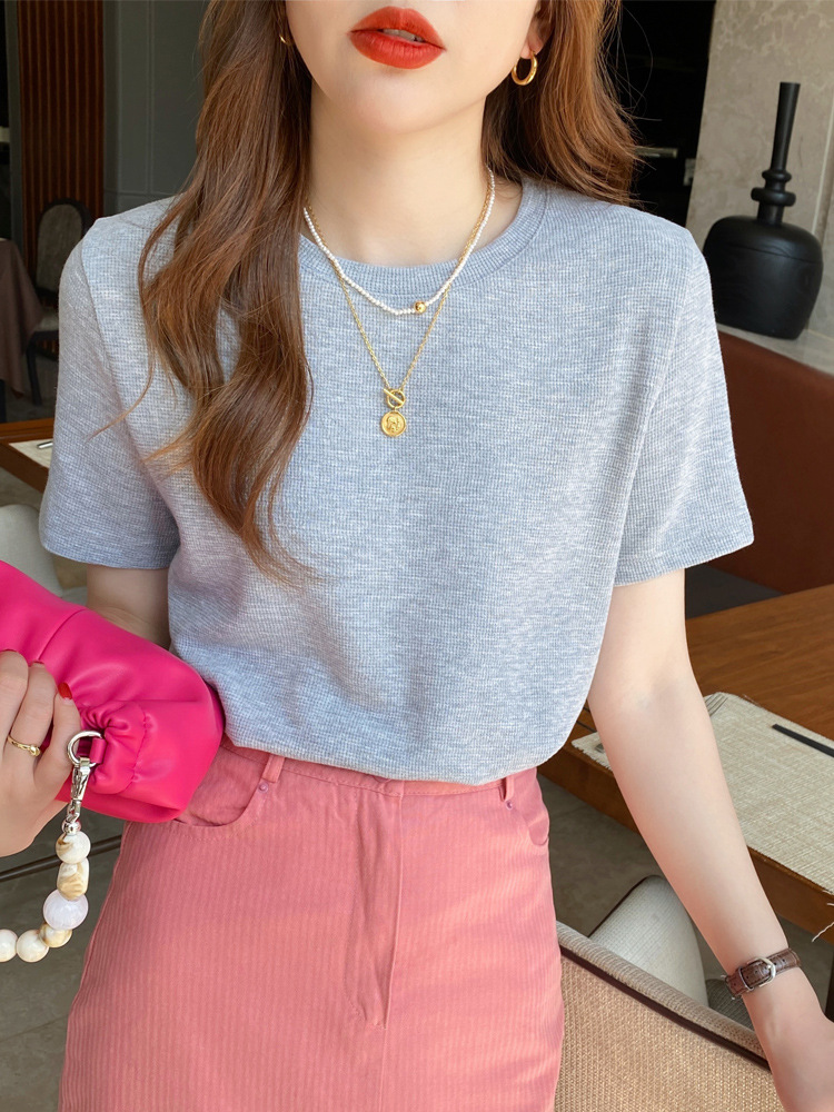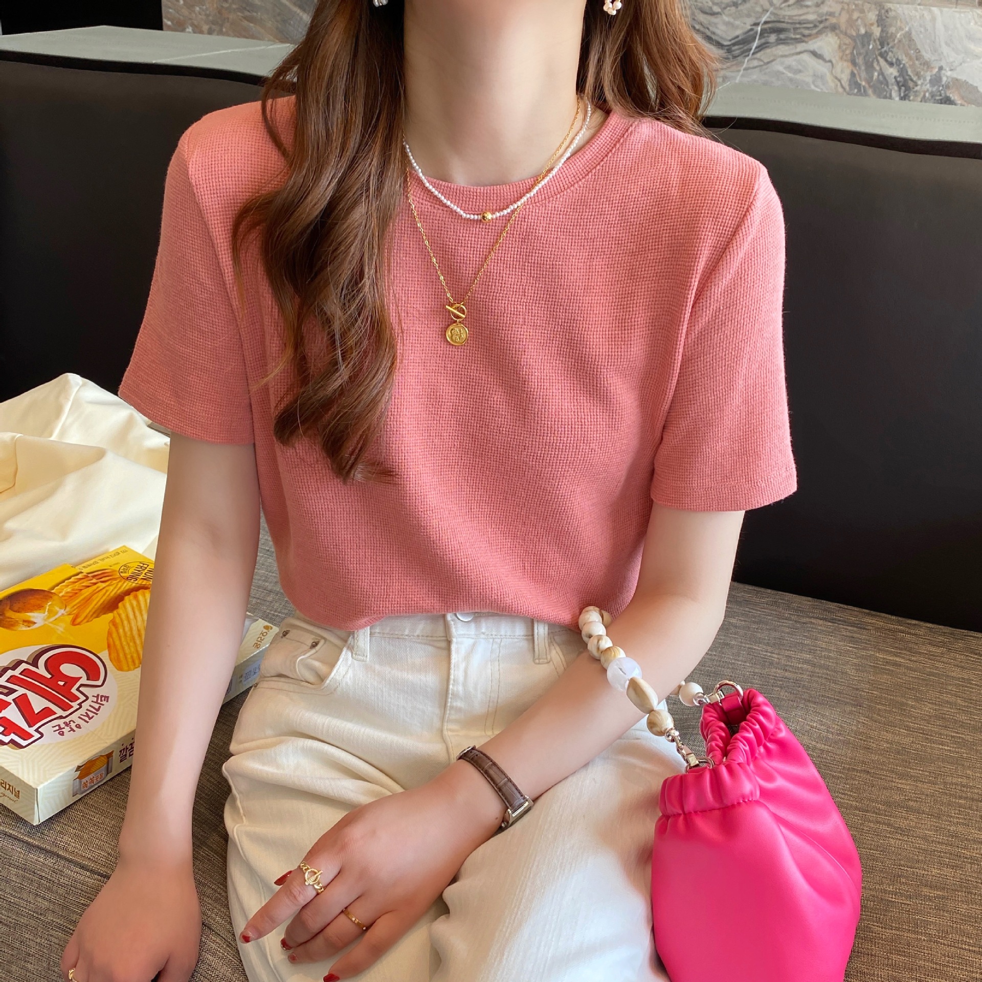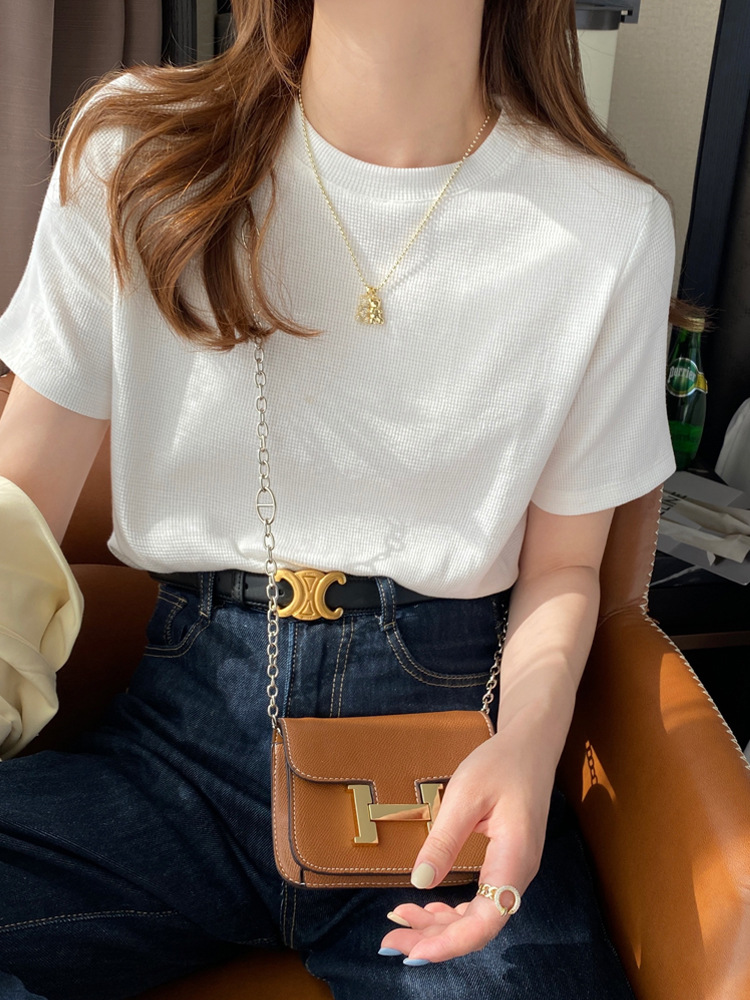 短袖女夏季年新款圆领华夫格纯色t恤ins宽松半袖上衣白色体恤