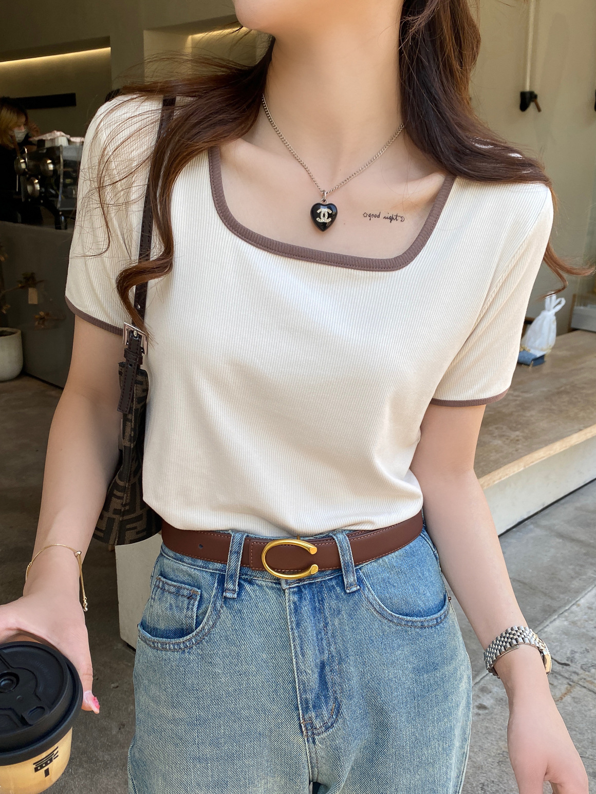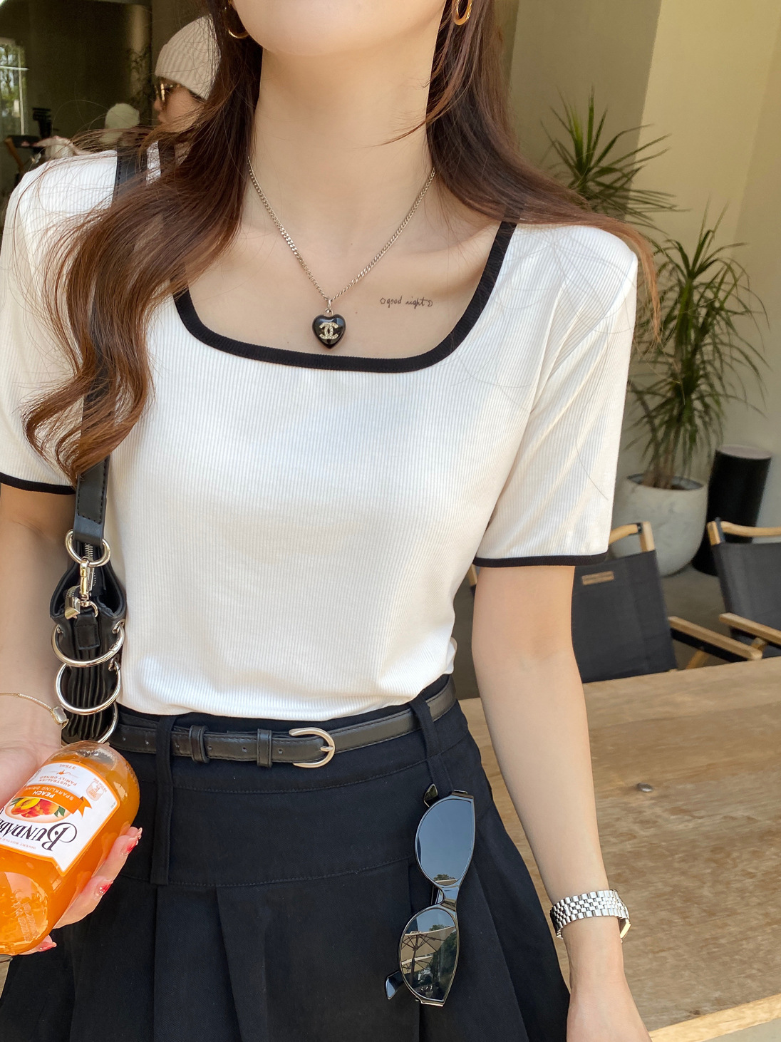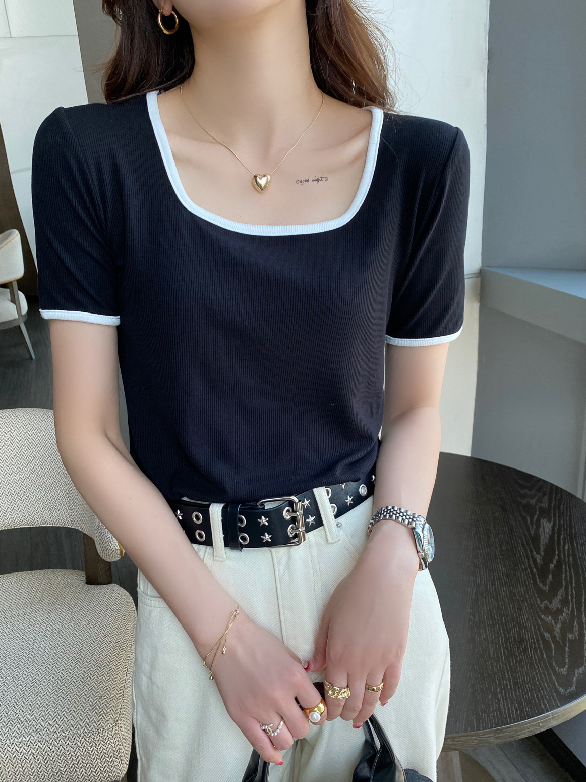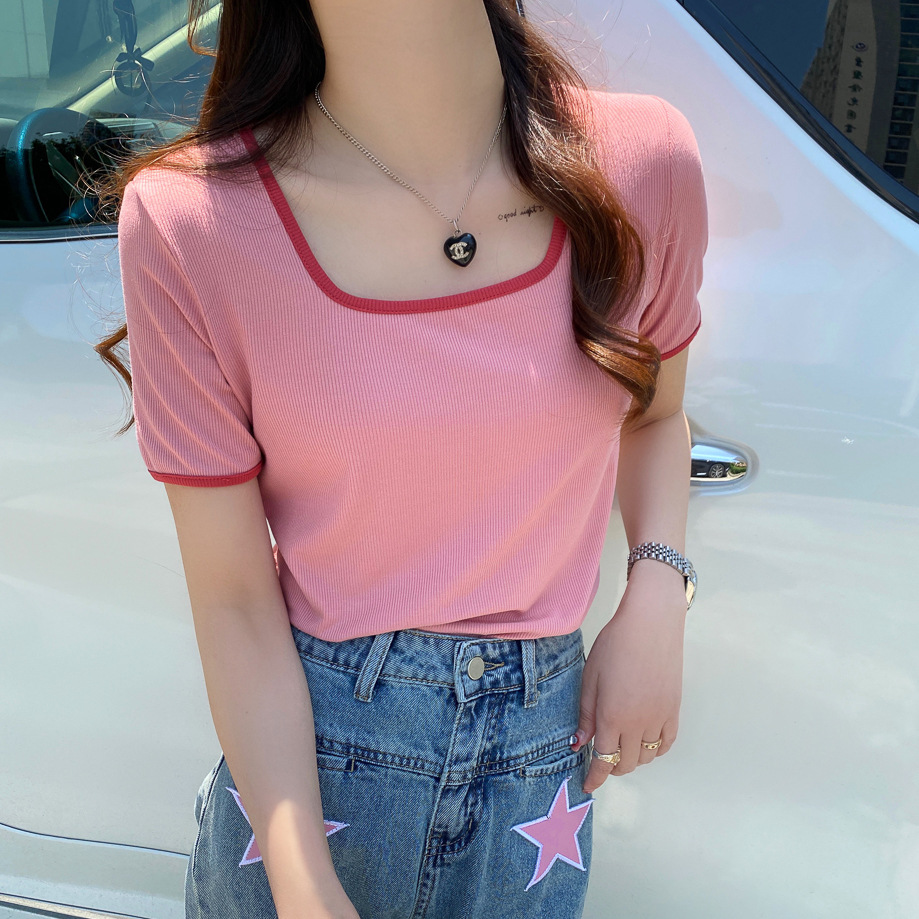 法式方领上衣夏季新款独特别致设计感小众宽松短袖正肩t恤女