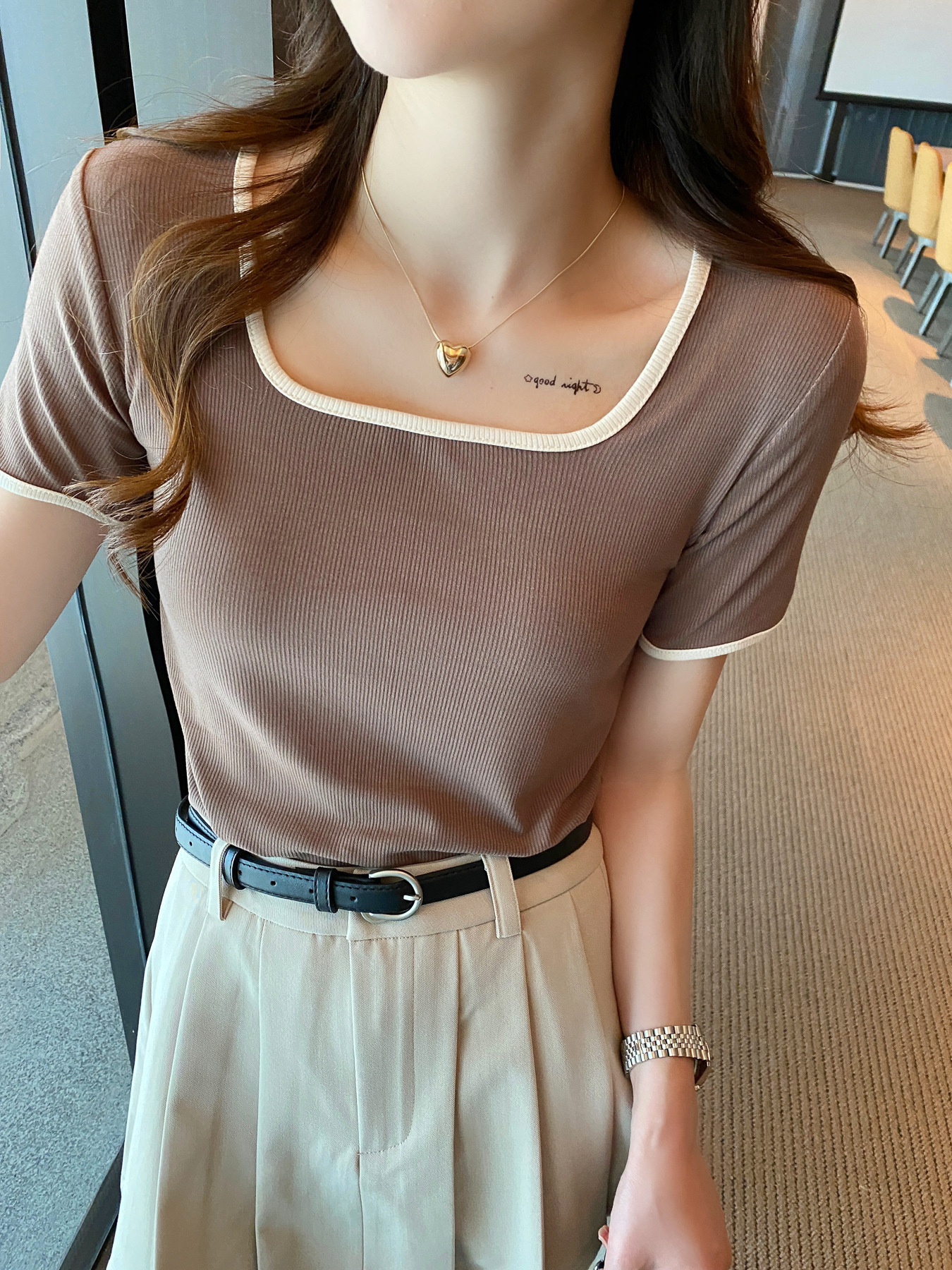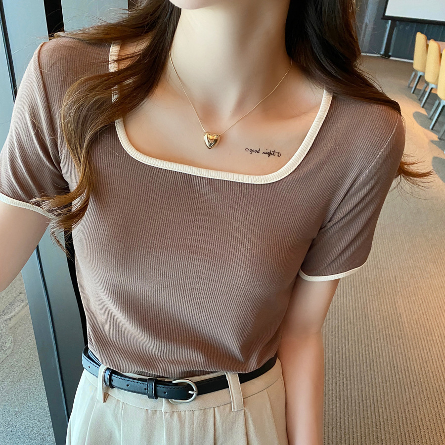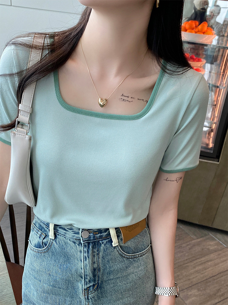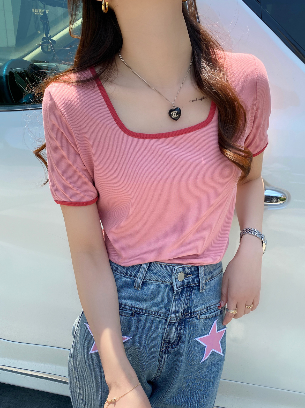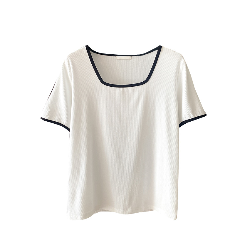 法式方领上衣夏季新款独特别致设计感小众宽松短袖正肩t恤女