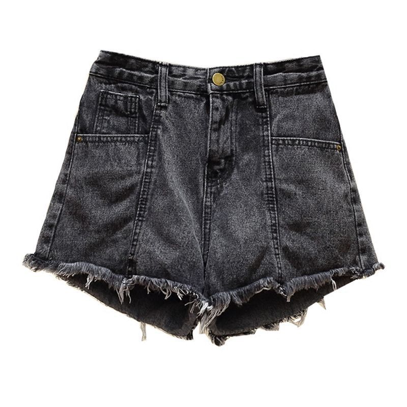 牛仔短裤女潮春夏新款韩版宽松显瘦高腰a字百搭毛边阔腿热裤