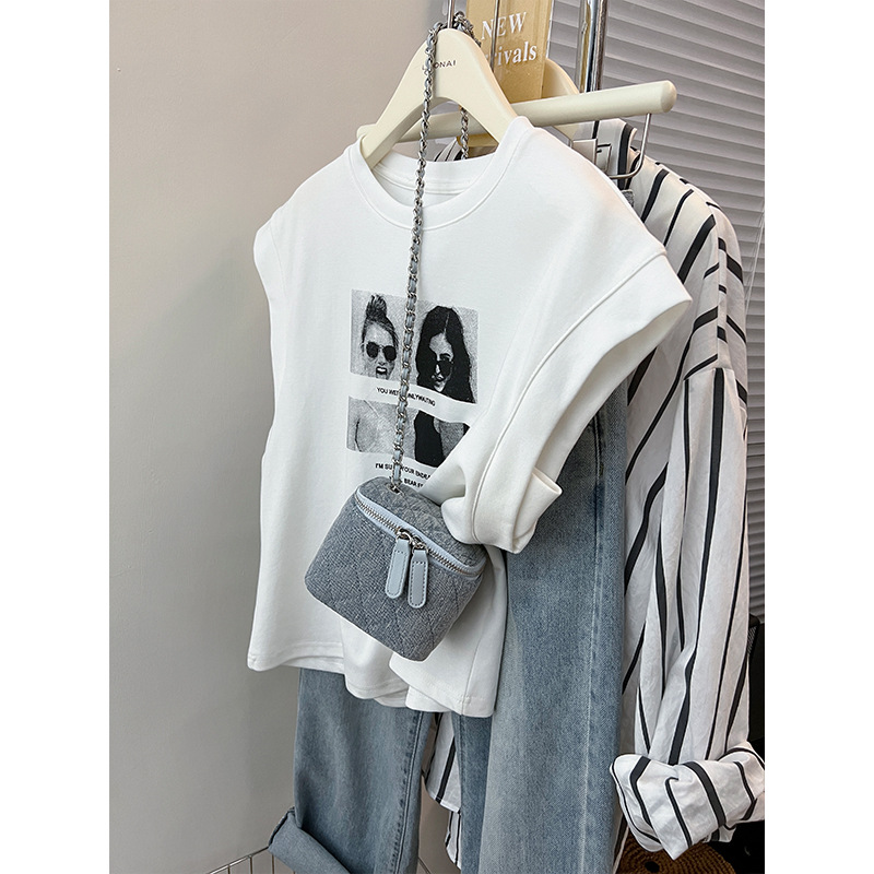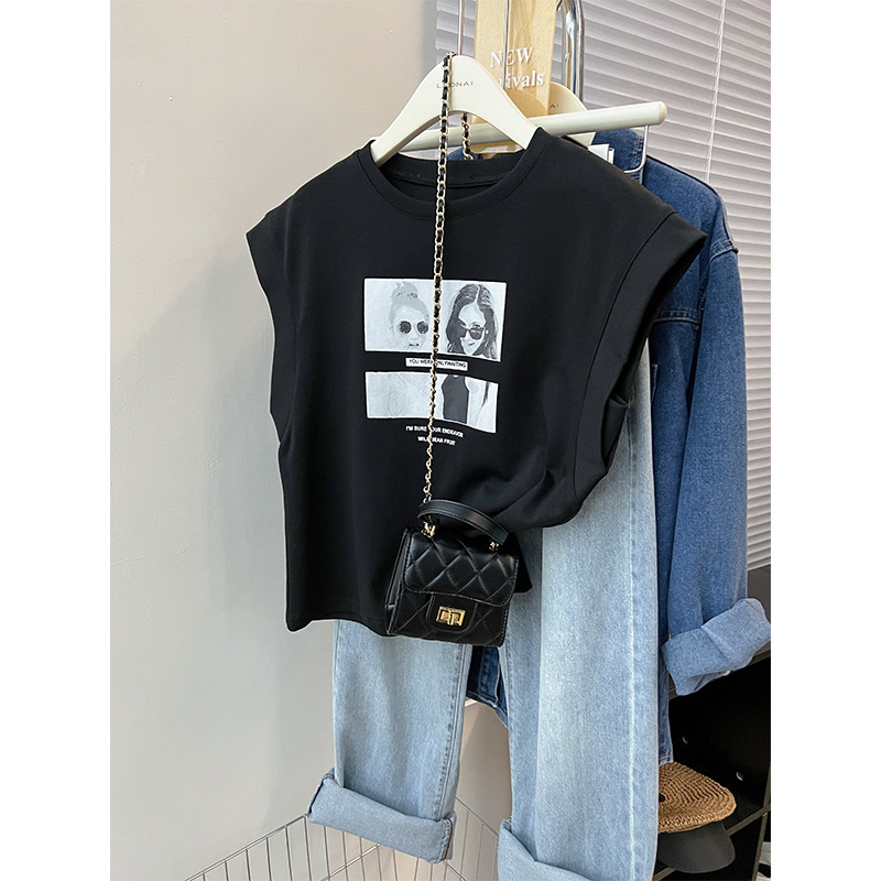 新款t恤女夏印花宽松独特别致飞飞袖上衣女外穿