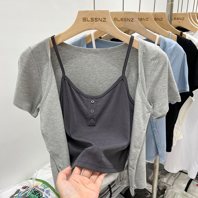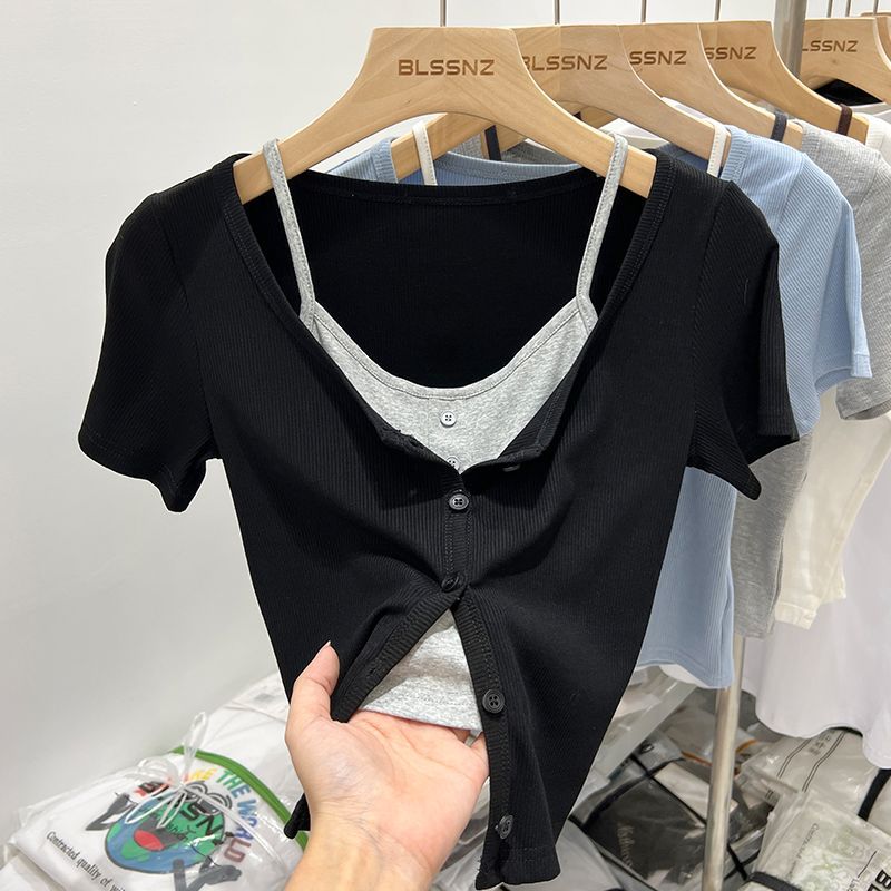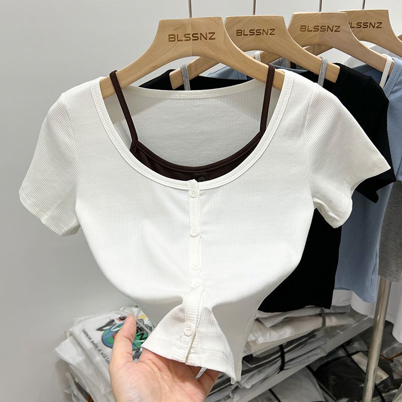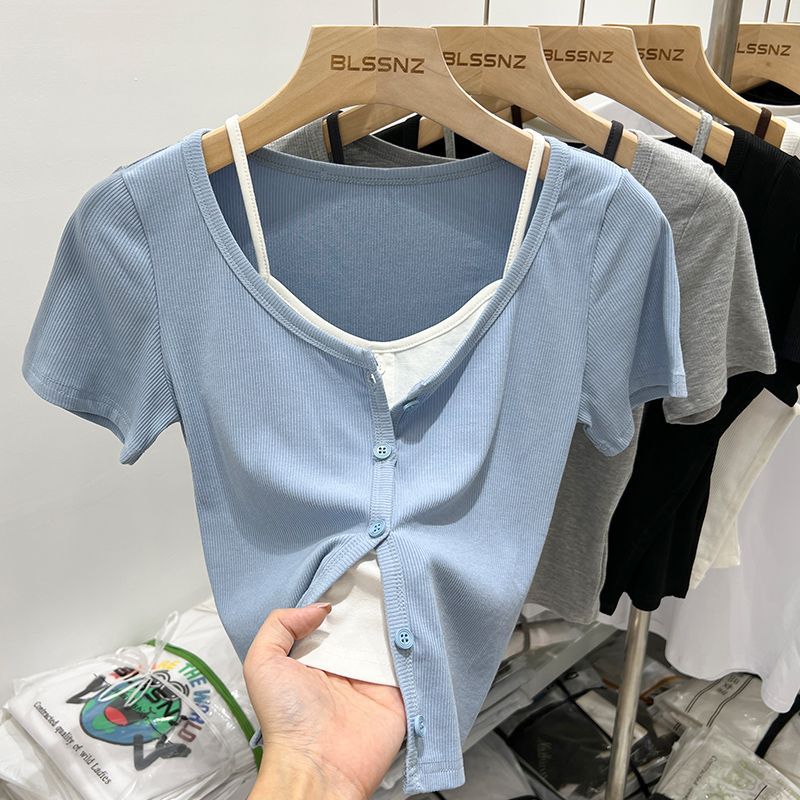 网红假两件t恤女短袖夏季新款紧身短款上衣
