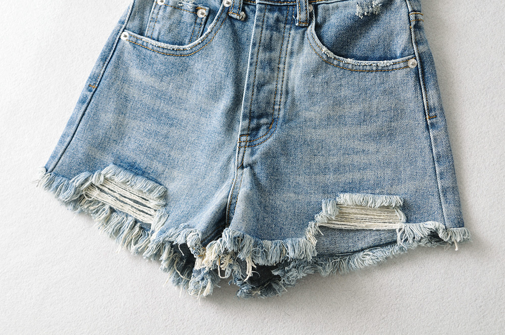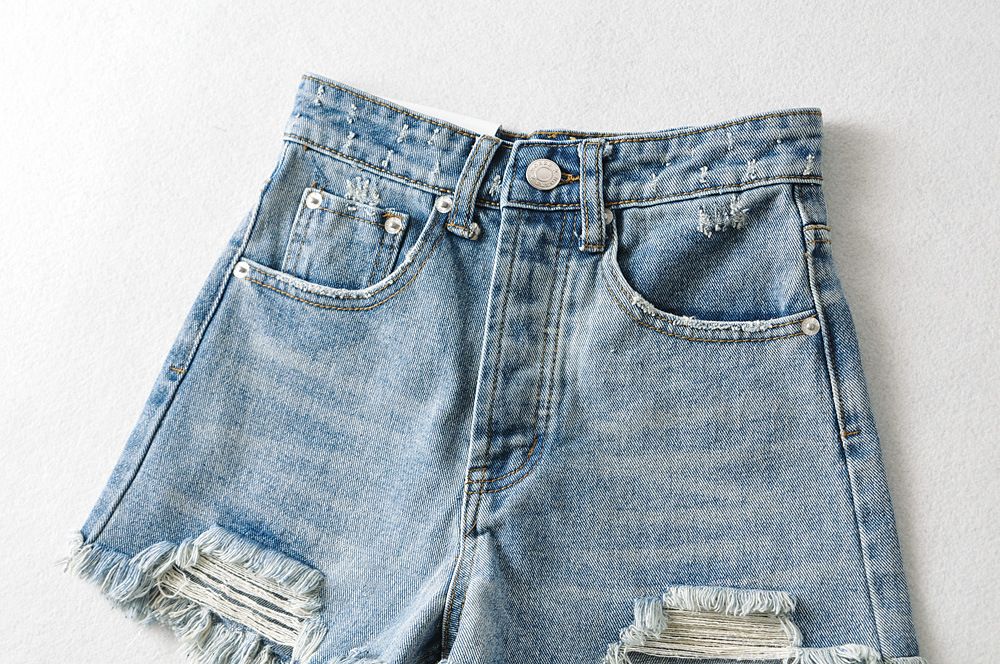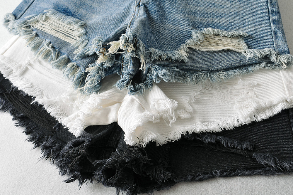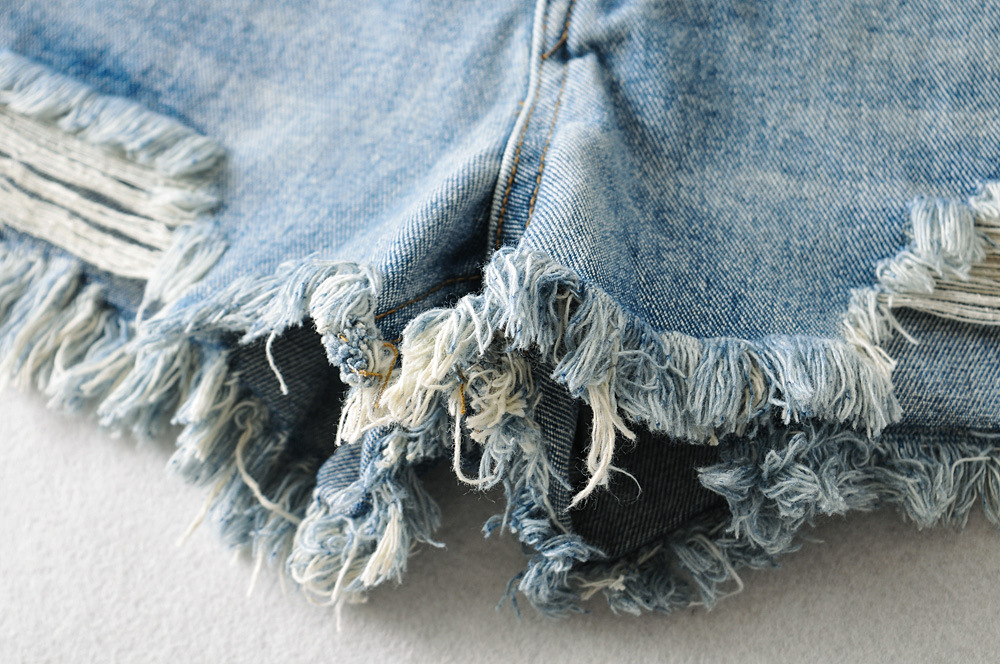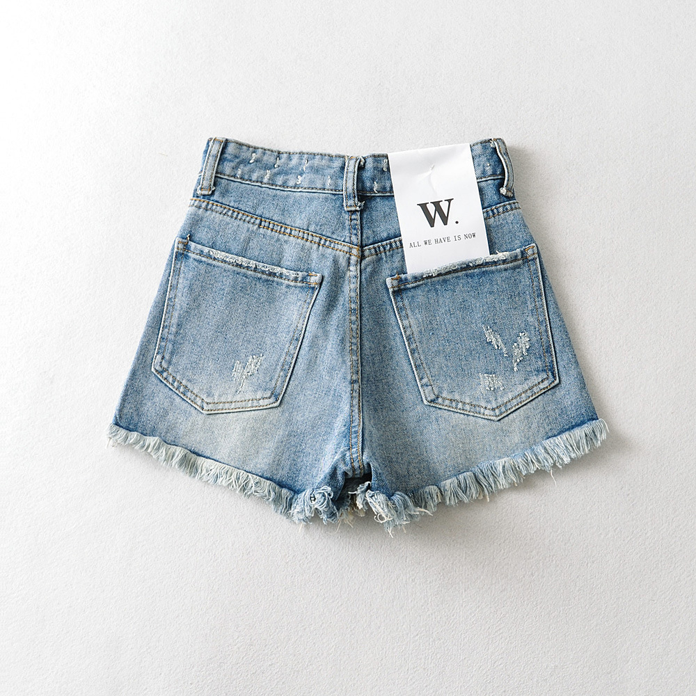 夏季新款INS欧美街头风流苏毛边做旧高腰牛仔短裤女潮亚马逊