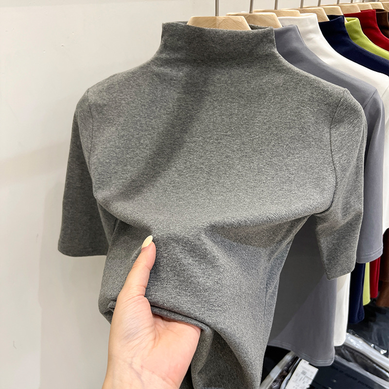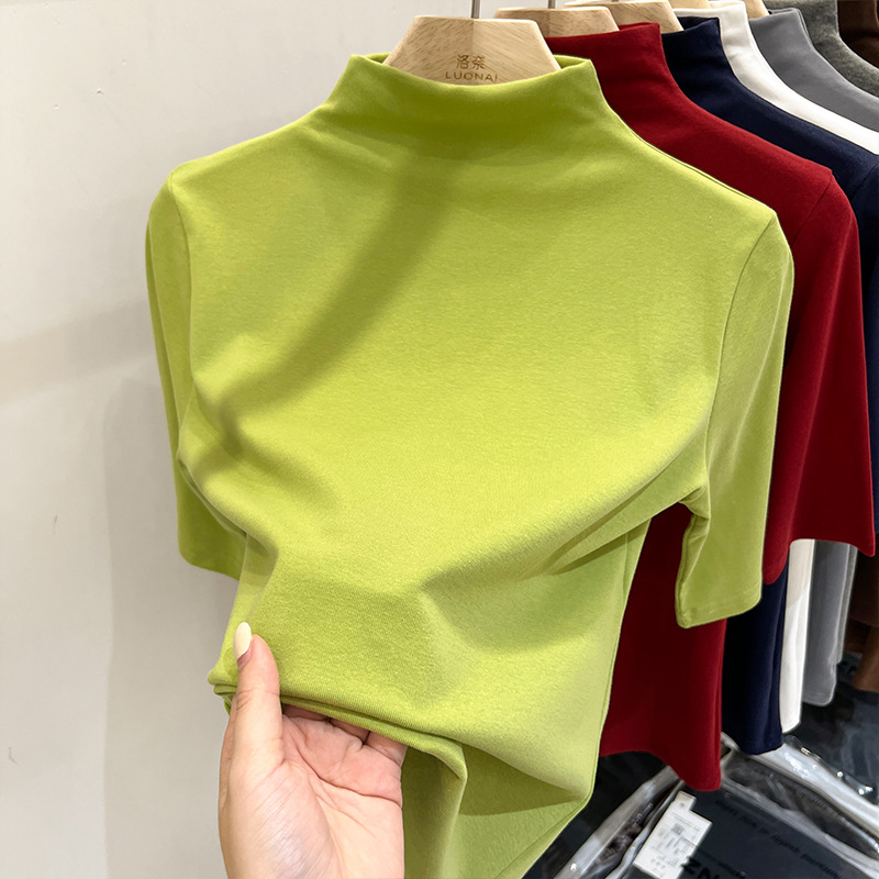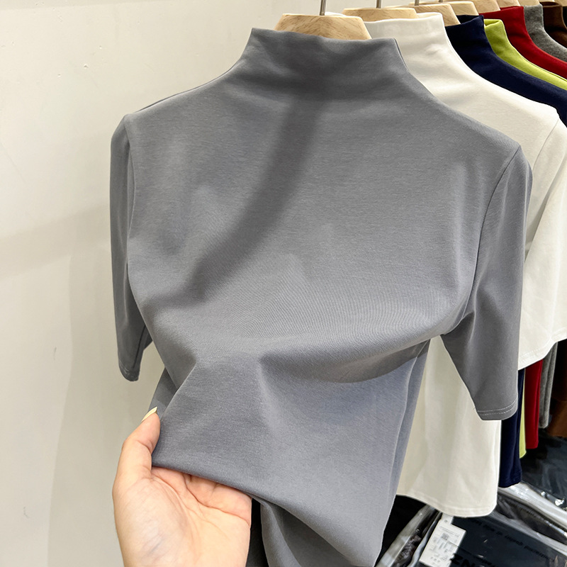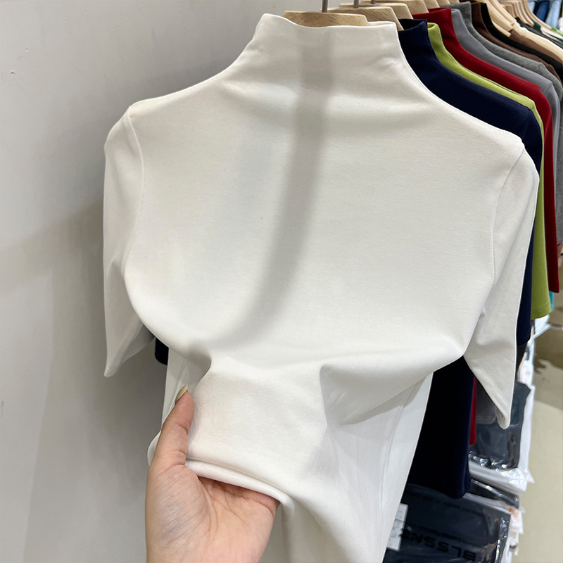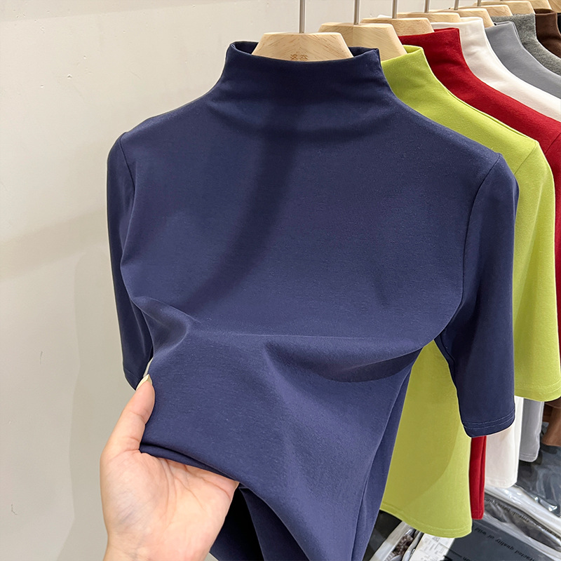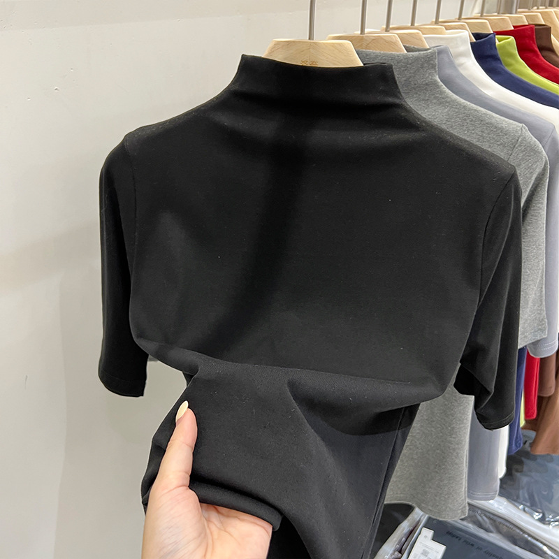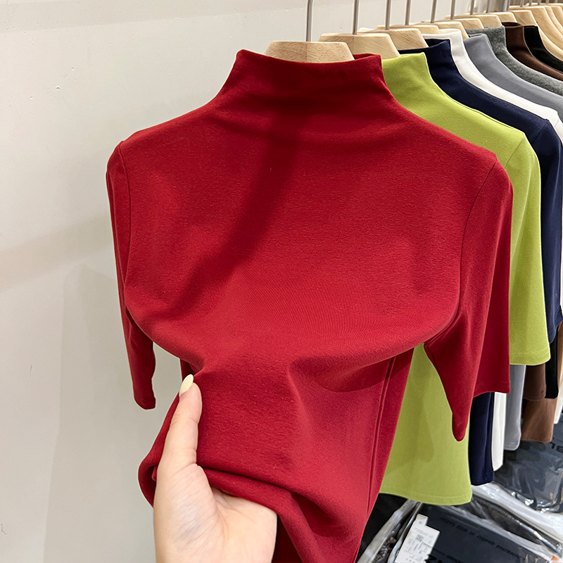 半高领短袖t恤女夏装新款修身中袖上衣女五分袖打底衫体恤潮