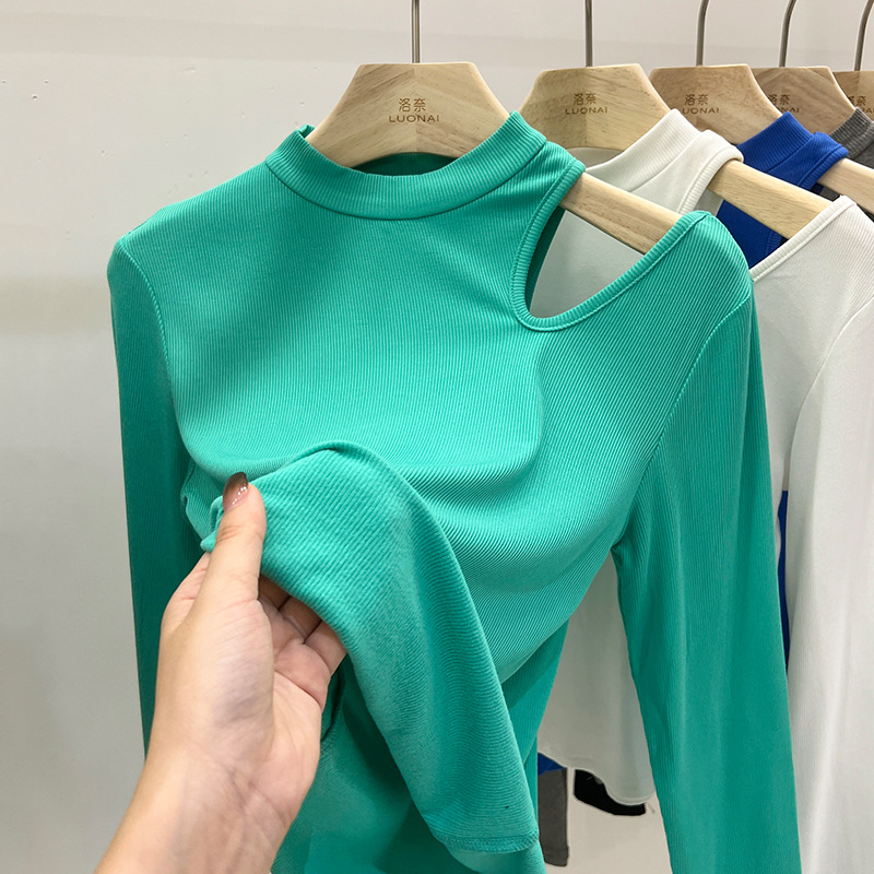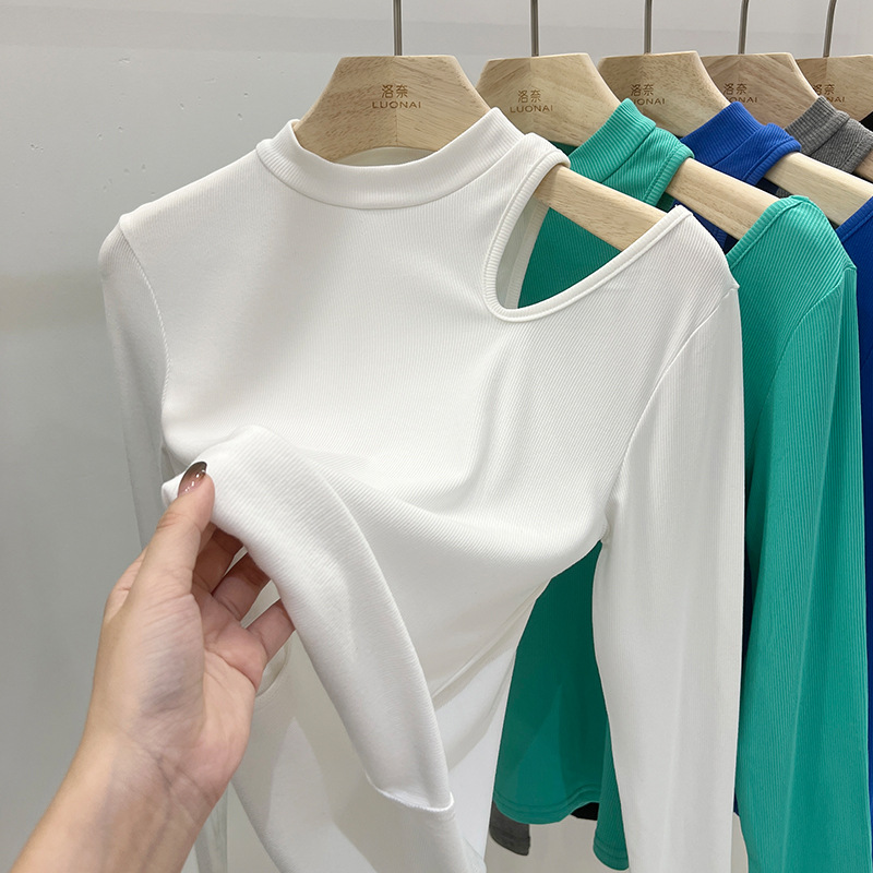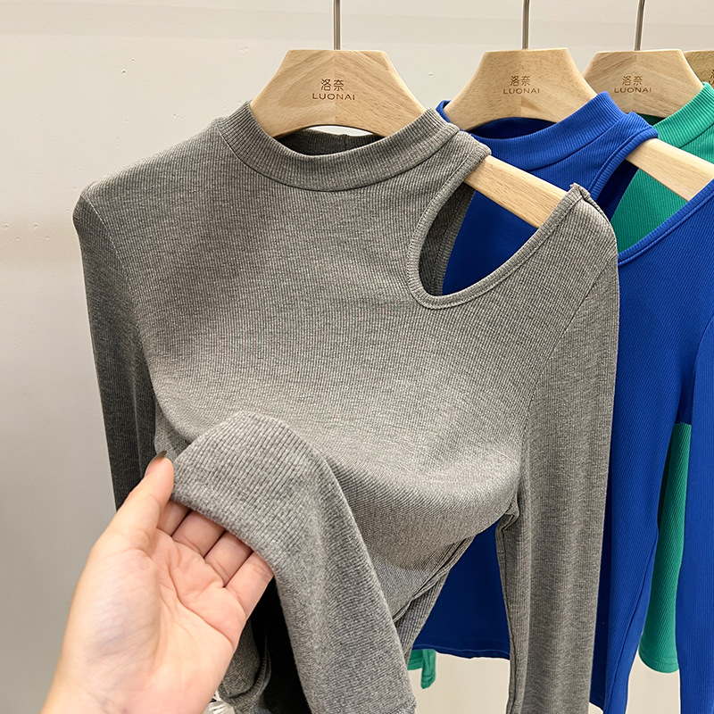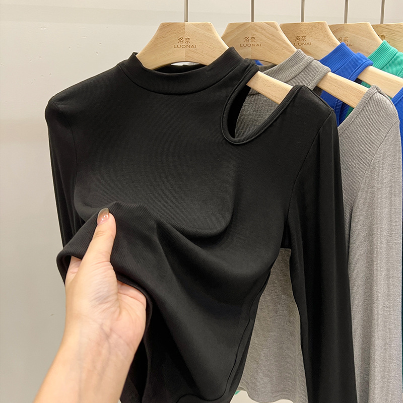 欧货立领打底衫女设计感小众春装新款别致镂空上衣内搭磨毛t恤女