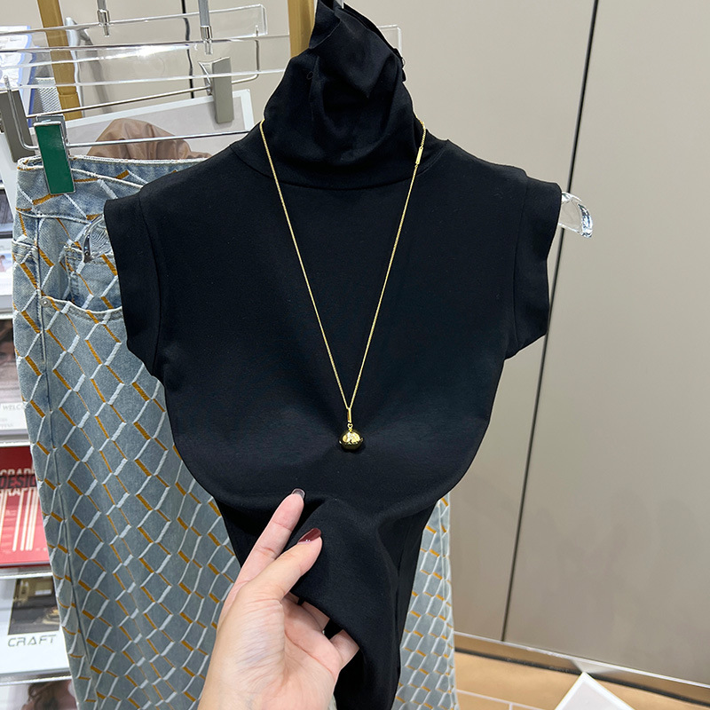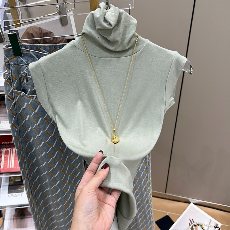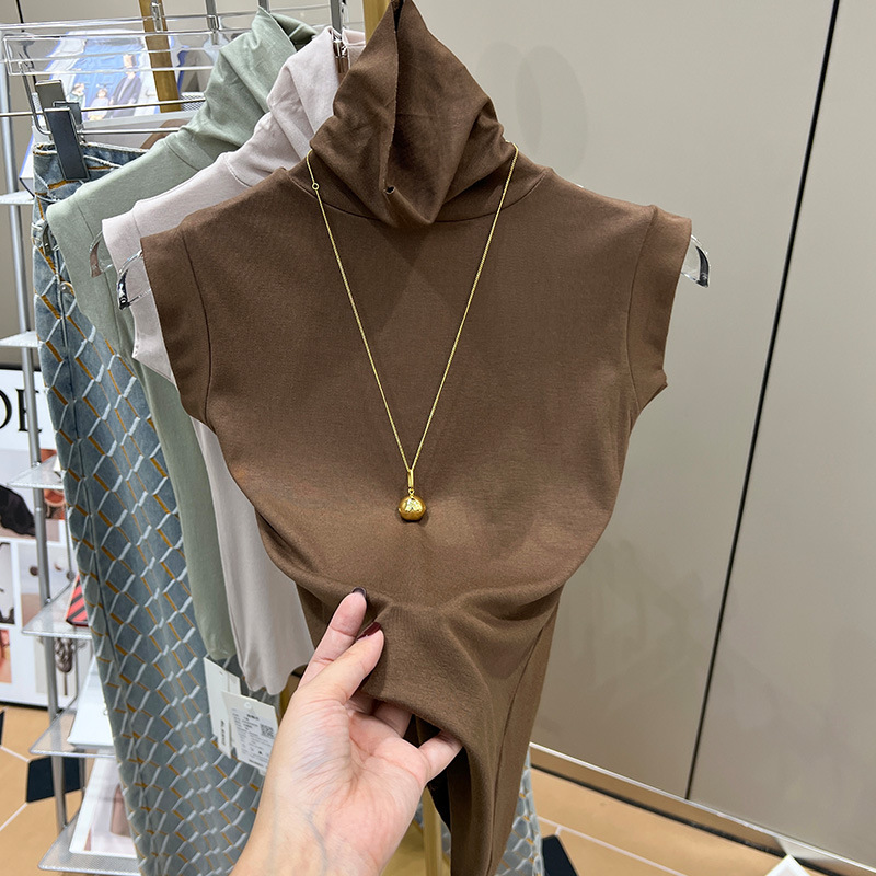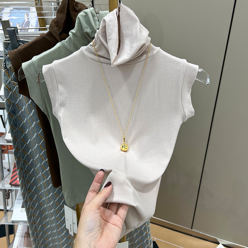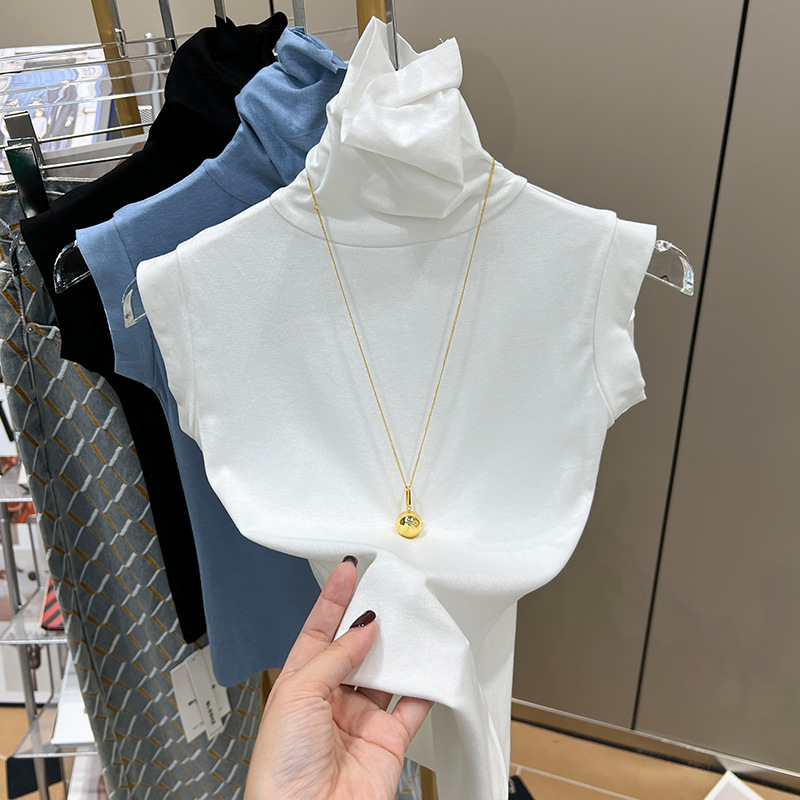 辣妹纯欲堆堆高领无袖背心女内搭夏季外穿紧身打底上衣设计感小众