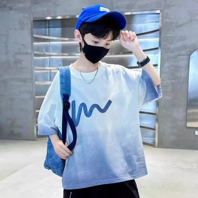 儿童潮流印花童装短袖T恤男童夏季新款儿童渐变色T恤炸街跨境