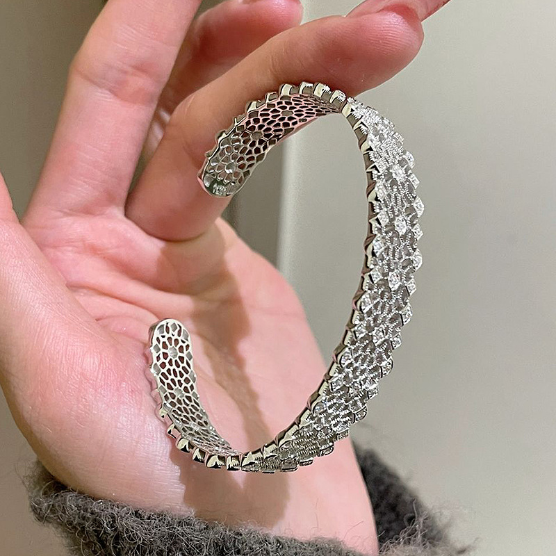 小红书爆款蕾丝镂空满钻手镯女新款满天星网状拉丝爆闪手环
