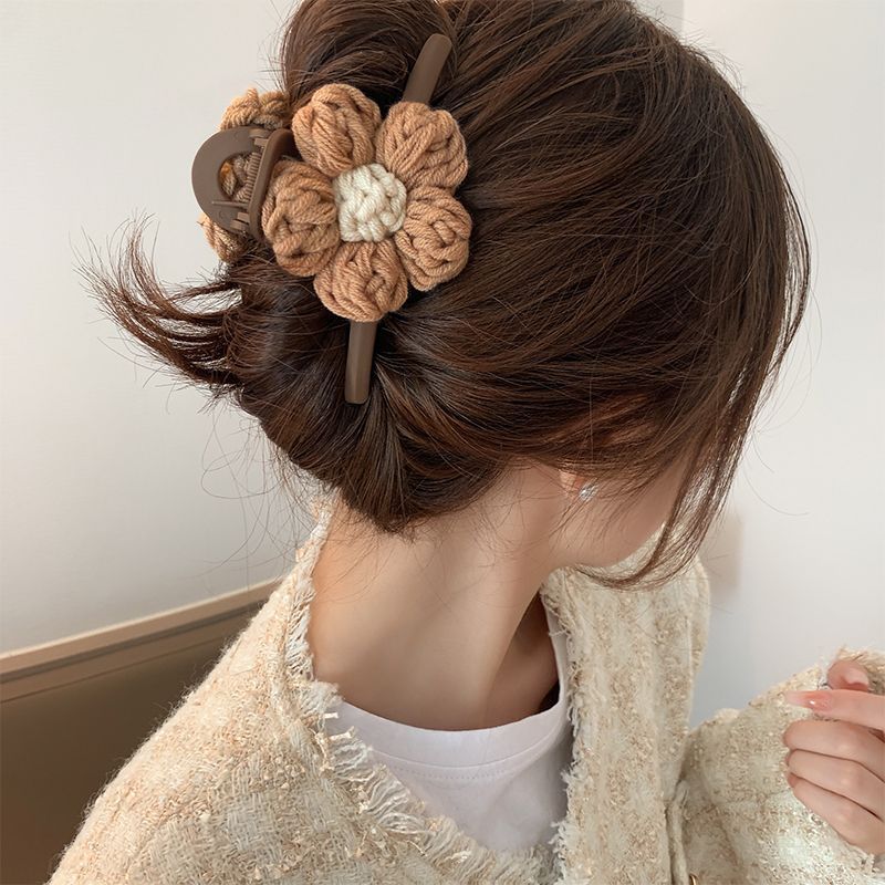温软甜茶~毛线花朵抓夹大号ins气质优雅发夹女后脑勺高级感鲨鱼夹