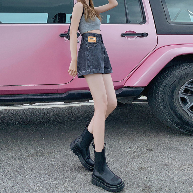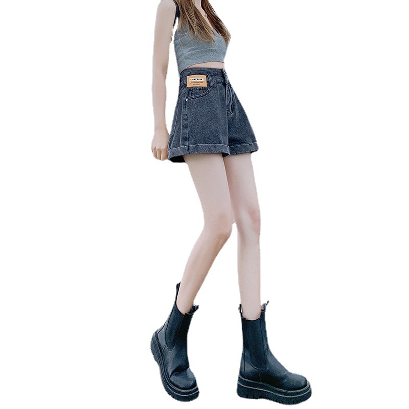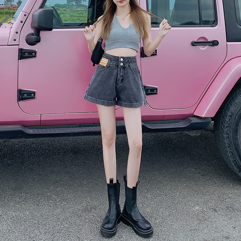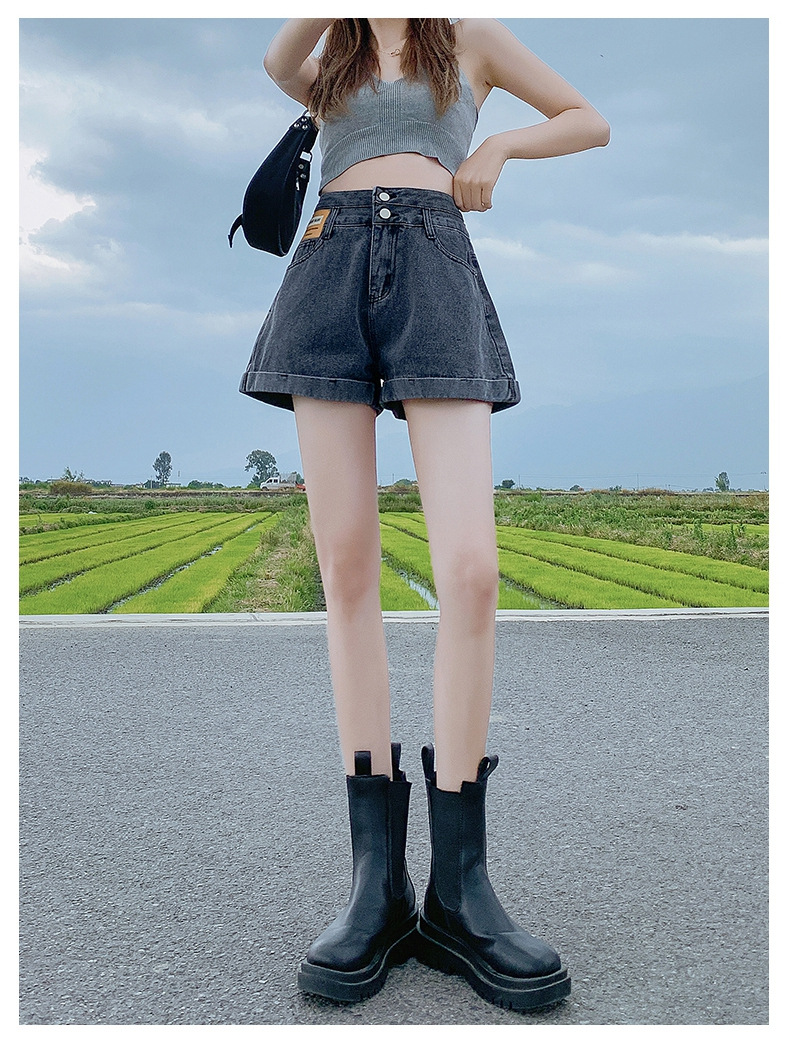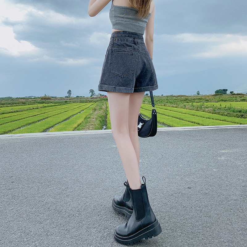 高腰双扣牛仔短裤女小个子夏季新款a字卷边宽松休闲阔腿热裤A