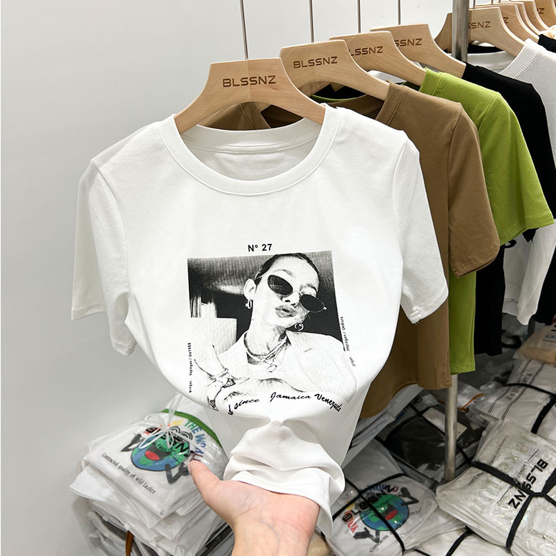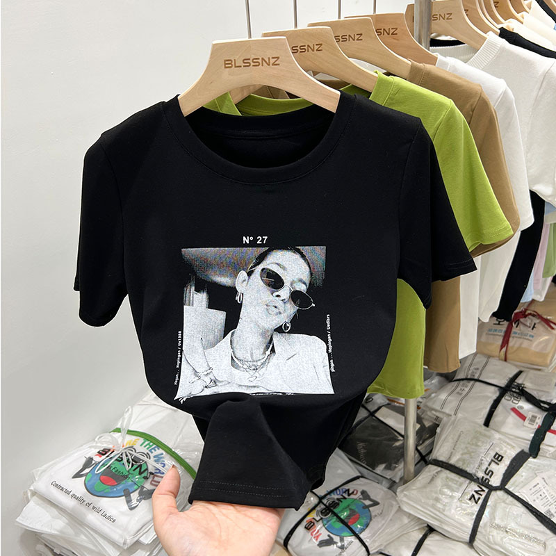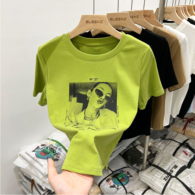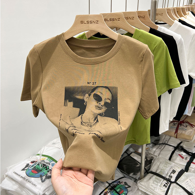欧货短袖t恤女设计感小众夏季新款修身美式印花短款上衣体恤