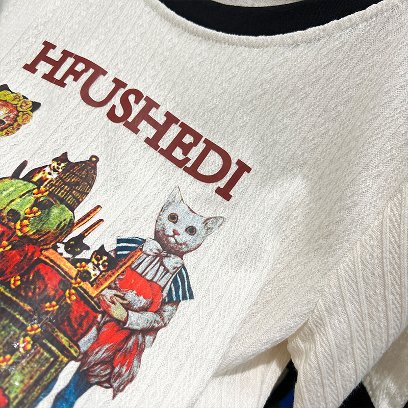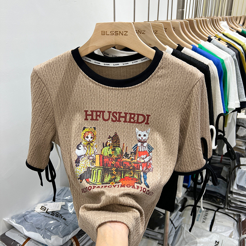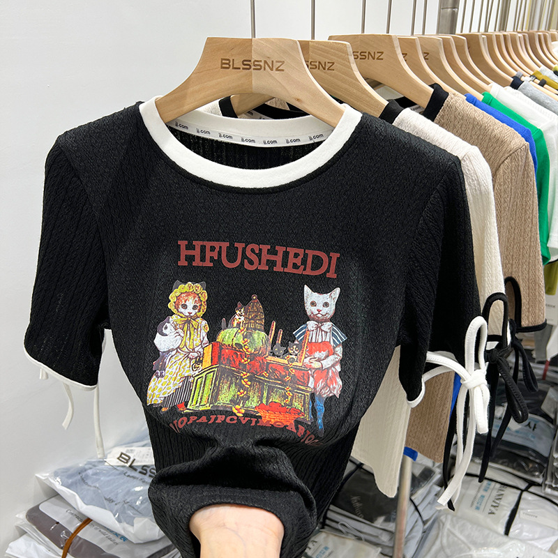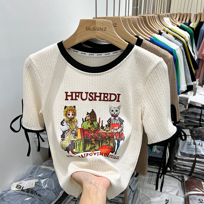 2025夏季新款设计感卡通印花正肩纯棉短袖t恤女宽松百搭质感上衣