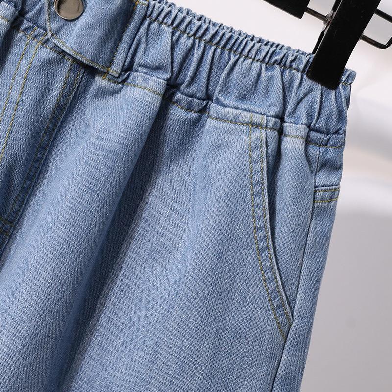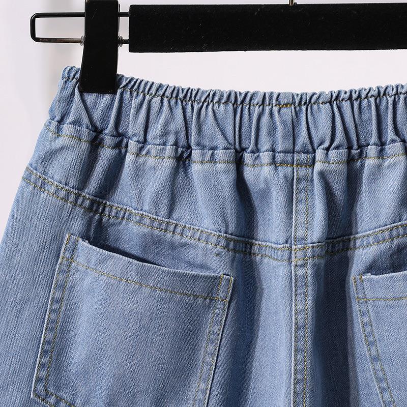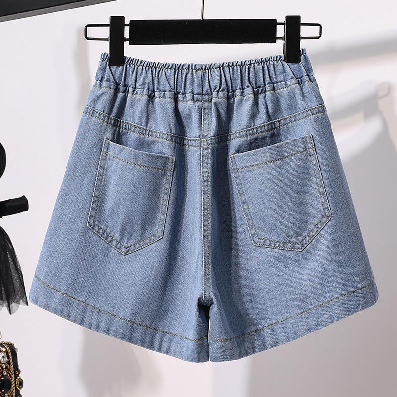 韩国夏天宽松阔腿热裤胖MM加肥加大码高腰牛仔短裤 女女式牛