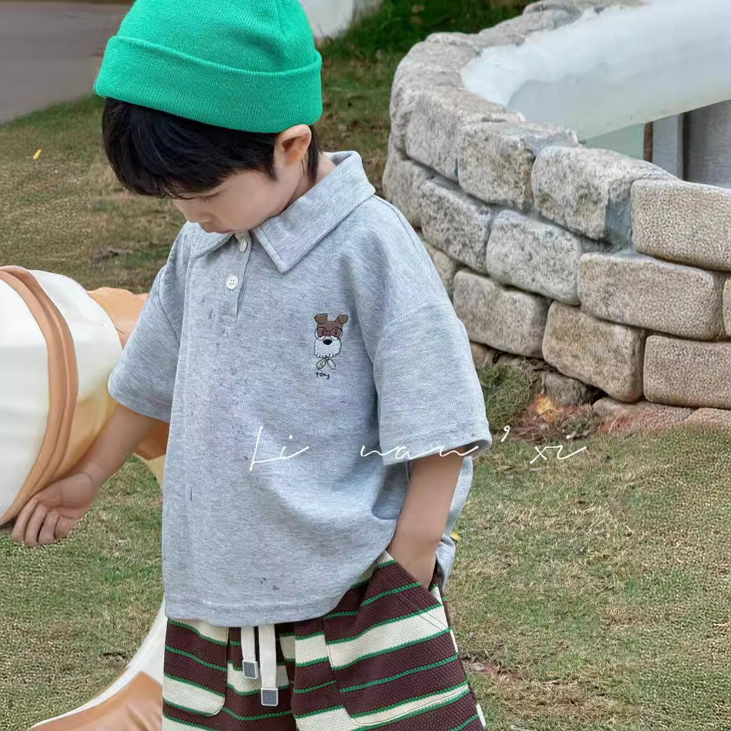 24夏季新款男童短袖针织POLO领T恤3-8岁宝宝卡通绣花