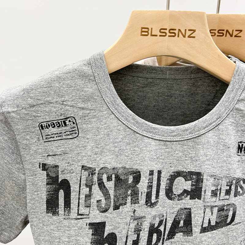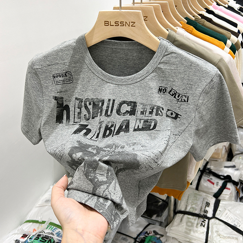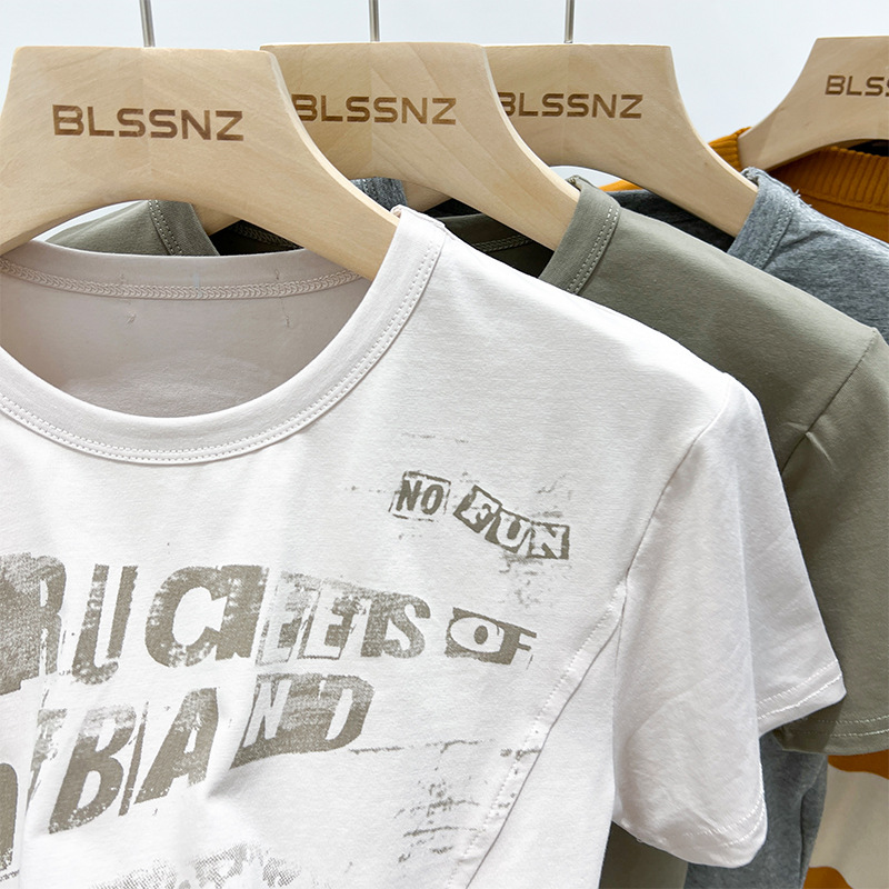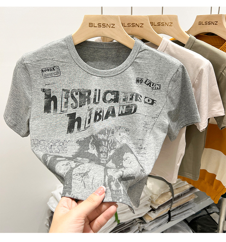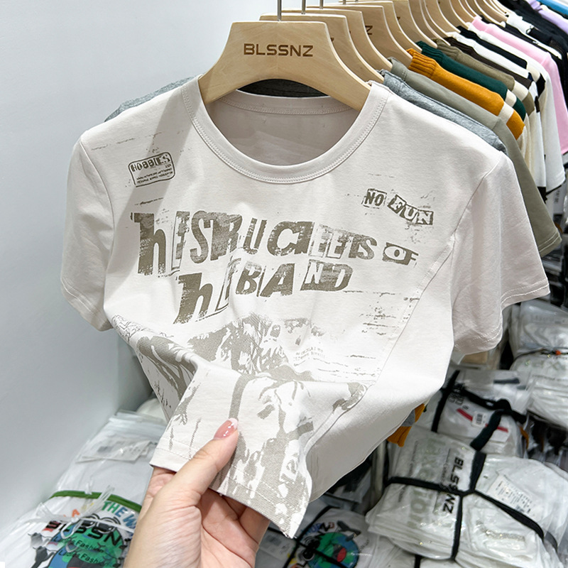 不规则正肩短袖t恤女ins潮夏季新款独特别致美式印花短款上衣