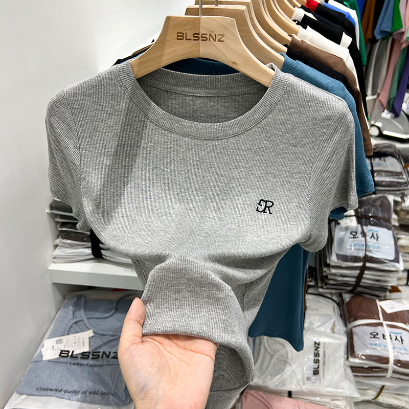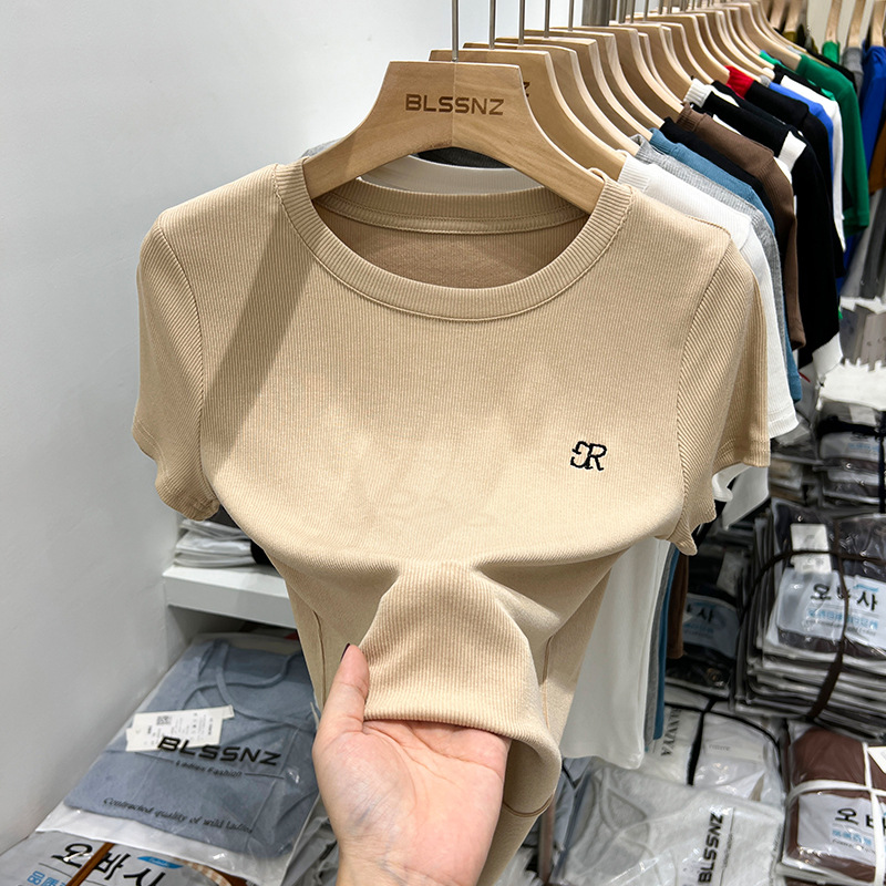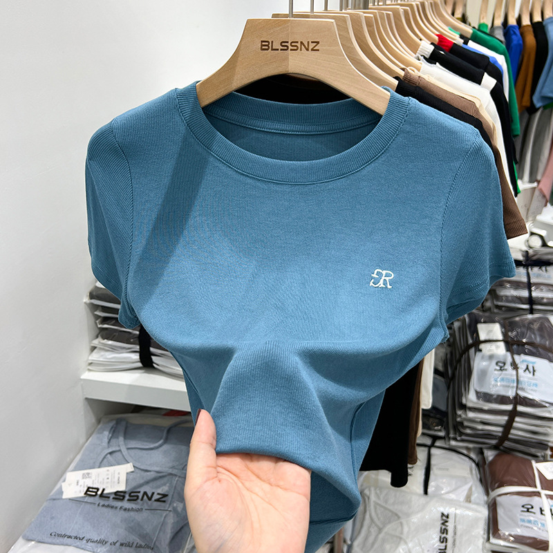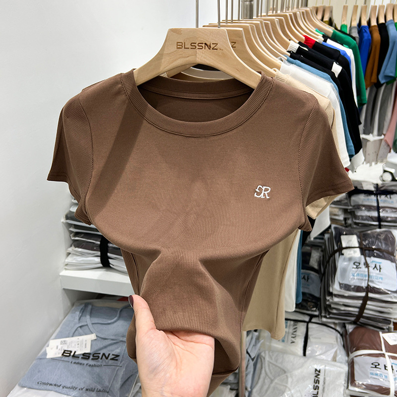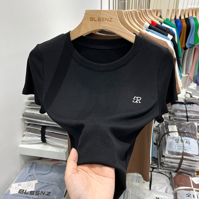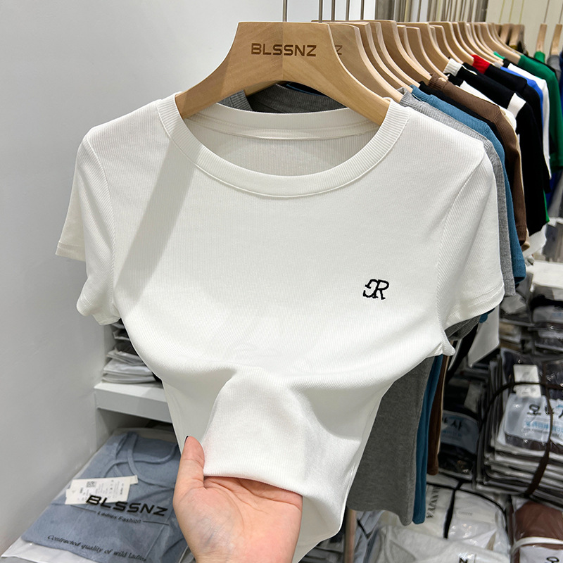 欧货白色短袖t恤女夏季年新款洋气刺绣修身短款上衣打底衫女
