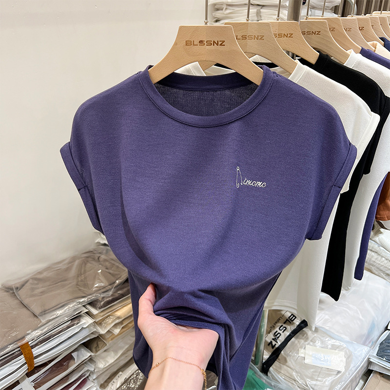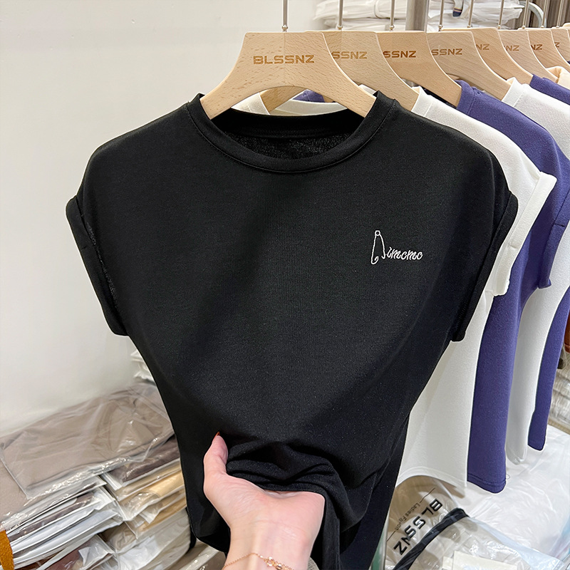 #精梳纯棉# 高腰短款T恤女夏2025新款修身显瘦百搭上衣短袖打底衫