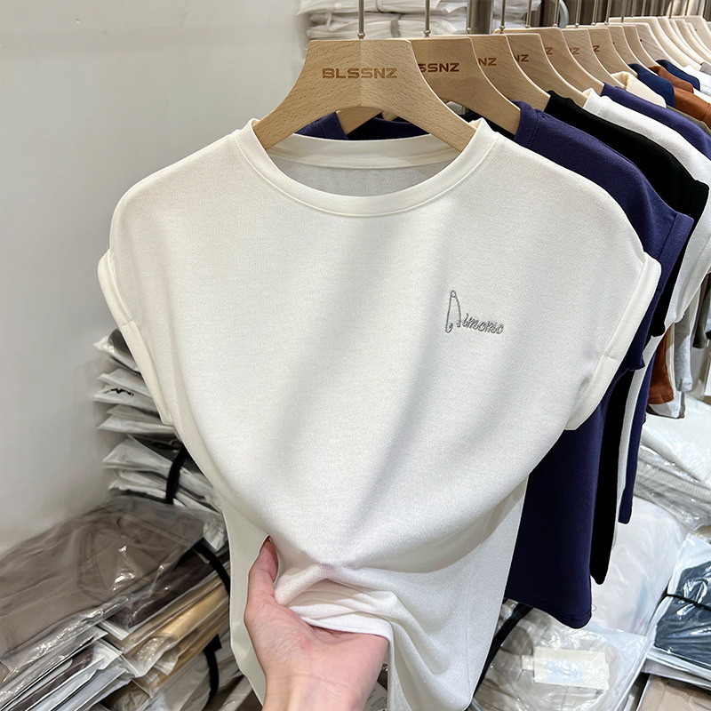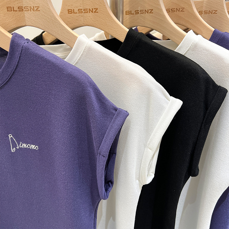 坎肩袖t恤女夏季新款设计感重工刺绣小衫小众宽松上衣女潮