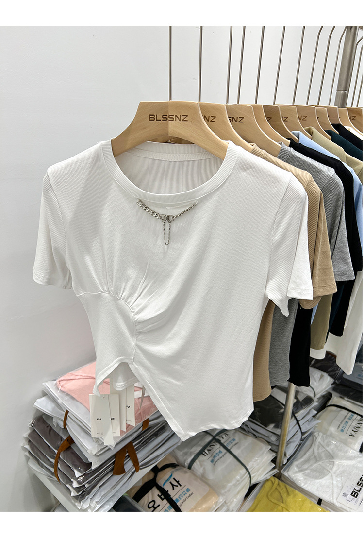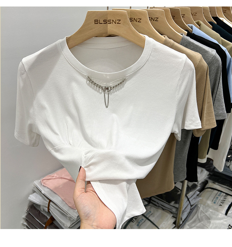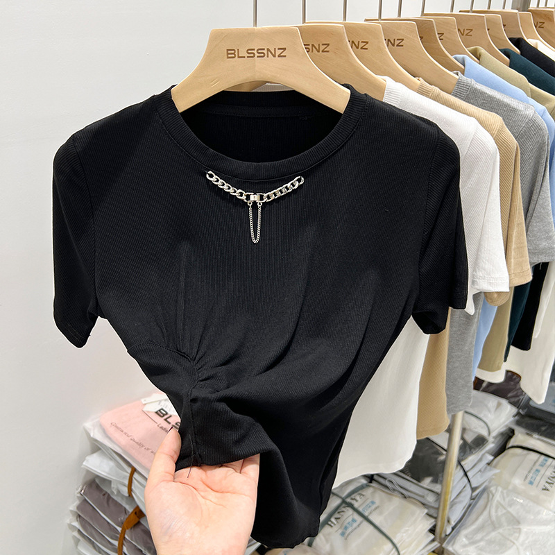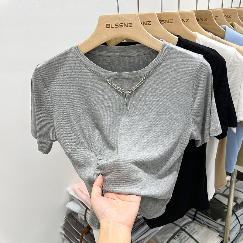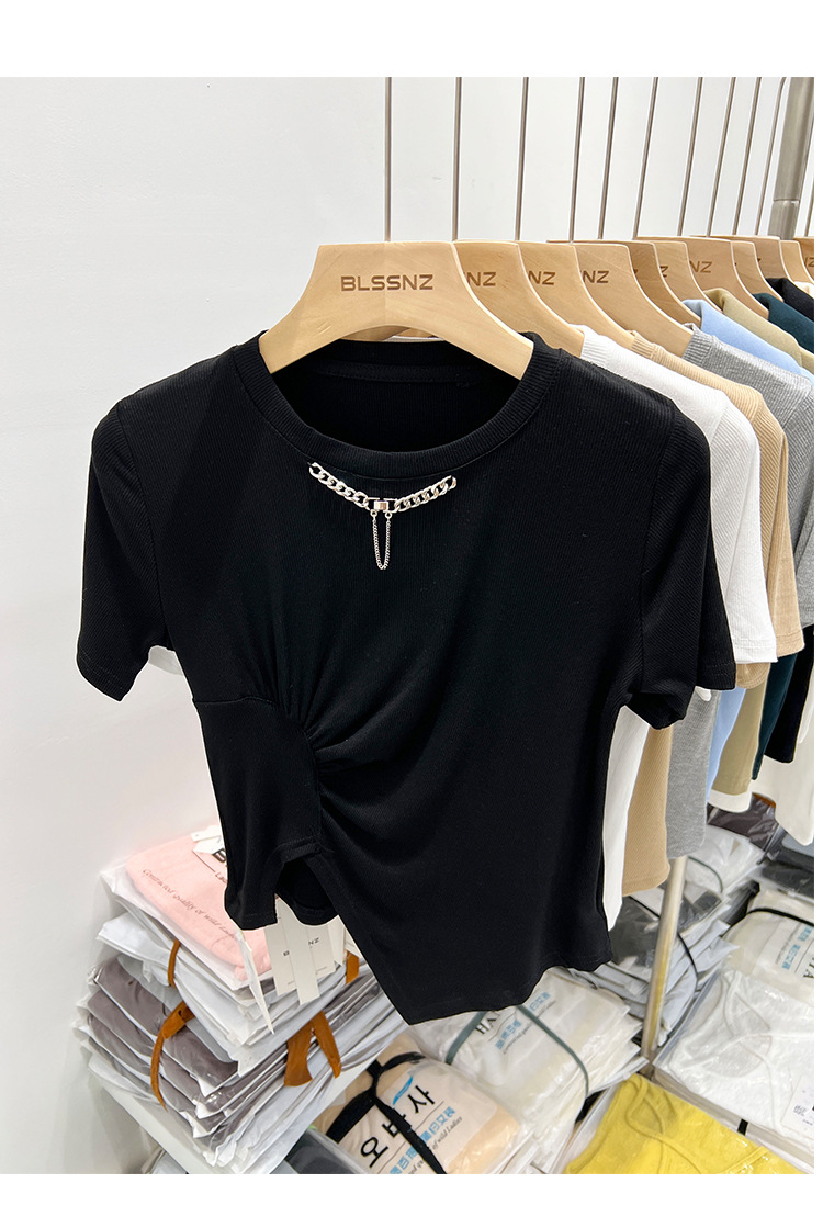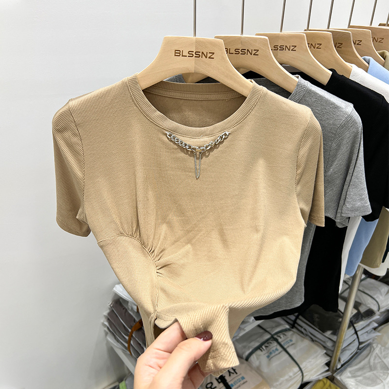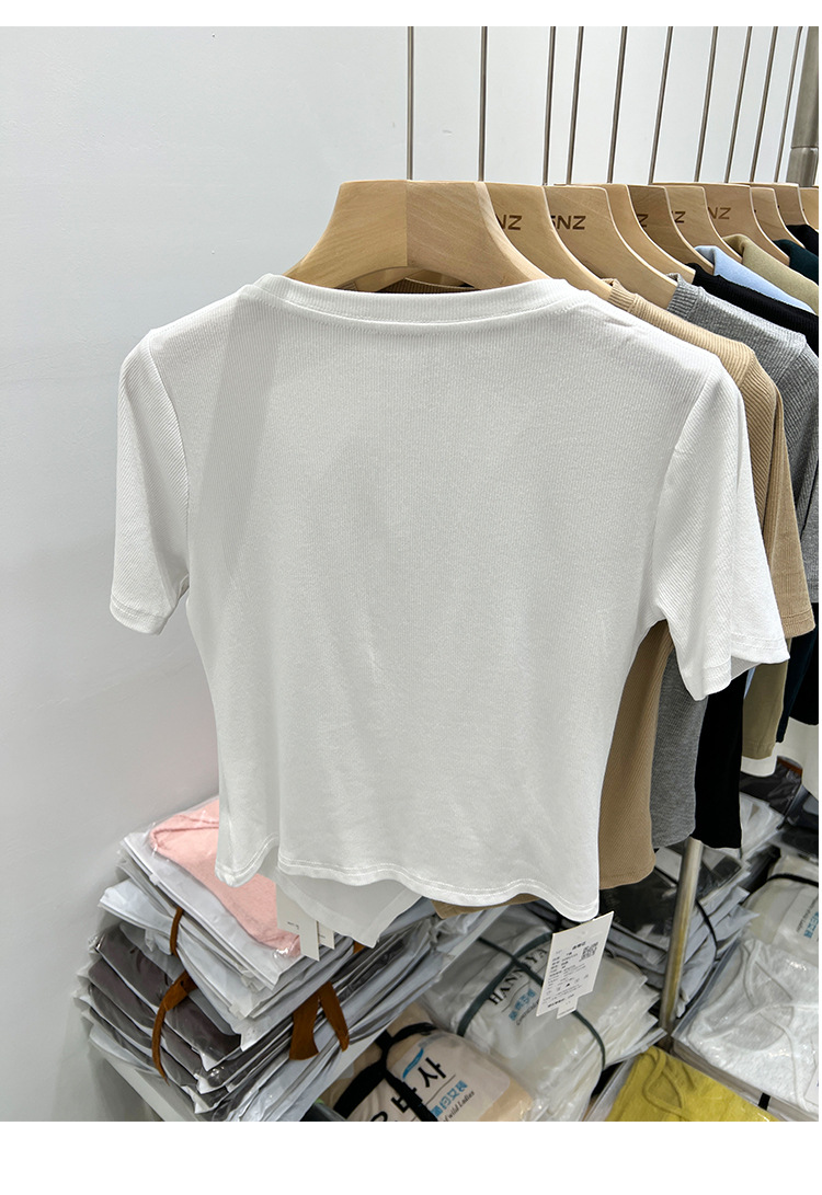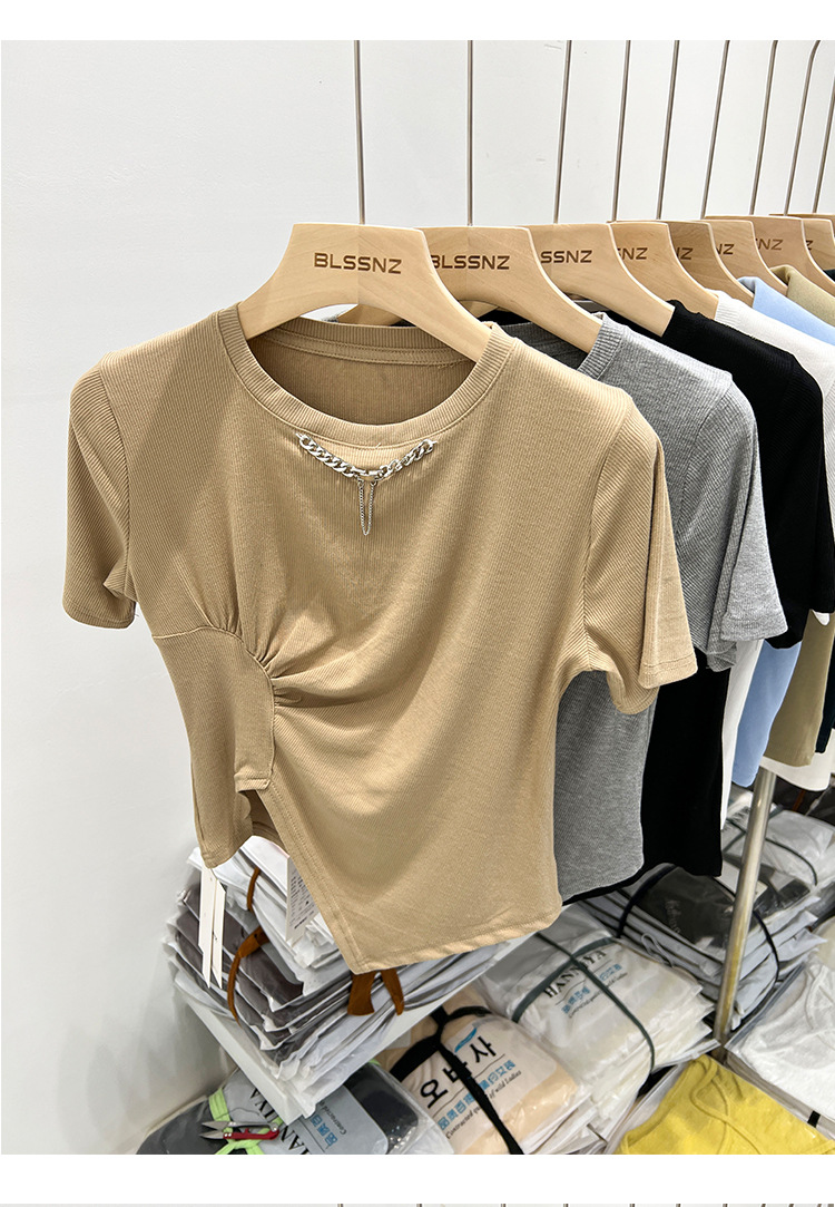 欧货螺纹短袖t恤女设计感小众夏装新款别致不规则短款上衣体恤潮