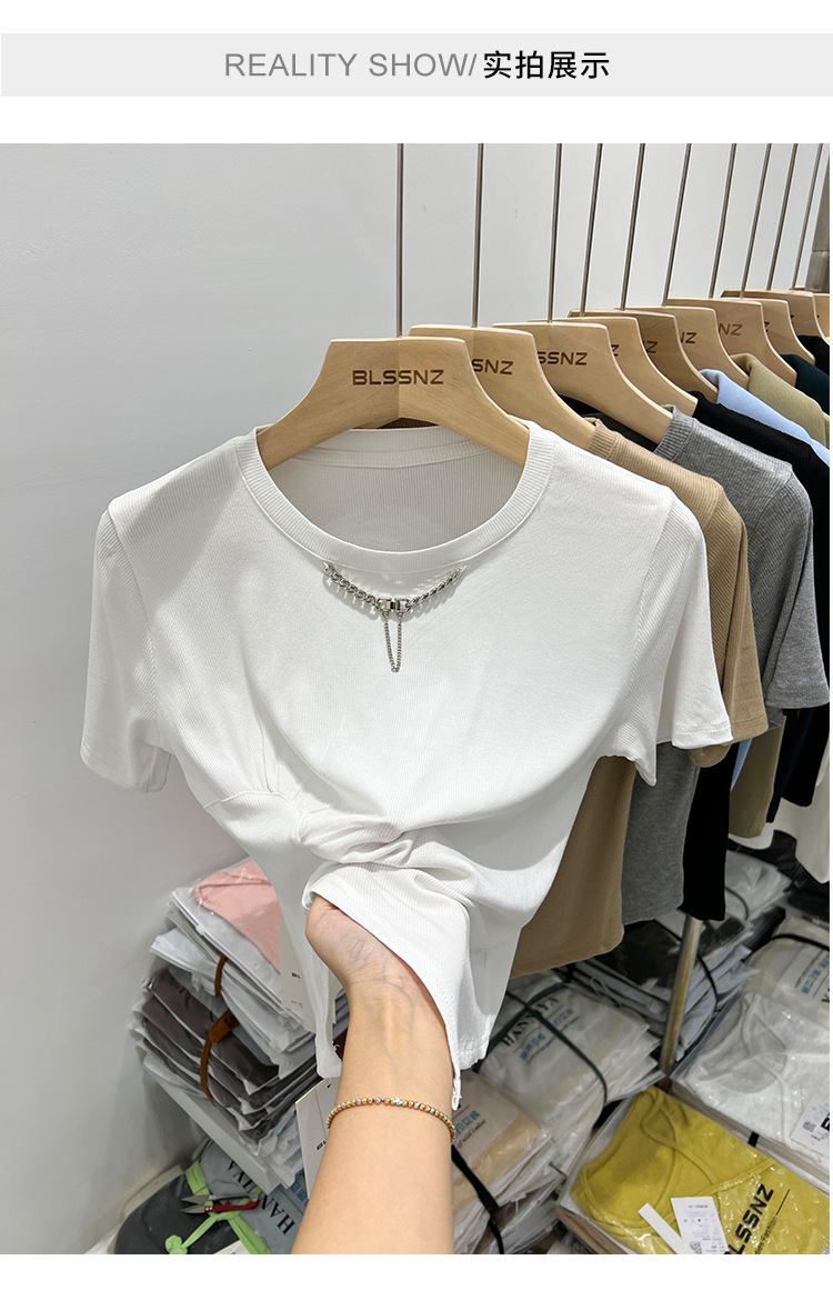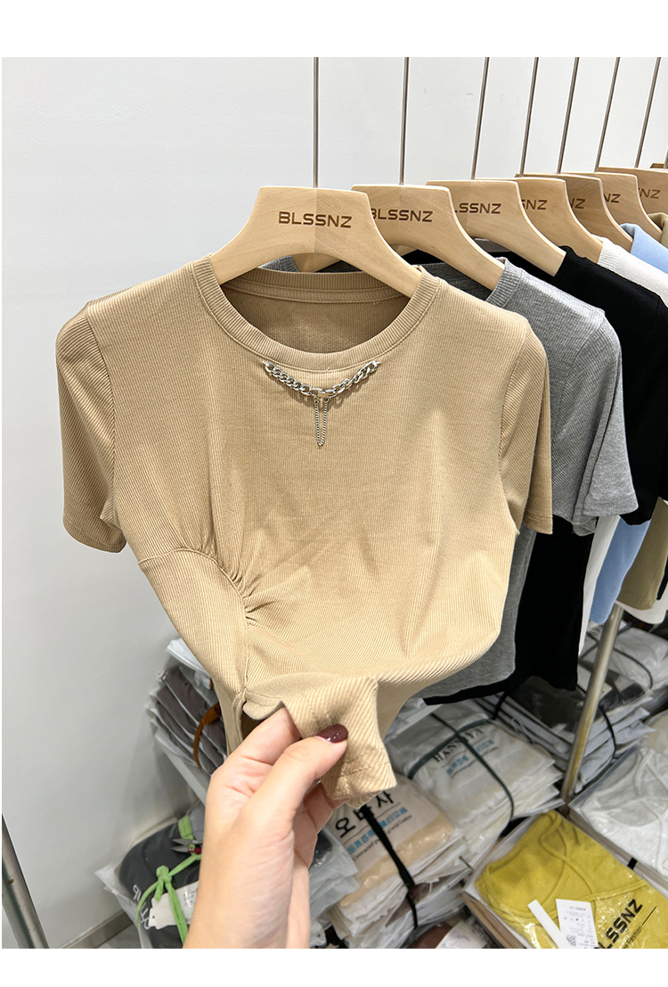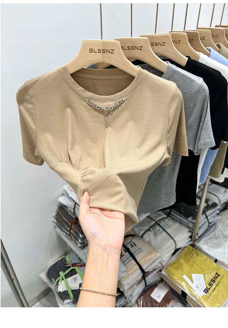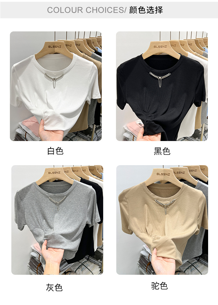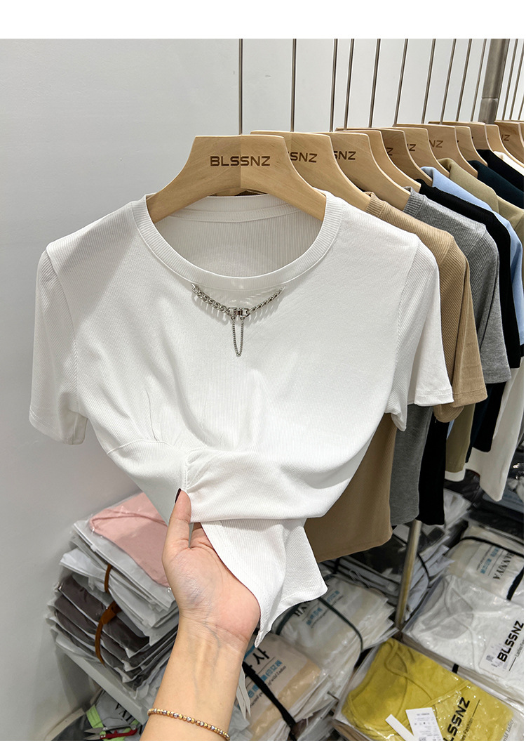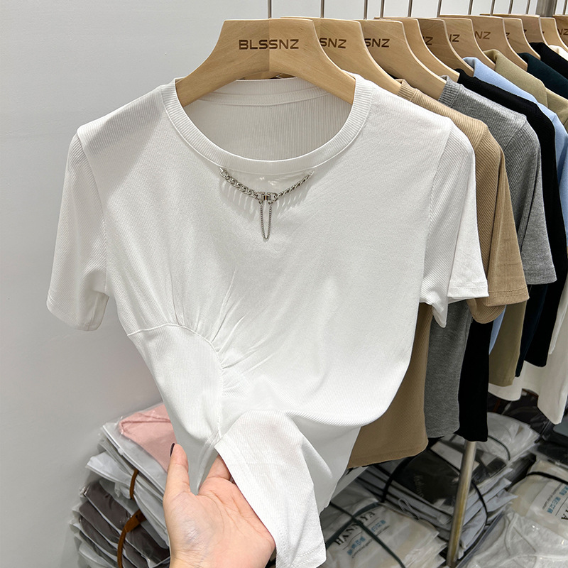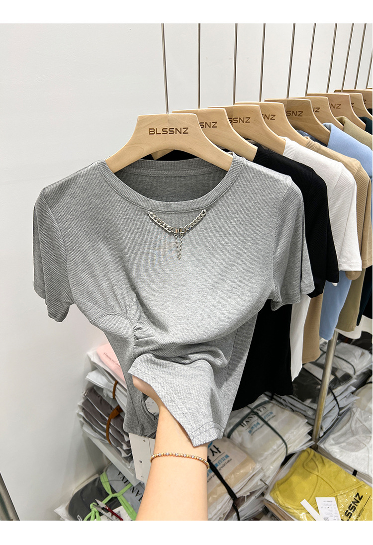 欧货螺纹短袖t恤女设计感小众夏装新款别致不规则短款上衣体恤潮