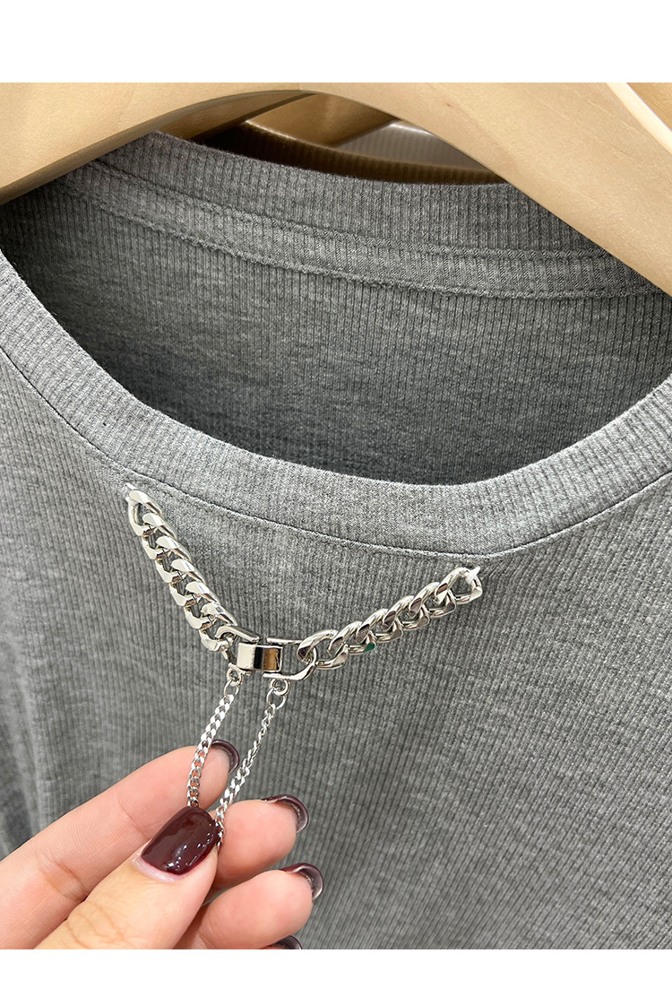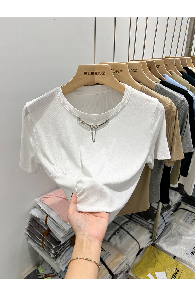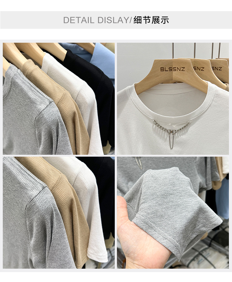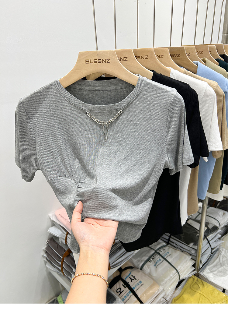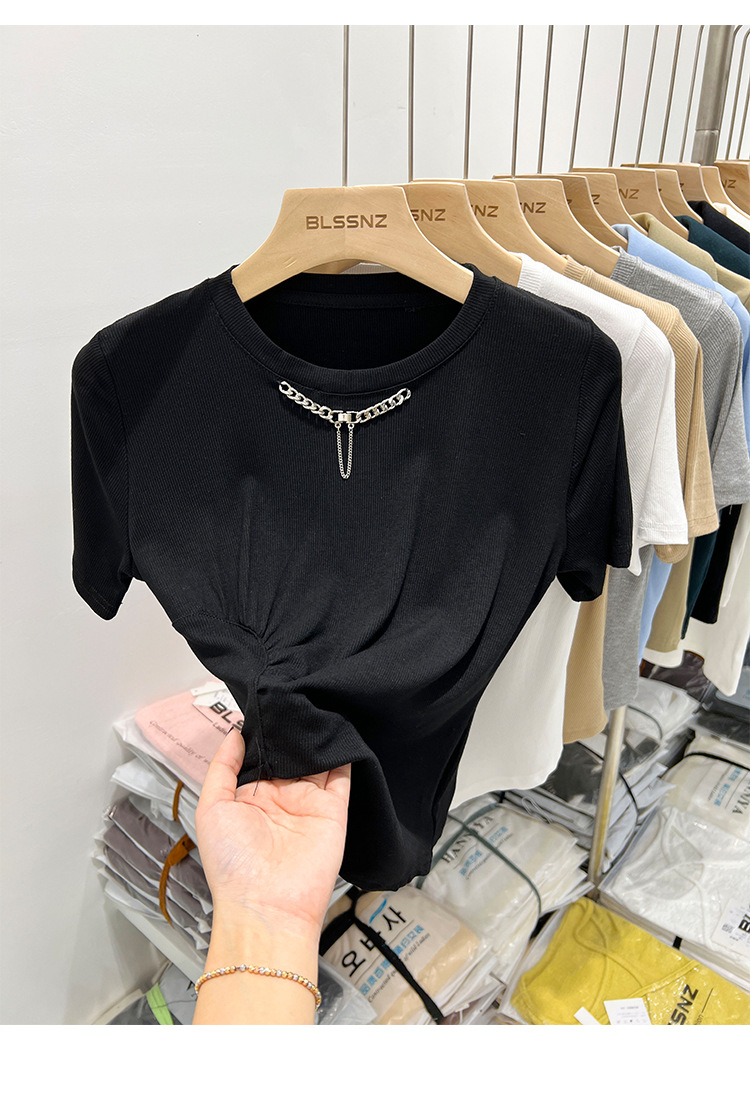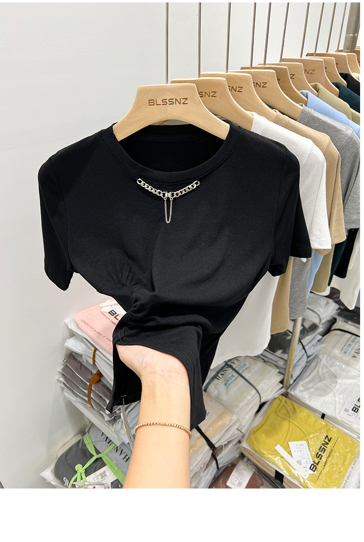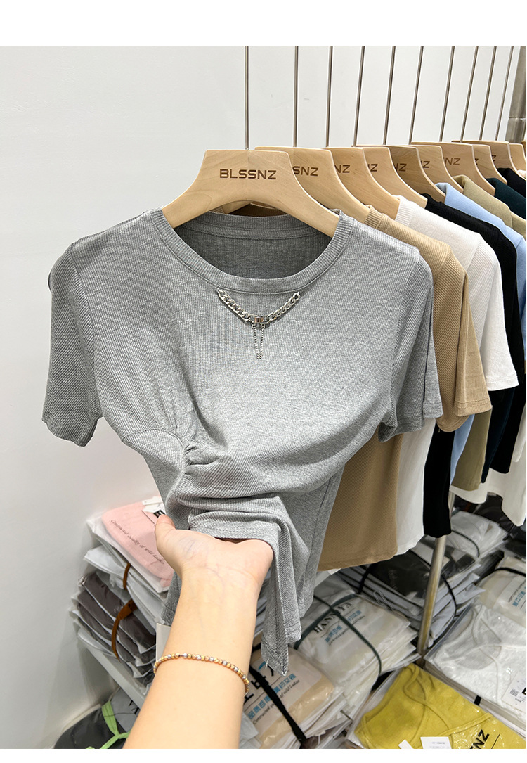 欧货螺纹短袖t恤女设计感小众夏装新款别致不规则短款上衣体恤潮