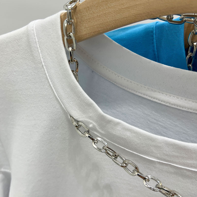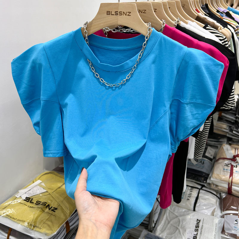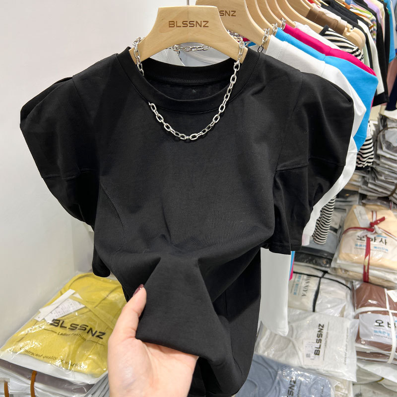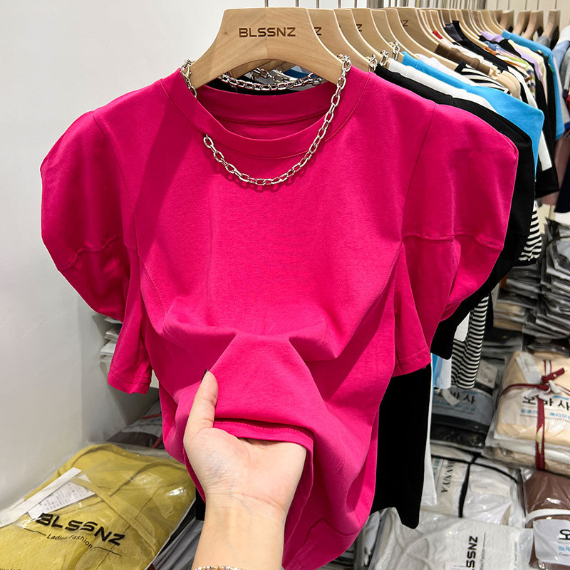 欧货重工链条短袖t恤女宽松夏季洋气独特别致泡泡袖上衣半袖体恤