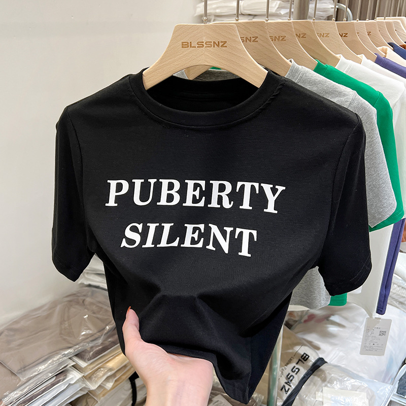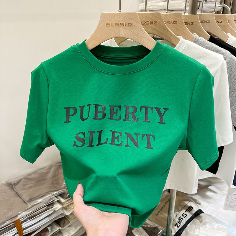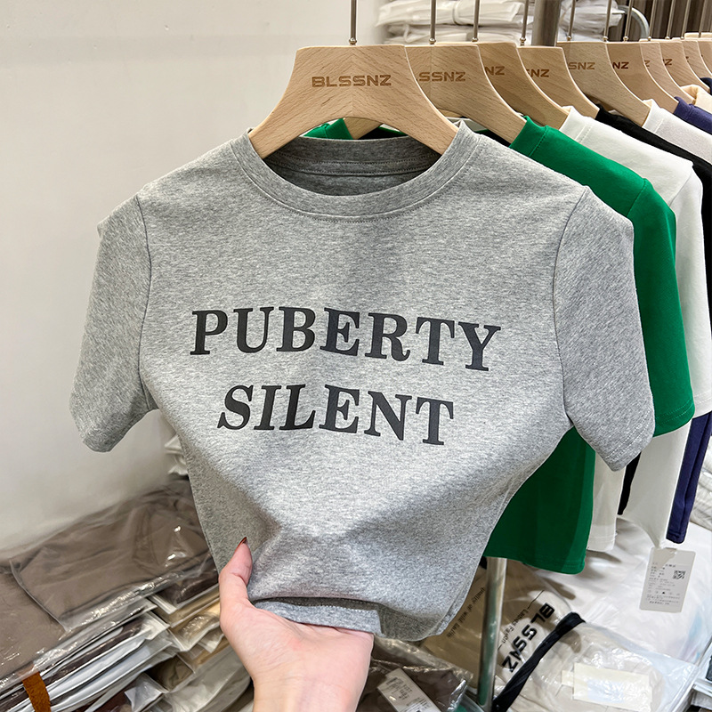 白色短袖t恤女修身夏季新款复古美式印花短款上衣半袖体恤潮