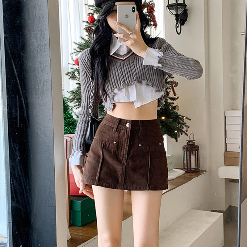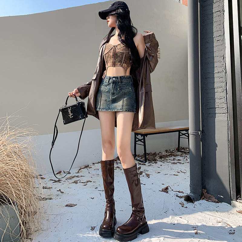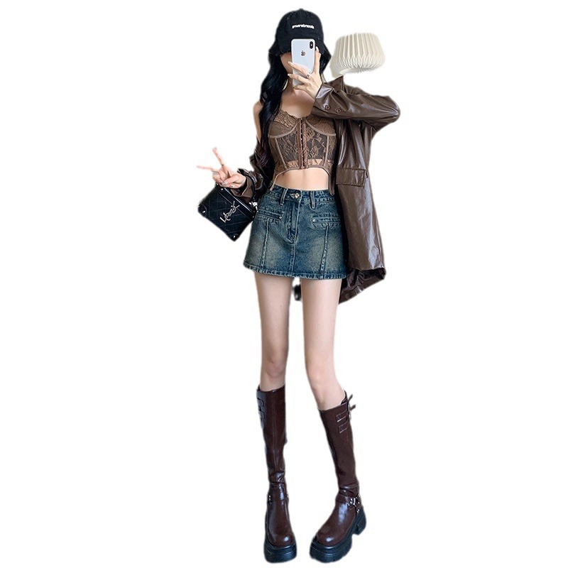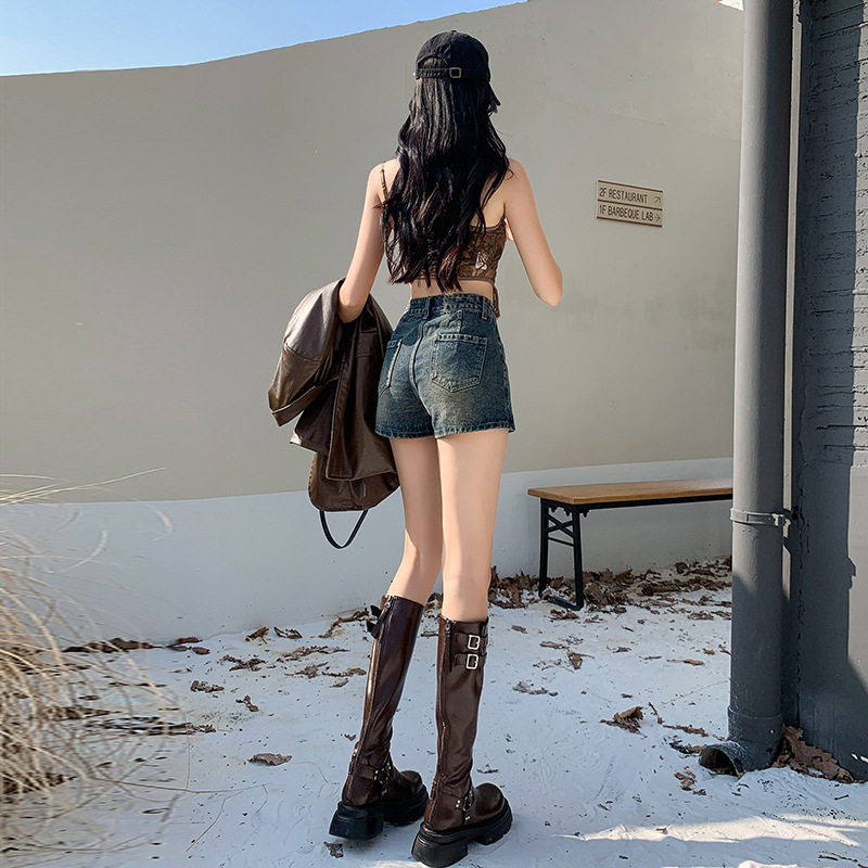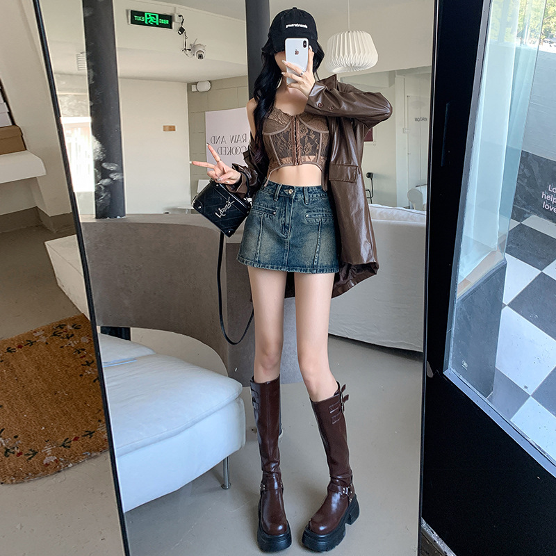 复古蓝色牛仔短裤女春夏新款高腰显瘦防走光设计辣妹裙裤子