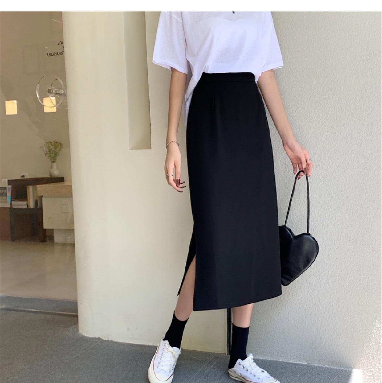 秋天款A字版高腰半身裙女一步开叉遮胯显瘦中长款黑色包臀裙