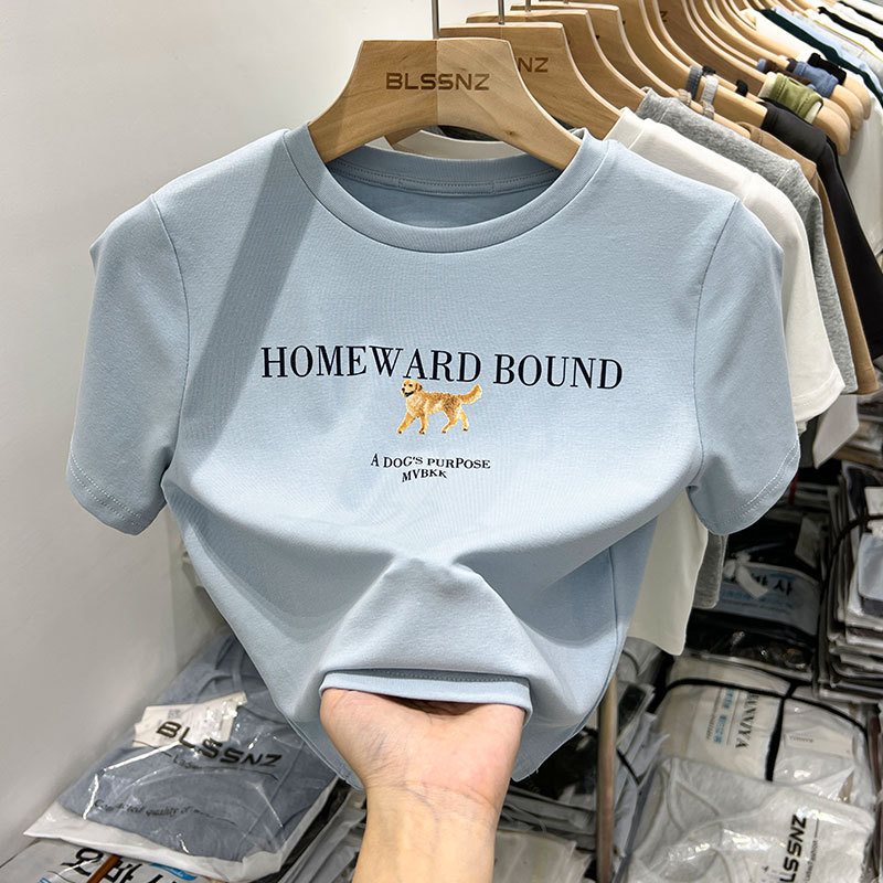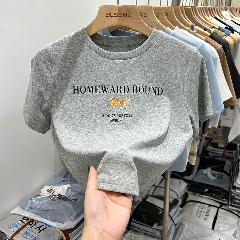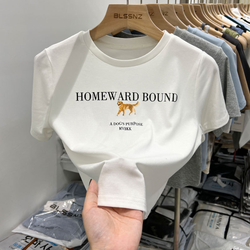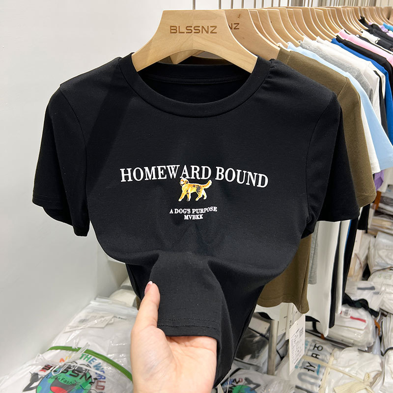 美式甜辣短袖t恤女修身夏装新款chic港味印花短款上衣体恤潮