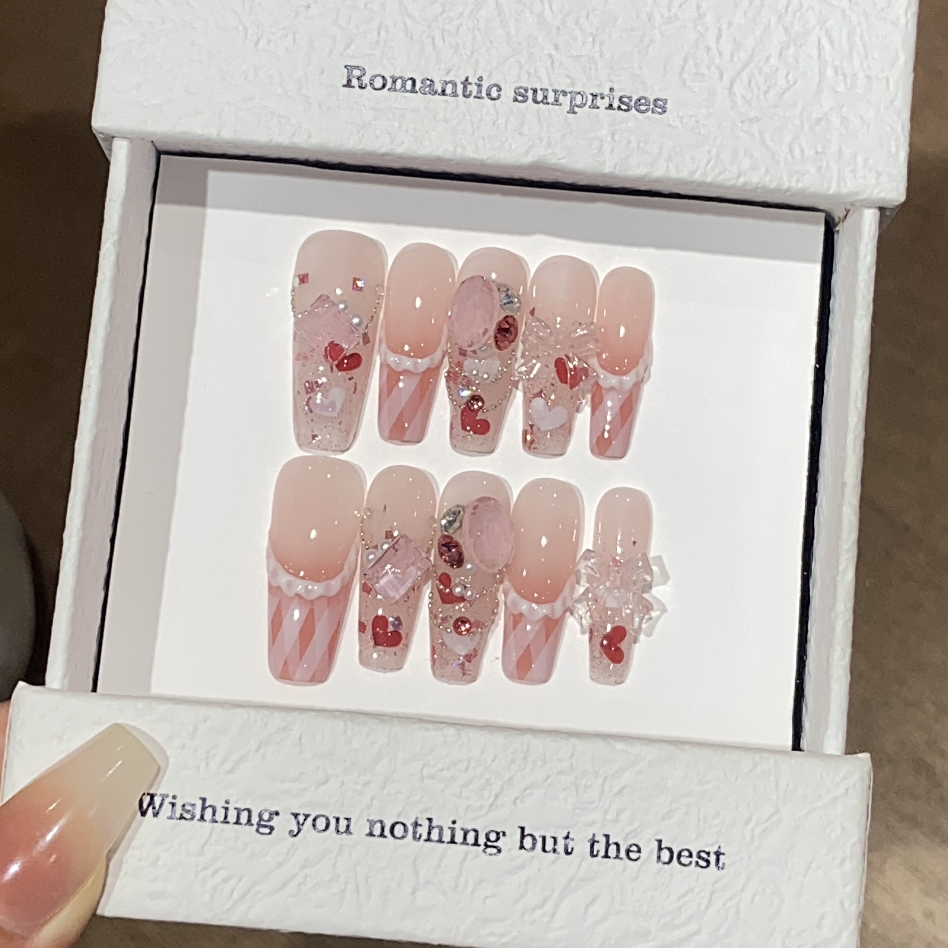 纯手工穿戴甲人鱼晕染高颜值贴钻光疗甲可拆卸使用新娘美甲片批发