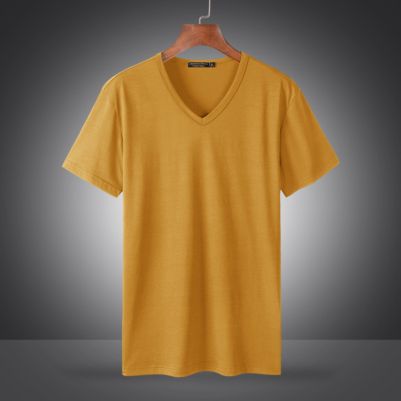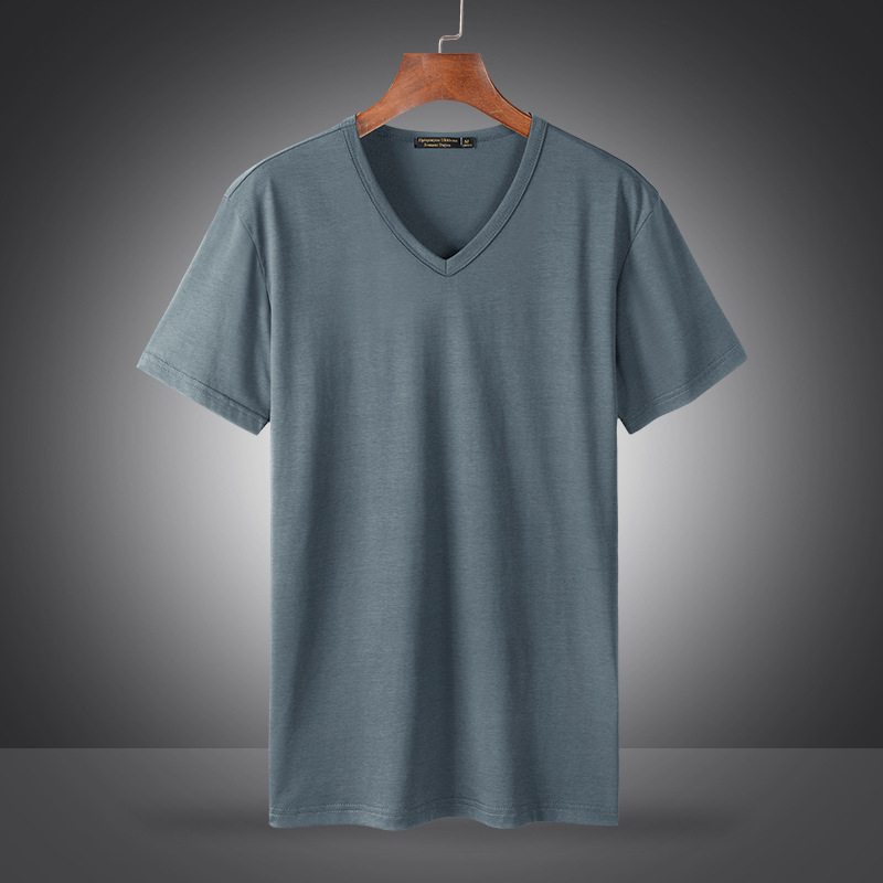 新款莫代尔男士冰丝短袖t恤夏季潮牌v领冰感速干上衣体恤衫
