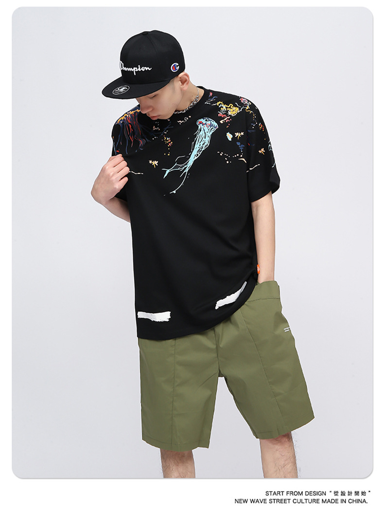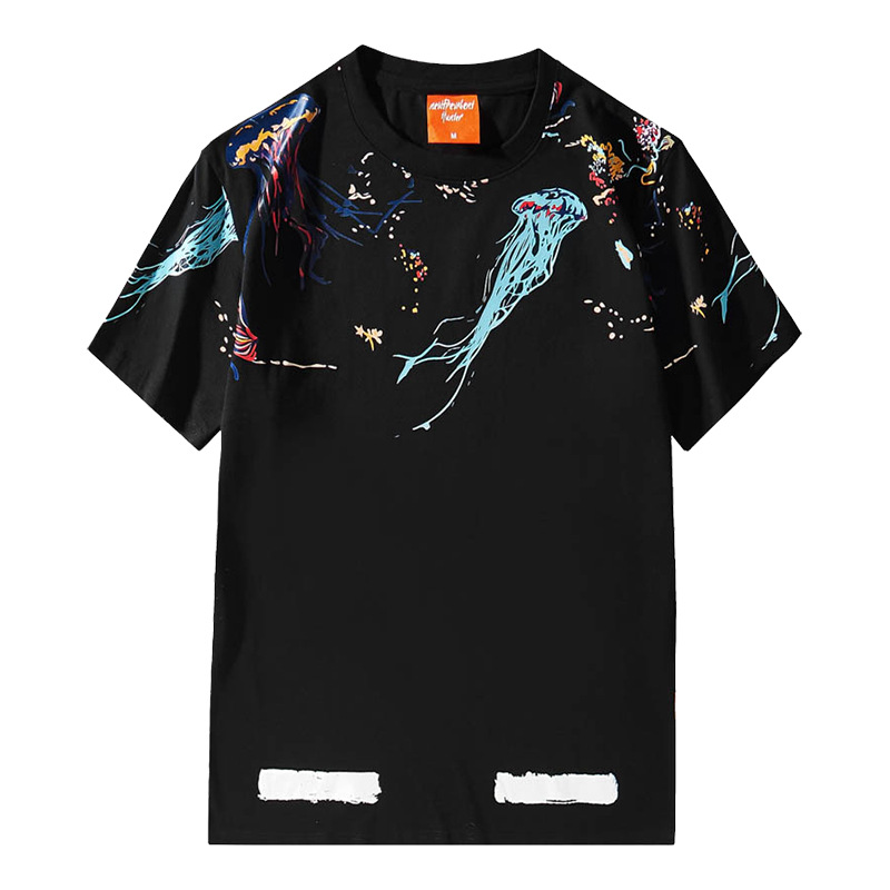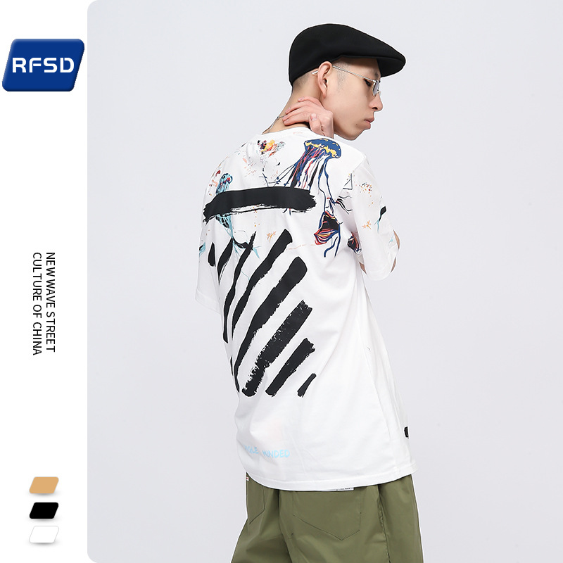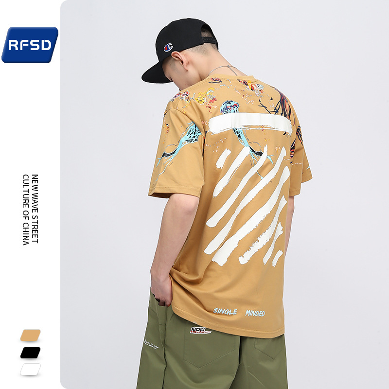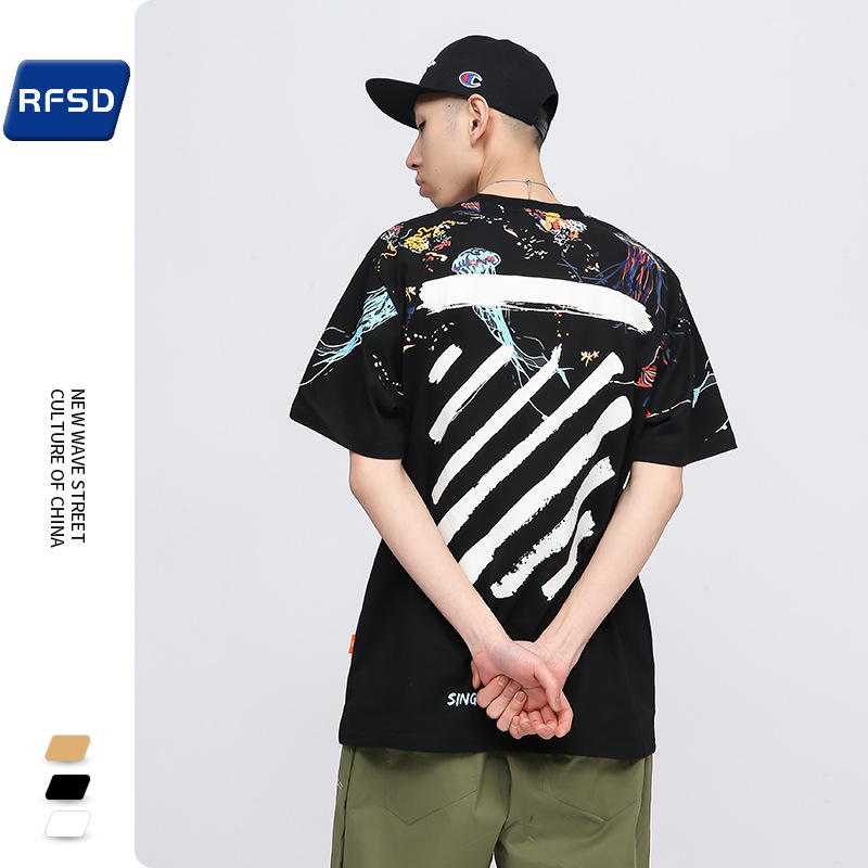 RFSD|夏新款欧美潮牌涂鸦泼墨印花短袖T恤男女宽松情侣装半袖