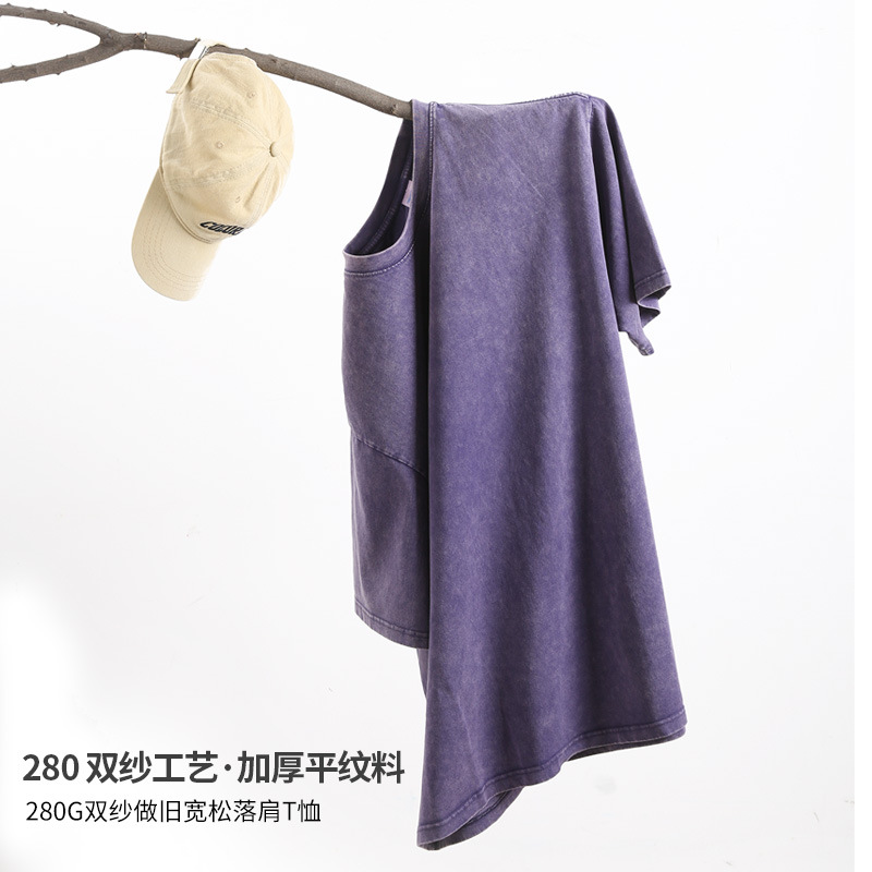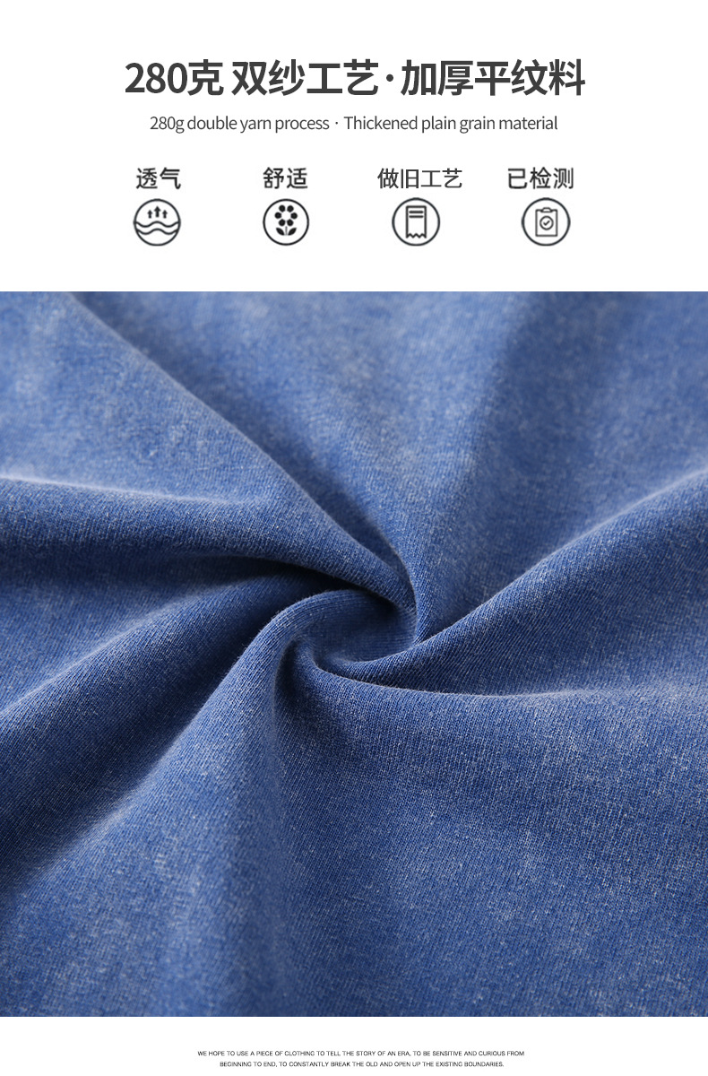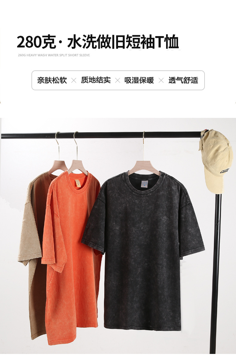 夏季重磅做旧水洗t恤280克美式炒雪花纯棉宽松男士短袖潮牌上衣