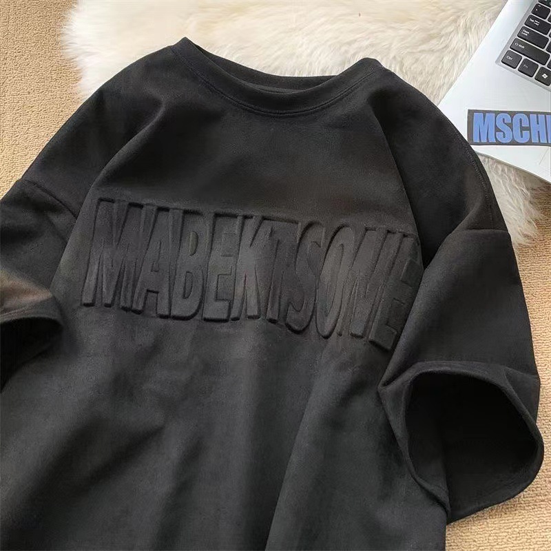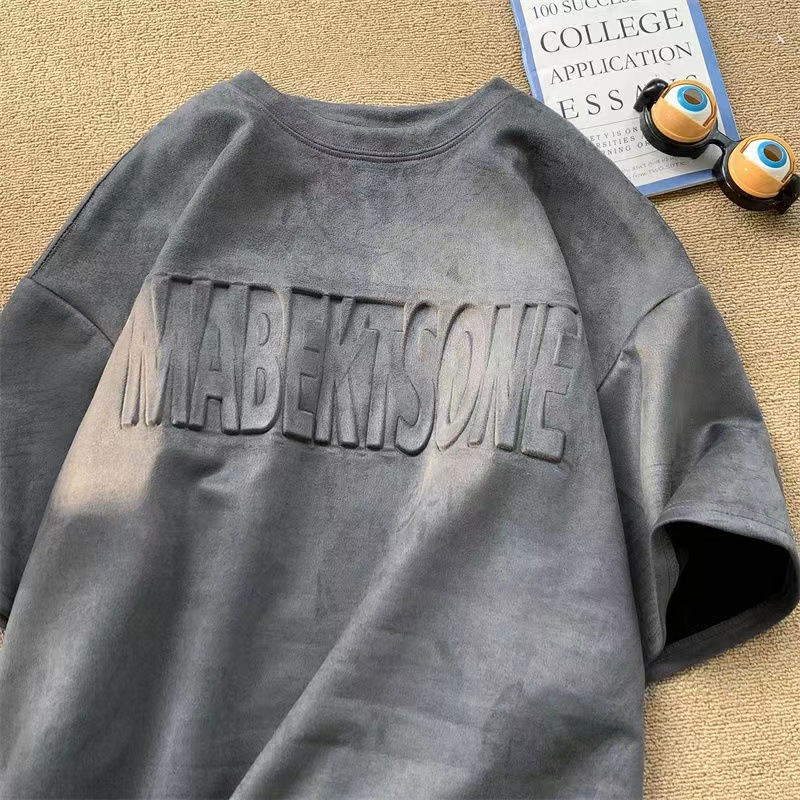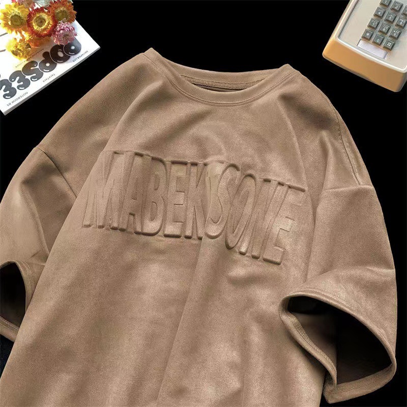 重磅麂皮短袖男款夏季美式复古体恤欧美高街潮牌潮流宽松半袖t恤