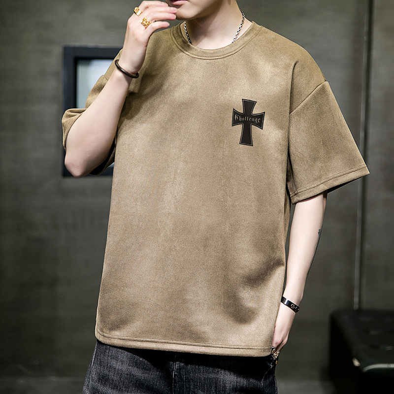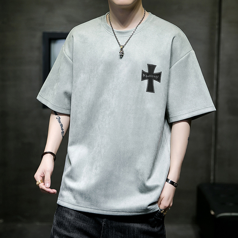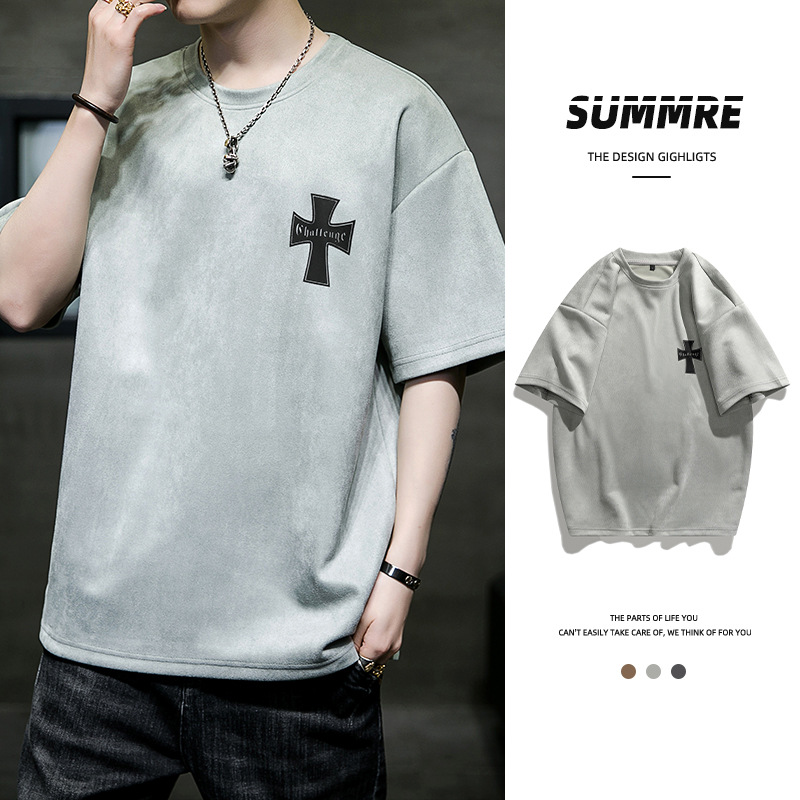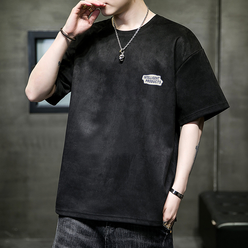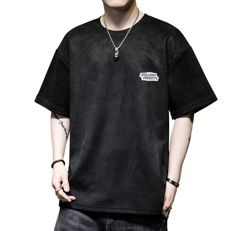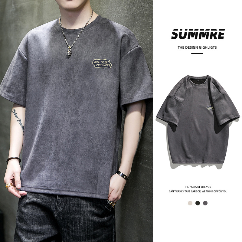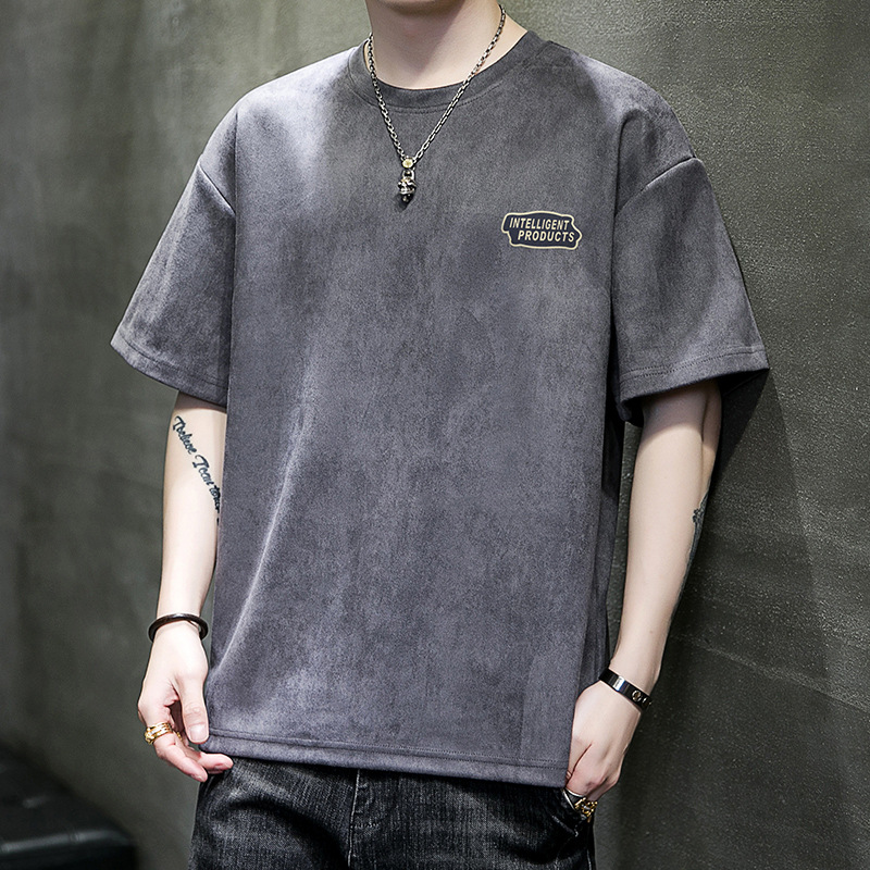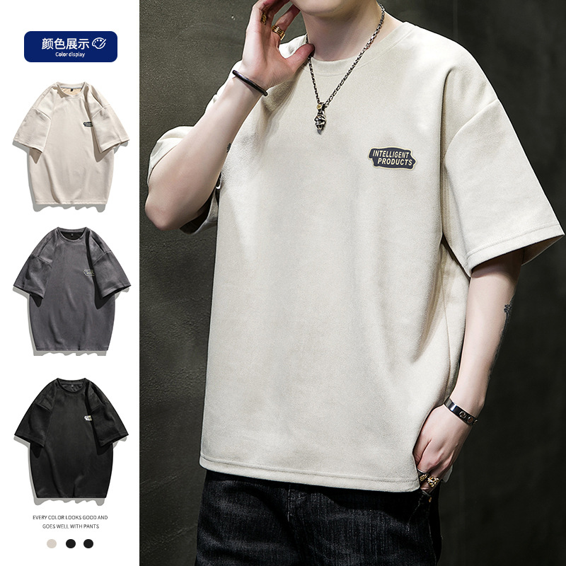 麂皮绒短袖T恤男款重磅宽松夏季新款高街百搭打底衫短袖青年