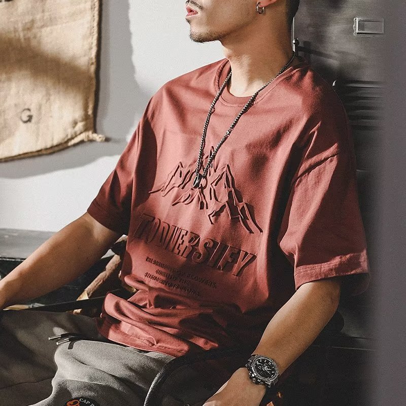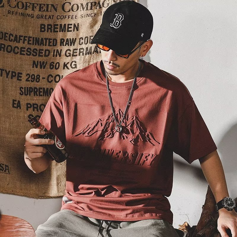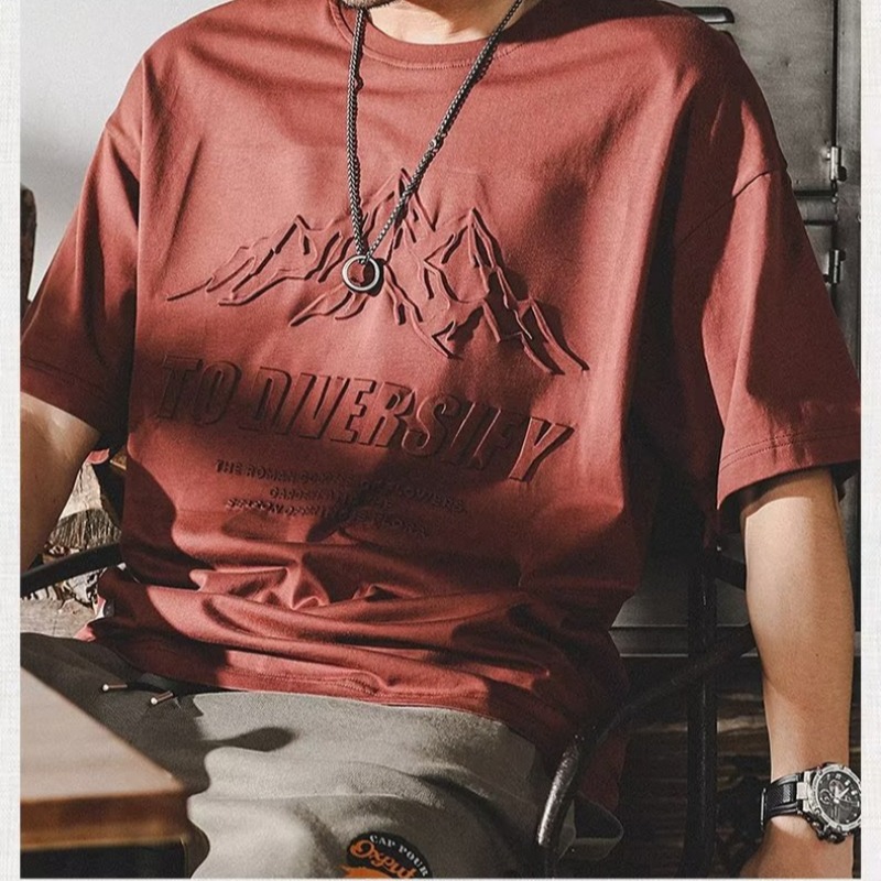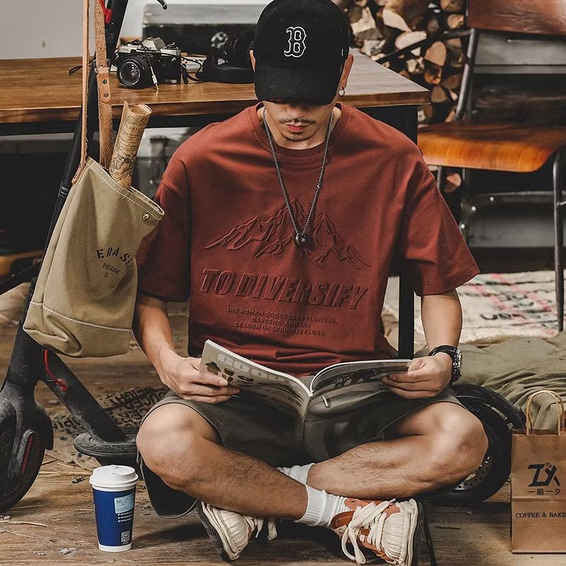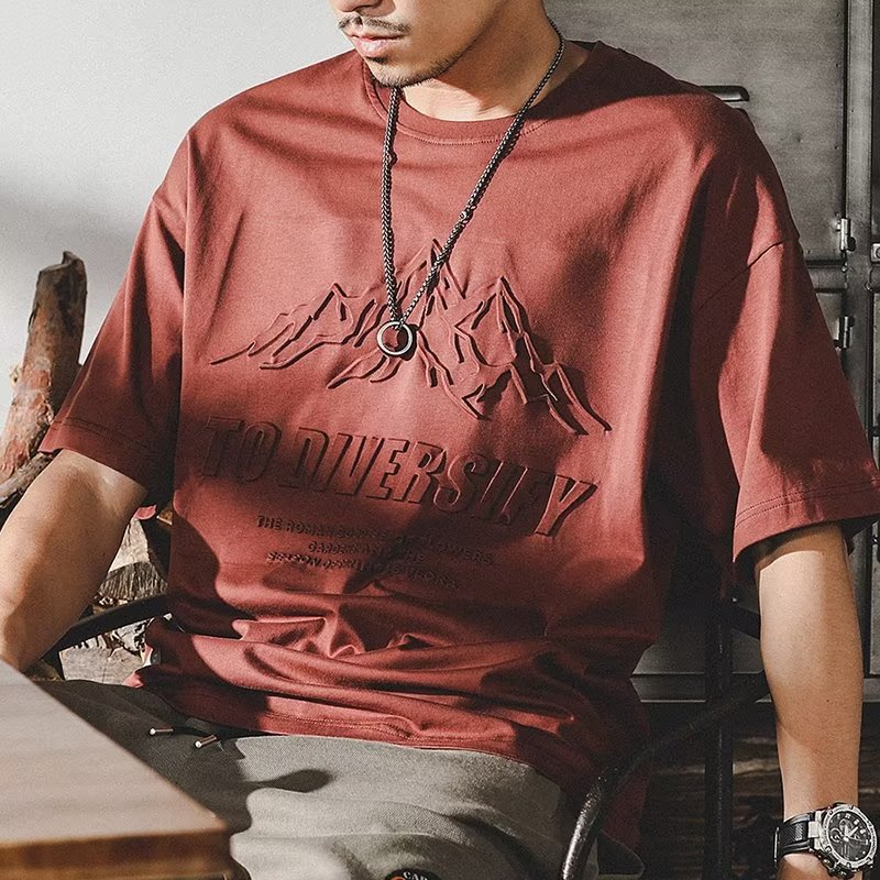 美式重磅t恤男短袖夏季潮流ins钢印立体山系宽松大码男装纯棉体恤