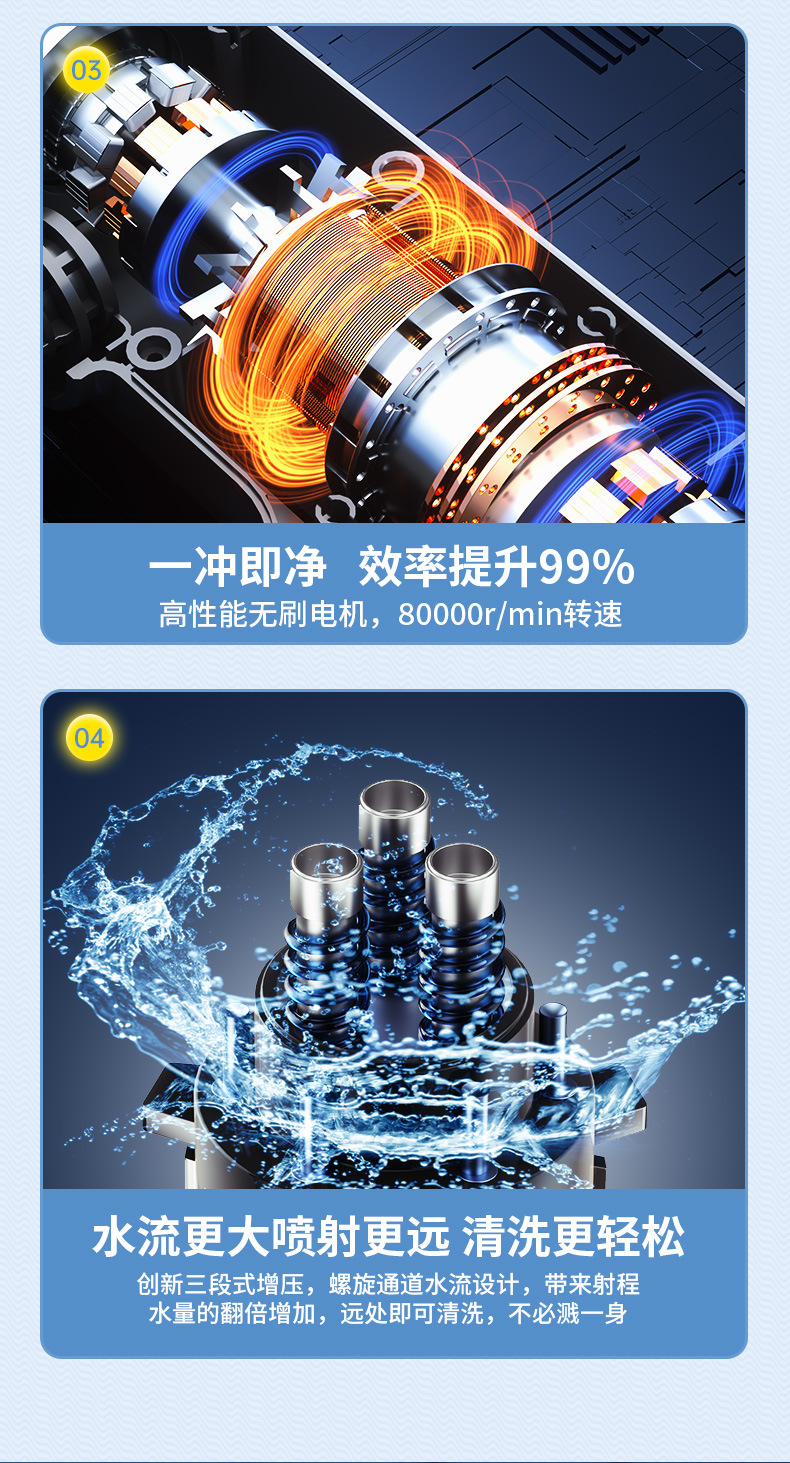 - ⚪【德系涡轮电机】160斤水压-10节电池-一电一充-5米管