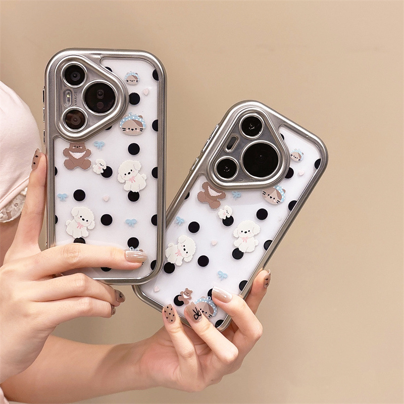ins波点可爱小熊电镀适用mate60pro+手机壳P70Pro情侣P60保护套女